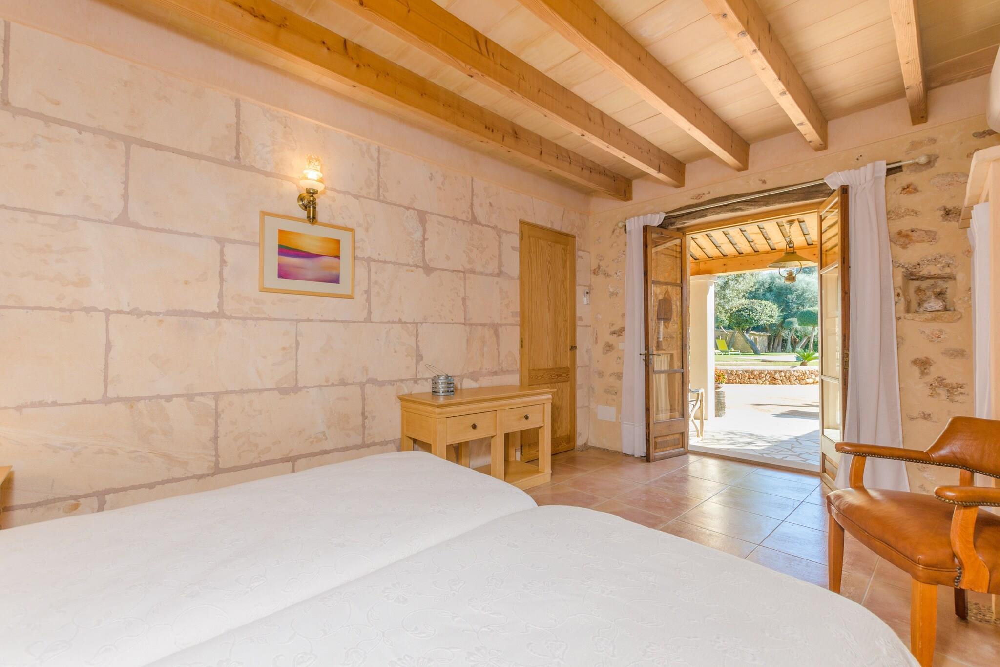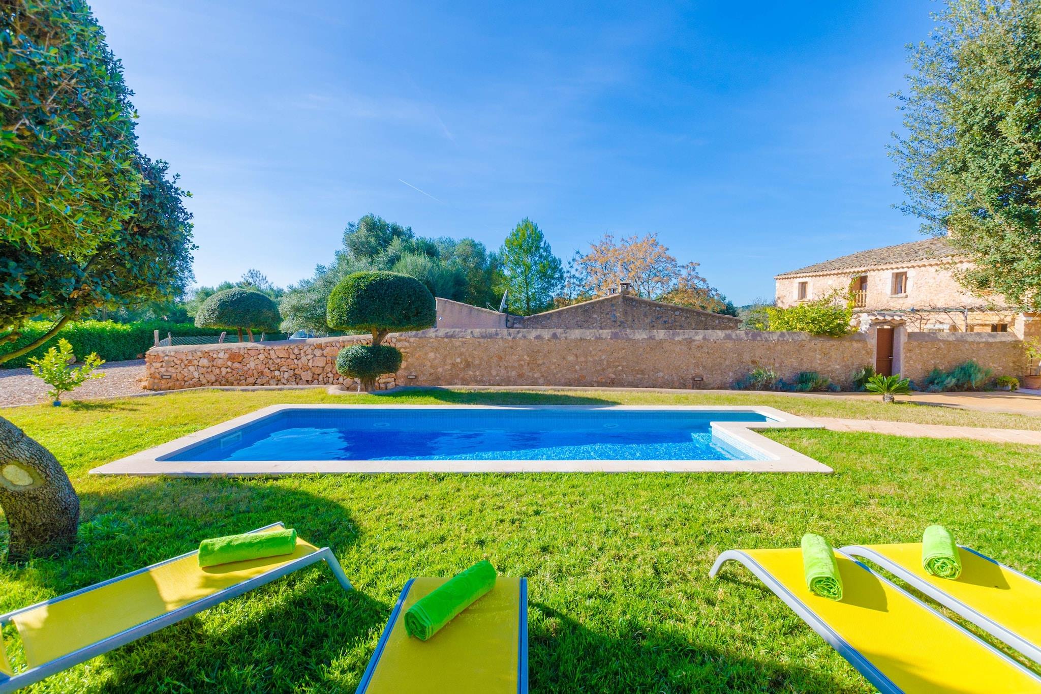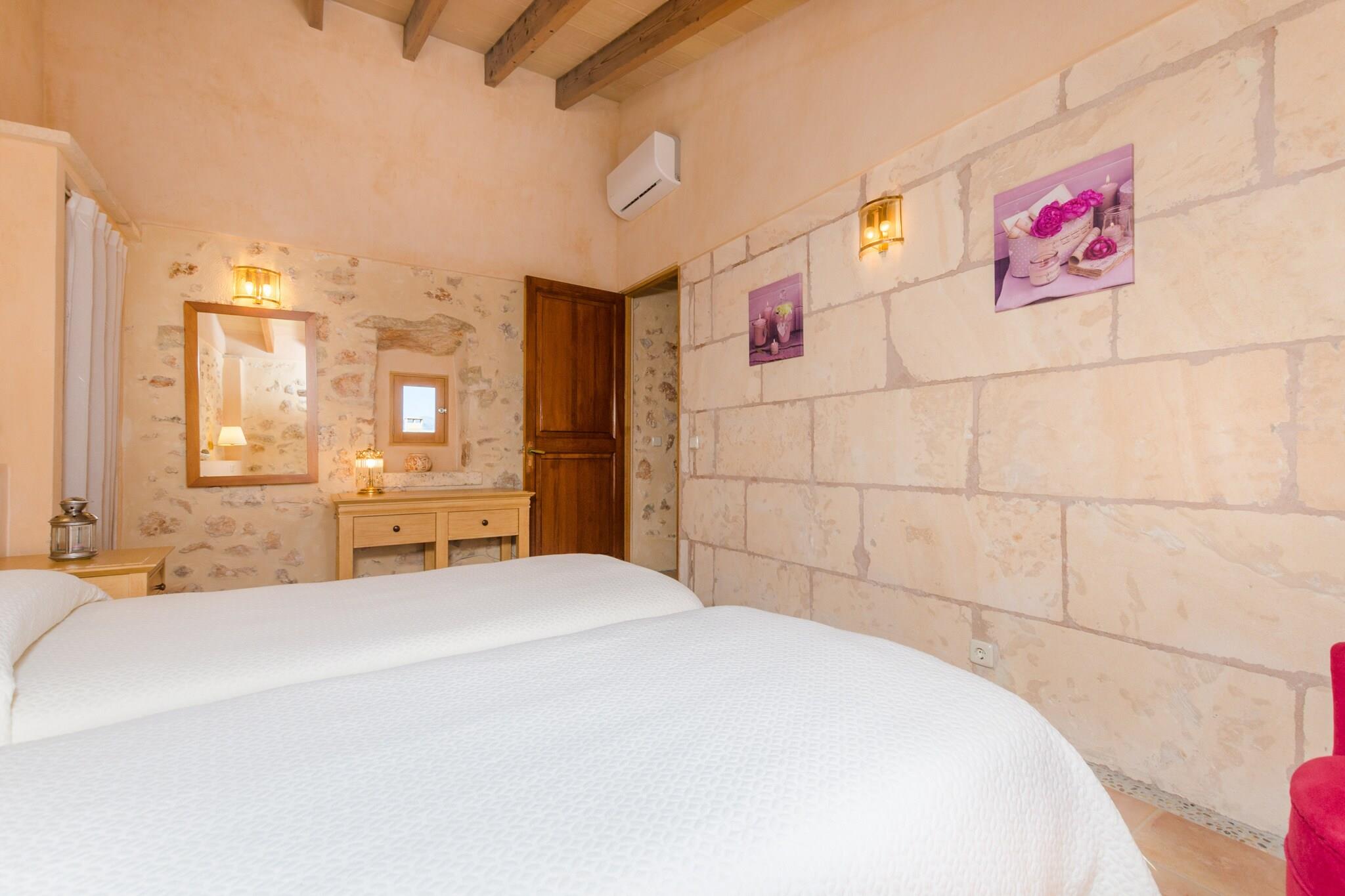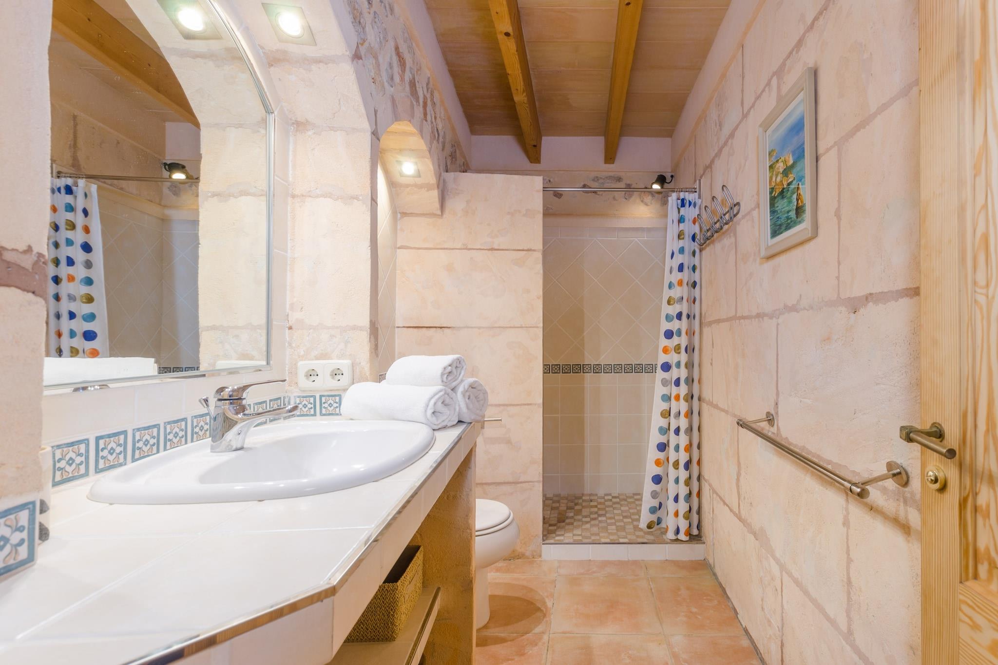 De buitenkant van dit comfortabele herenhuis biedt een privézoutzwembad van 7 x 3 meter en een diepte van 0,9 tot 1,55 meter. Omgeven door een tuin en zes ligstoelen is het een idyllische plek om te zonnebaden, eventueel vergezeld van een verfrissende gin-tonic. Op de veranda kunt u buiten eten en als u graag buiten kookt, is er een barbecue. Er zitten kippen in een omheining en de eigenaar komt dagelijks de dieren voeren, zodat u zich nergens zorgen over hoeft te maken. Op de begane grond is de comfortabele woon-eetkamer met airconditioning ideaal voor familiebijeenkomsten. In de middag kunt u samen met de kinderen een film kijken op satelliettelevisie. In het gasfornuis, typisch Mallorcaans, vindt u alles wat u nodig heeft om elk gerecht te bereiden. De wasruimte op het terras beschikt over een wasmachine, een strijkijzer en een strijkplank. Op deze verdieping bevindt zich een slaapkamer met twee eenpersoonsbedden, airconditioning en een badkamer met douche. Een trap gaat naar de eerste verdieping en daar zijn twee slaapkamers met elk twee eenpersoonsbedden en een badkamer met douche. Alle slaapkamers zijn voorzien van airconditioning en wij kunnen een kinderbedje en kinderstoel ter beschikking stellen. De boerderij ligt nabij het stadje Costitx, een authentiek en landelijk gebied in het midden van het eiland. In de stad is er een supermarkt, cafés en kelders, goede restaurants die zelfgemaakte Mallorcaanse gerechten serveren. In Sineu vindt de beroemde woensdagmarkt plaats, tegelijkertijd de oudste markt van Mallorca. Als u van golfen houdt, kunt u deze sport beoefenen op de golfbaan Son Gual of in Puntiró. Wat het strand betreft: met de auto duurt het ongeveer dertig minuten om zowel de noord- als de zuidkust te bereiken. Het noorden wordt gekenmerkt door rustige stranden zoals Playa de Muro of Son Serra de Marina, maar ook stranden met alle denkbare voorzieningen zoals Can Picafort en Puerto de Alcúdia. In het zuiden liggen S'Arenal en Can Pastilla, ideaal voor wie strand en feesten wil combineren. In Costitx hoor je soms vliegtuigen voorbijvliegen, maar de omgeving is over het algemeen rustig. Voor eventuele extra kosten kunt u contact opnemen met de adverteerder. Huisdieren tot 7,00 kg zijn welkom. Het vieren van evenementen is niet toegestaan. Er is buiten parkeergelegenheid voor 3 auto's. Afstanden Strand: 29,7 km - Can Picafort Luchthaven: 30,5 km - Son Sant Joan Golfbaan: 17,1 km - Puntiró Stad: 1,9 km - Costitx Treinstation: 10,8 km - Sineu Bushalte: 1,9 km - Camà dels Horts, Costitx Veerboot: 37,1 km - Port d'Alcudia Ziekenhuis: 10,8 km - Comarcal d'Inca-ziekenhuis Toeristenvergunning: ETV/5700Bij de ingang dient u de Ecotasa (toeristenbelasting van de Balearen) contant te betalen. Het bedrag varieert tussen EURO 0,55 / per nacht per persoon in het laagseizoen en EURO 2,2 / per nacht per persoon in het hoogseizoen. Vanaf de negende dag wordt het met de helft verminderd. Personen onder de 16 jaar uitgesloten.