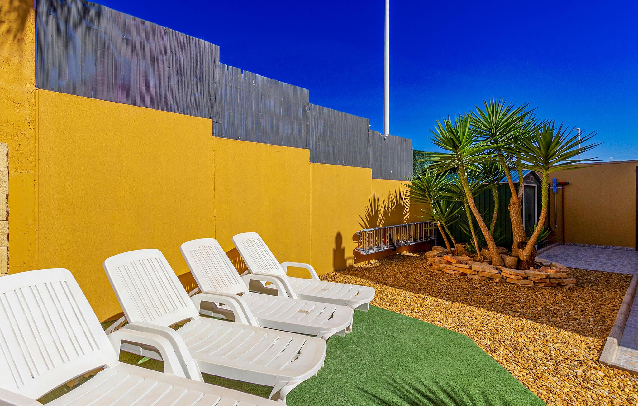 Udendørsområdet er allelunde dejligt og indbyder til mange skønne timer i solen. Sæt jer godt til rette fra morgenstunden og lad solen bage jer godt igennem, inden I tager en svalende dukkert i poolen. Til huset hører en terrasse med en skøn grillplads med siddepladser, hvor I kan hænge ud om aftenen med kig ud over den velholdte have.