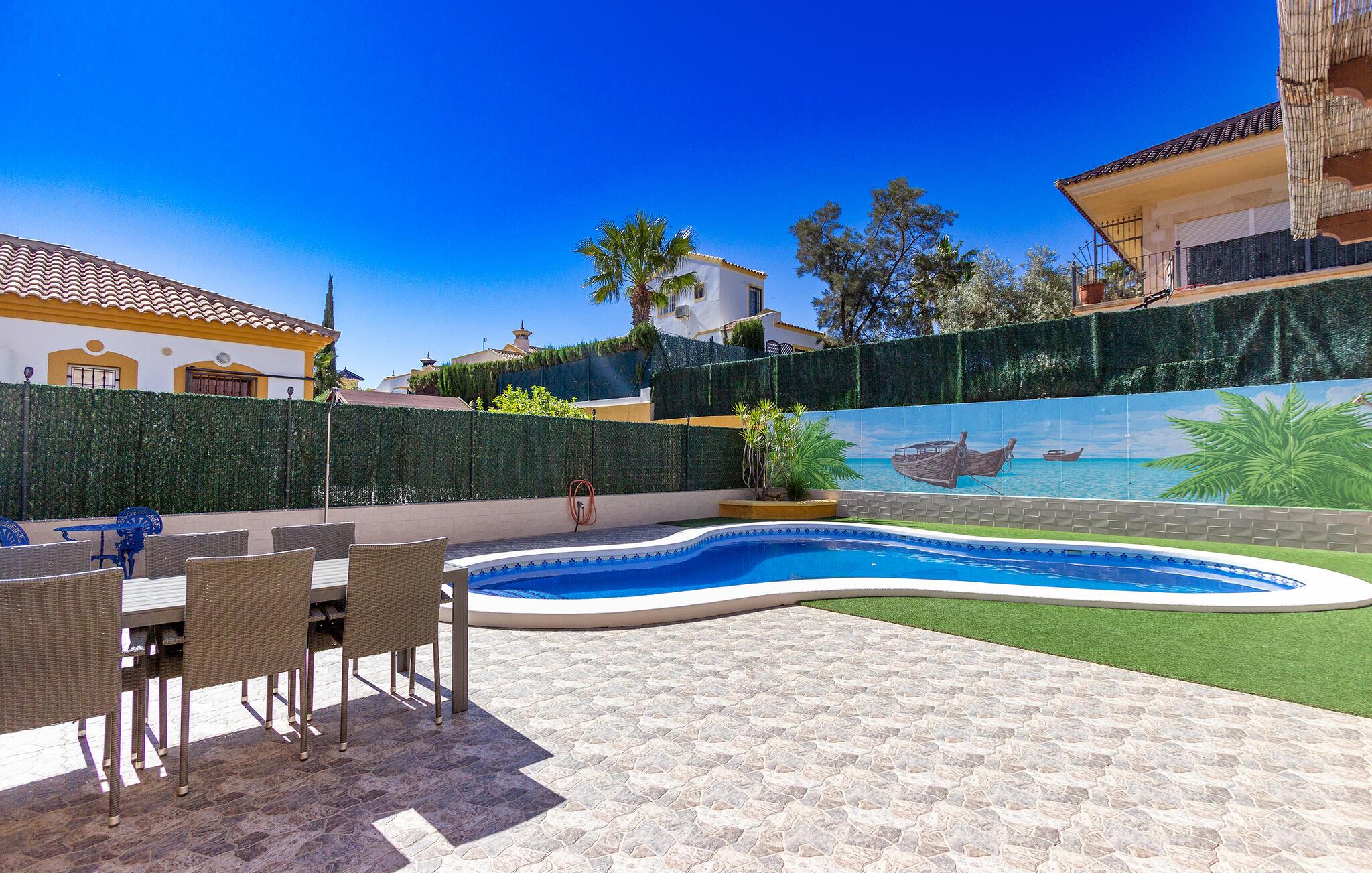 Se frem til årets ferie med hele familien i dette farverige og komfortable hus med pool.