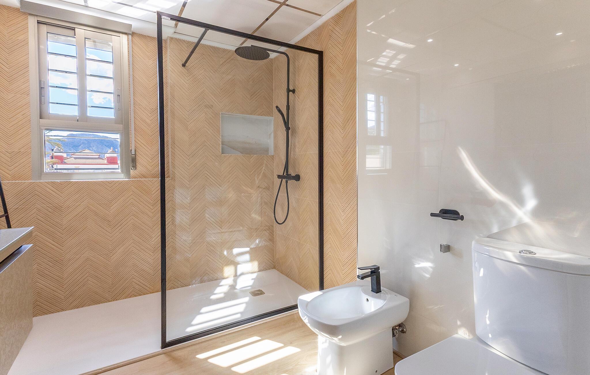 Badeværelse (nr. 1) - WC. Varmt og koldt vand. Bruser og badekar