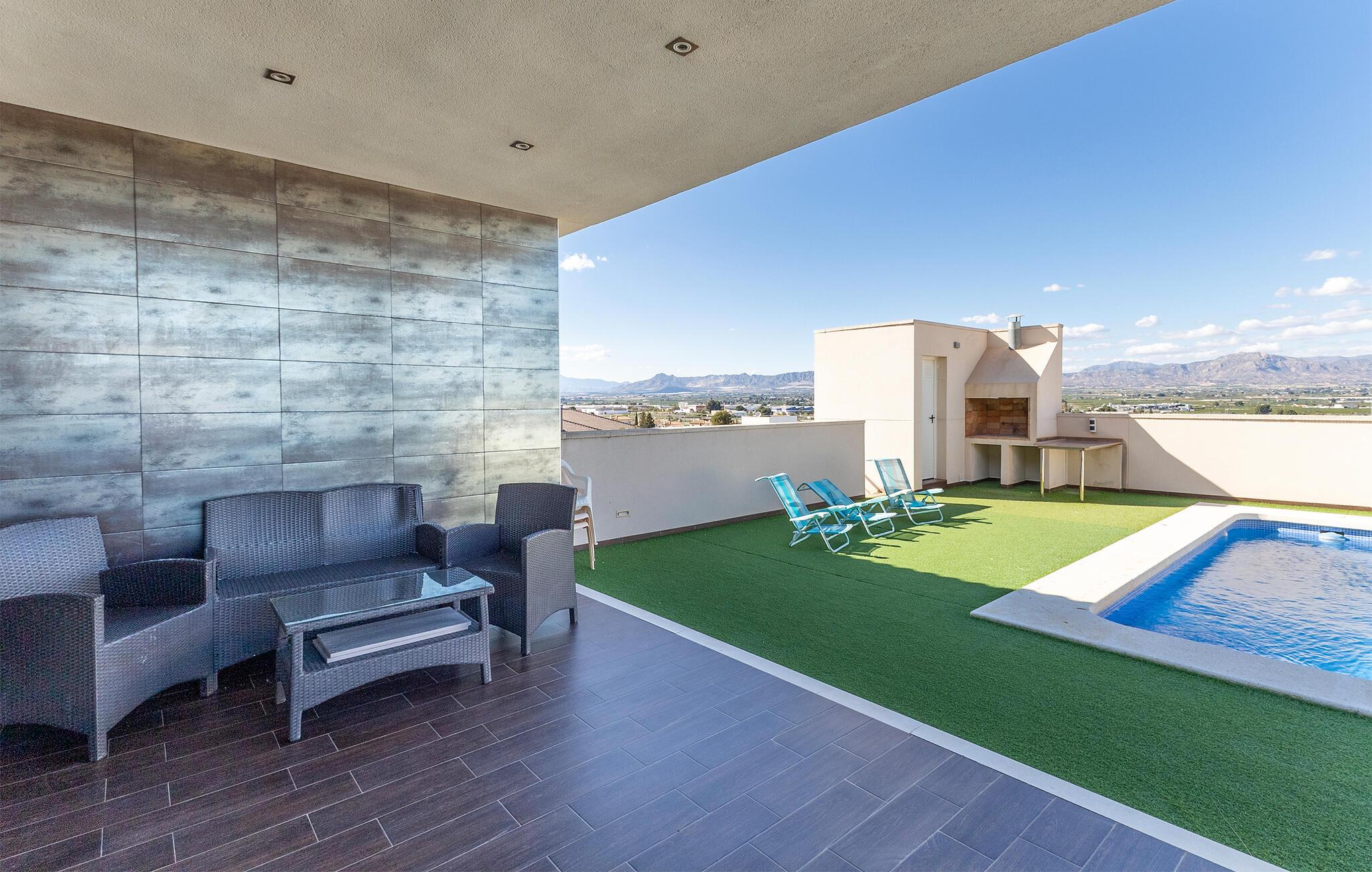 En vidunderlig panoramaudsigt over landskabet venter jer på den sensationelle tagterrasse. snup en frisk dukkert i den smukke pool, lad batterierne op på liggestolen og tænd op i grillen ved solnedgang.
