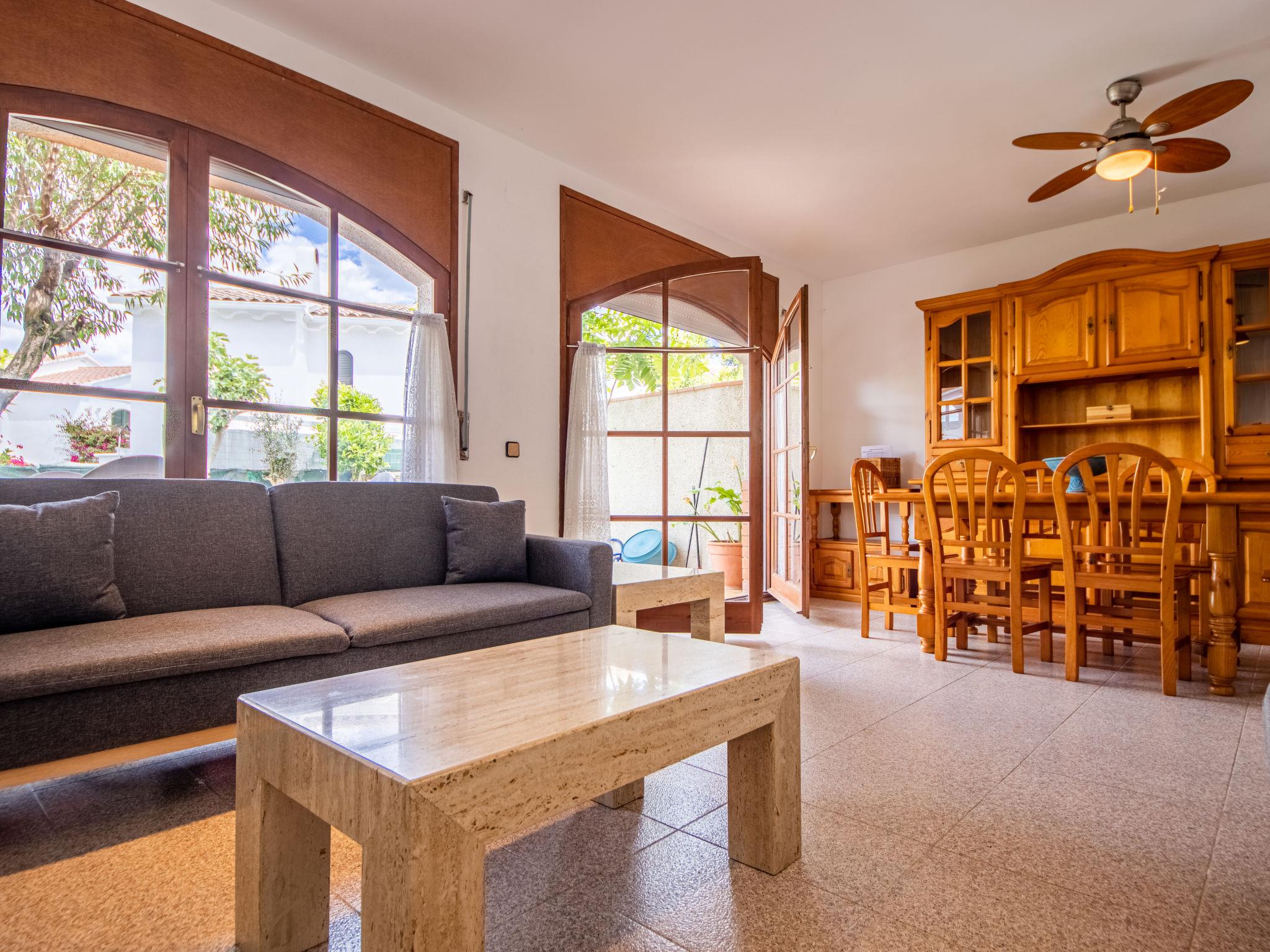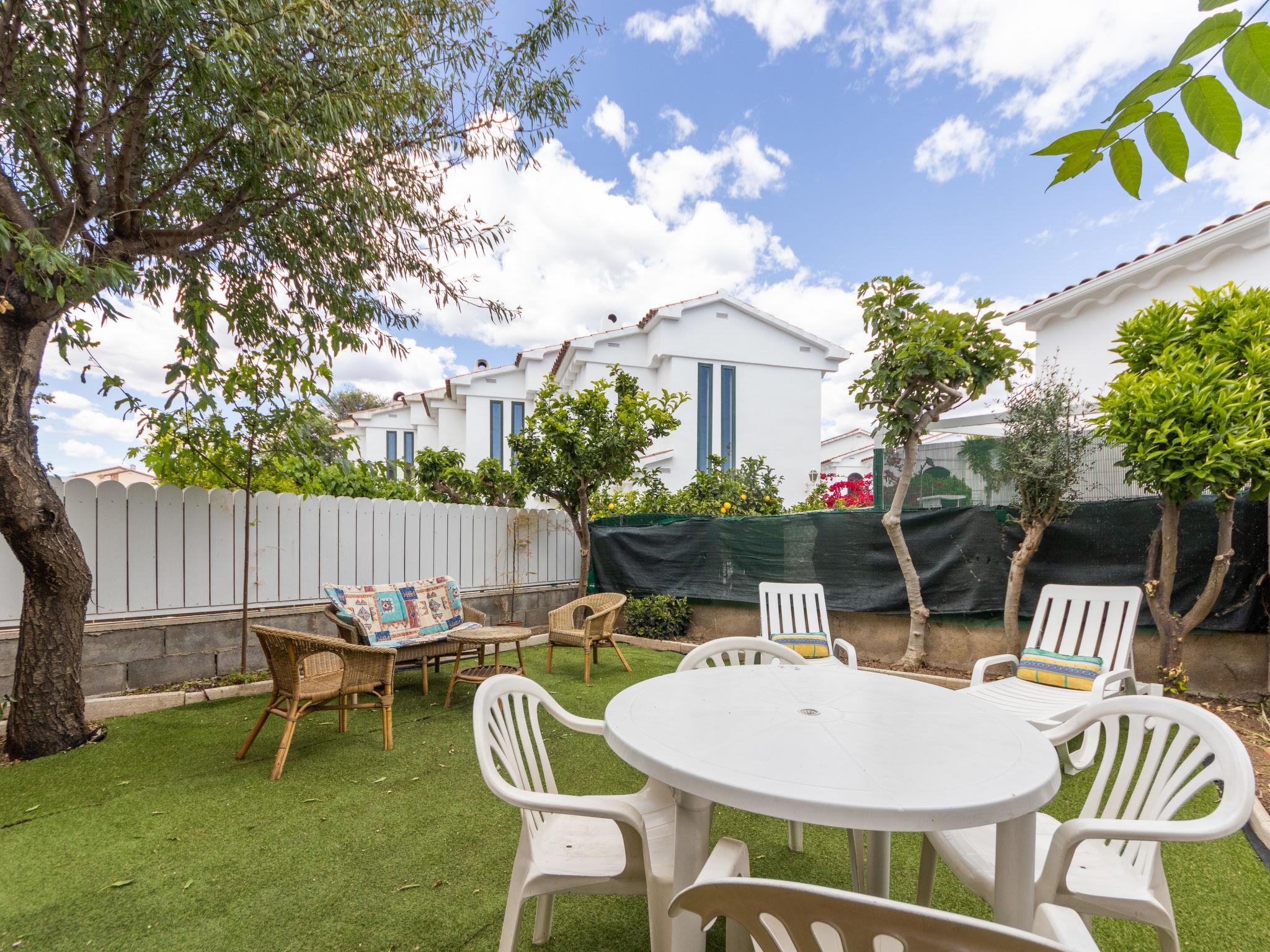 Creixell 22 km from Tarragona: Child friendly, cosy, simple terraced house "Urb Port Lligat", 2 storeys. In a sunny position, 300 m from the sea, 300 m from the beach. For shared use: swimming pool angular (12 x 6 m, depth 60 - 160 cm, seasonal availability: 10.Jun. - 15.Sep. pool opening hours: 10:00-22:00). Outdoor shower. Private: garden (fenced), public parking on the road. Grocery 1.5 km, supermarket 1.5 km, restaurant 200 m, bus stop "Creixell" 1.1 km, sandy beach "Els Muntanyans" 300 m. Nearby attractions: Port Aventura 35 km, Aquopolis 35 km, Jungle Trek 15 km. Please note: car recommended. Object suitable for 4 adults + 3 children. The owner does not accept any youth groups. Railway line closeby. Neighbourhood highly sensitive to noise. Quietness and good behaviour expected.