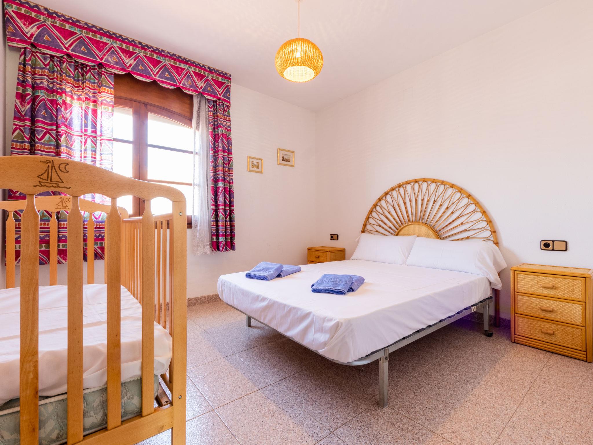 "Residencial Port Lligat", 4-room terraced house 95 m2. Object suitable for 4 adults + 3 children. Simple and practical furnishings: living/dining room with digital TV. Exit to the patio. Kitchen (oven, toaster, kettle, microwave, electric coffee machine). Sep. WC. No heating option. Upper floor: 2 rooms, each room with 1 french bed (135 cm, length 180 cm). 1 room with 2 beds (90 cm, length 190 cm), 1 sleeping facility (80 cm, length 190 cm). Bath/WC. Patio. Terrace furniture, barbecue, deck chairs (2). Facilities: washing machine, children's high chair, baby cot for up to 3 year olds. Internet (WiFi, free). Garage, height 210 cm, width 350 cm. Please note: suitable for families. Non-smoking house, parking space for small car only. TV only ES. HUTT-064671 // Reg. Nr.: ESFCTU00004302700018503700000000000000000HUTT-0646714