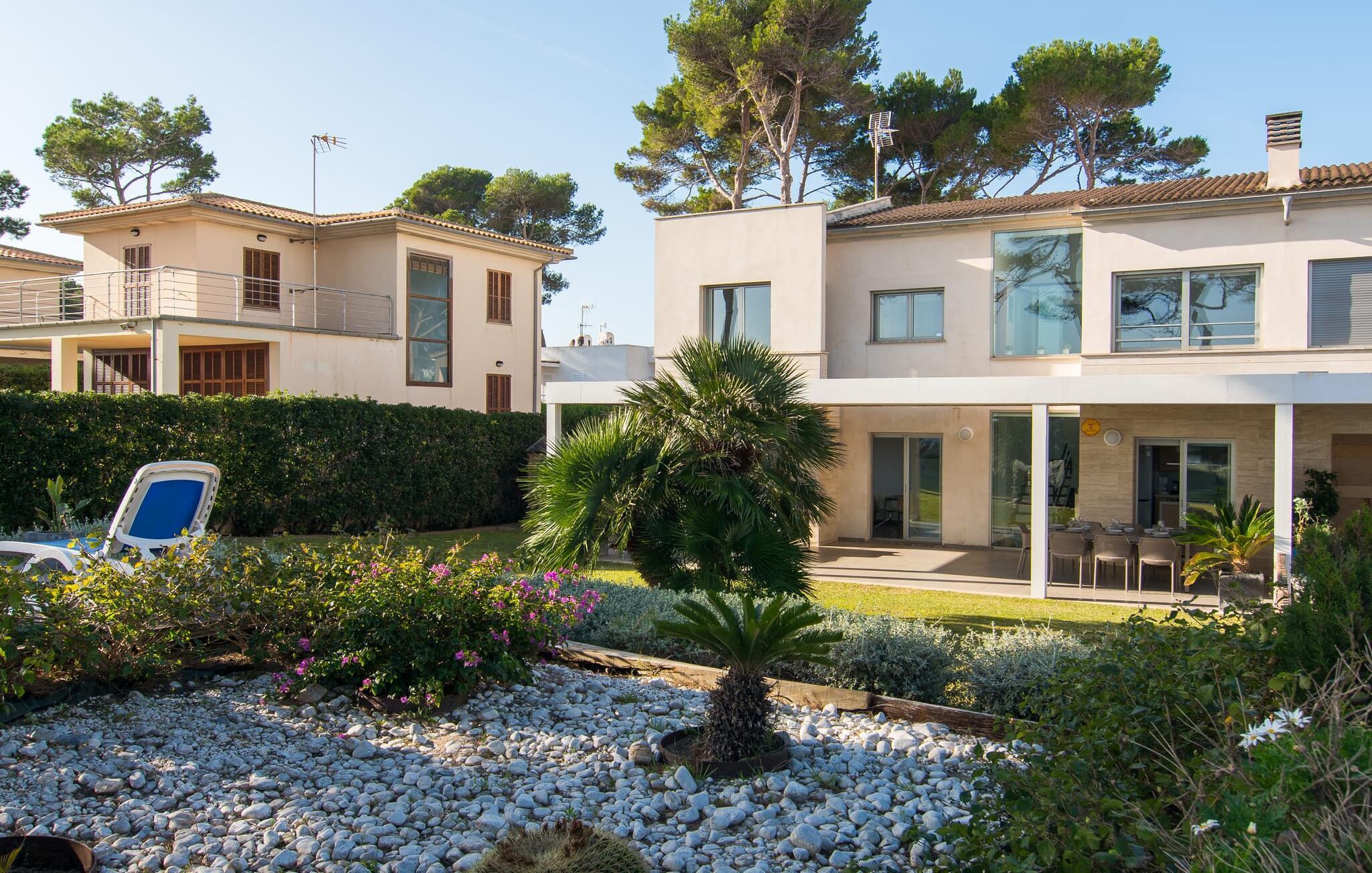 "Cristina Cladera Crespi" - du bør bestemt huske dette navn, når du bestiller din næste ferie. Hvis du endelig vil opfylde din drøm om et hus ved havet og stadig ikke vil gå glip af bylivets fordele, er du kommet til det rigtige sted. Selvom du deler den usædvanligt attraktive beliggenhed med dine naboer, får de fænomenale udsigter dig hurtigt til at glemme dette. Den moderne villa med havudsigt med kubiske arkitektoniske specifikationer er stort set orienteret mod havet og foret med fyrretræer. Fra udearealet kan du nyde den uhindrede udsigt over sandstranden og Middelhavet. Liggestolene ligger over klitgræsset og giver følelsen af en privat strandklub. Kun en port adskiller dig fra sandstranden, som du har privat adgang til. Det er særligt rart, hvis du rejser med børn, som udover græsplænen også har legeredskaber at løbe rundt på. Apropos afslapning - du kan finde det når som helst på dagen på den rummelige, overdækkede terrasse med et hyggeligt og samtidig afkølet loungehjørne og en hyggelig spiseplads, som suppleres af en grill. Dette er et Fincallorca feriehus. De talrige gulv-til-loft-vinduer og skydedøre gør det muligt for ydersiden at smelte sammen med indersiden. På den ene side gavner dette især æstetikken i et interiør i hvid stil med vægt på den moderne tidsånd. Til gengæld er det også meget praktisk i hverdagen. Den klassiske, lyse og venlige opholdsstue har endnu en spiseplads. Gangen fører til det fuldt udstyrede køkken - dette behageligt åbne rumkoncept giver også mulighed for visuel adskillelse. Da du kan få adgang til den skyggefulde veranda direkte fra køkkenet, er den bevidst valgte selvforsyning et fantastisk projekt for venner og familie - alle er med og nyder det. Med tre soveværelser fordelt på to plan har du et sommerfrisk paradis i enhver konfiguration, som også tiltrækker med overkommelige priser og et opvarmet værelse, især i lavsæsonen. På 1. sal er der to soveværelser med et flot designet badeværelse med bruseniche. En tilsyneladende flydende trappe fører til næste etage. Omklædningsrummet og badeværelset en suite fører til det tredje soveværelse. Hvis du ikke er overbevist endnu, skal du måske bare selv tage dertil. Havudsigt – det er højdepunktet i den moderne byvilla "Cristina Cladera Crespi", som kombinerer urban flair med privat adgang til strand og hav. Det familievenlige hus har en populær beliggenhed ved Alcúdia-bugten i kystbyen Playa de Muro. Du nyder godt af korte afstande til dine daglige indkøb, da butikker og marked også er inden for gåafstand. Samtidig har du stranden lige uden for døren, som indbyder til lange gåture og forfriskende svømmeture.