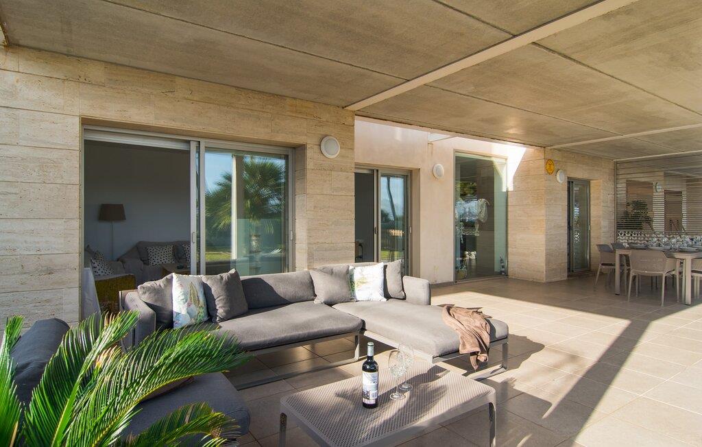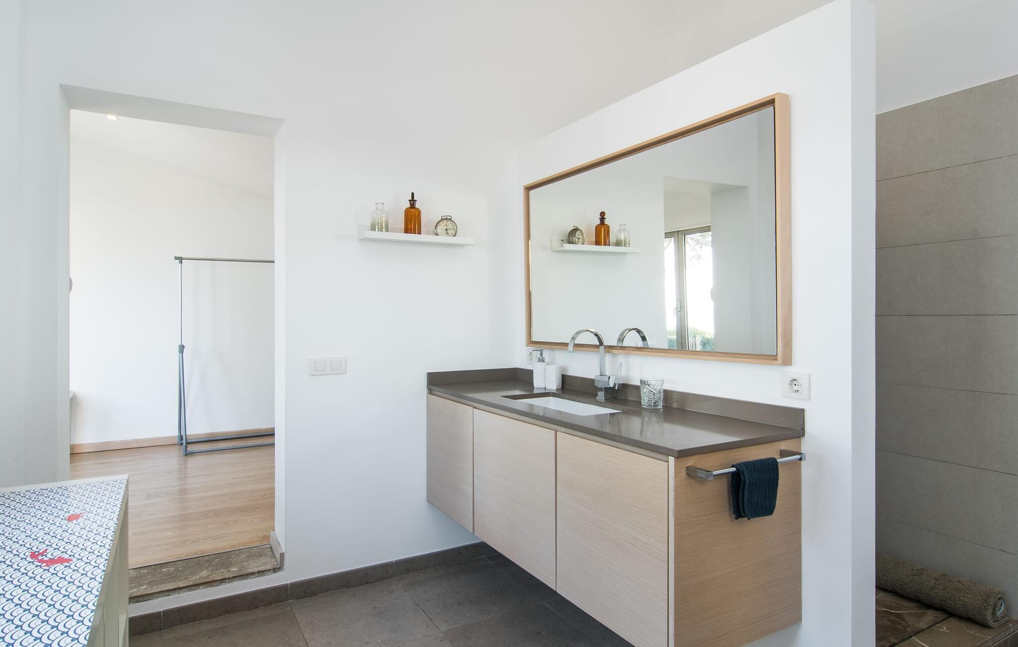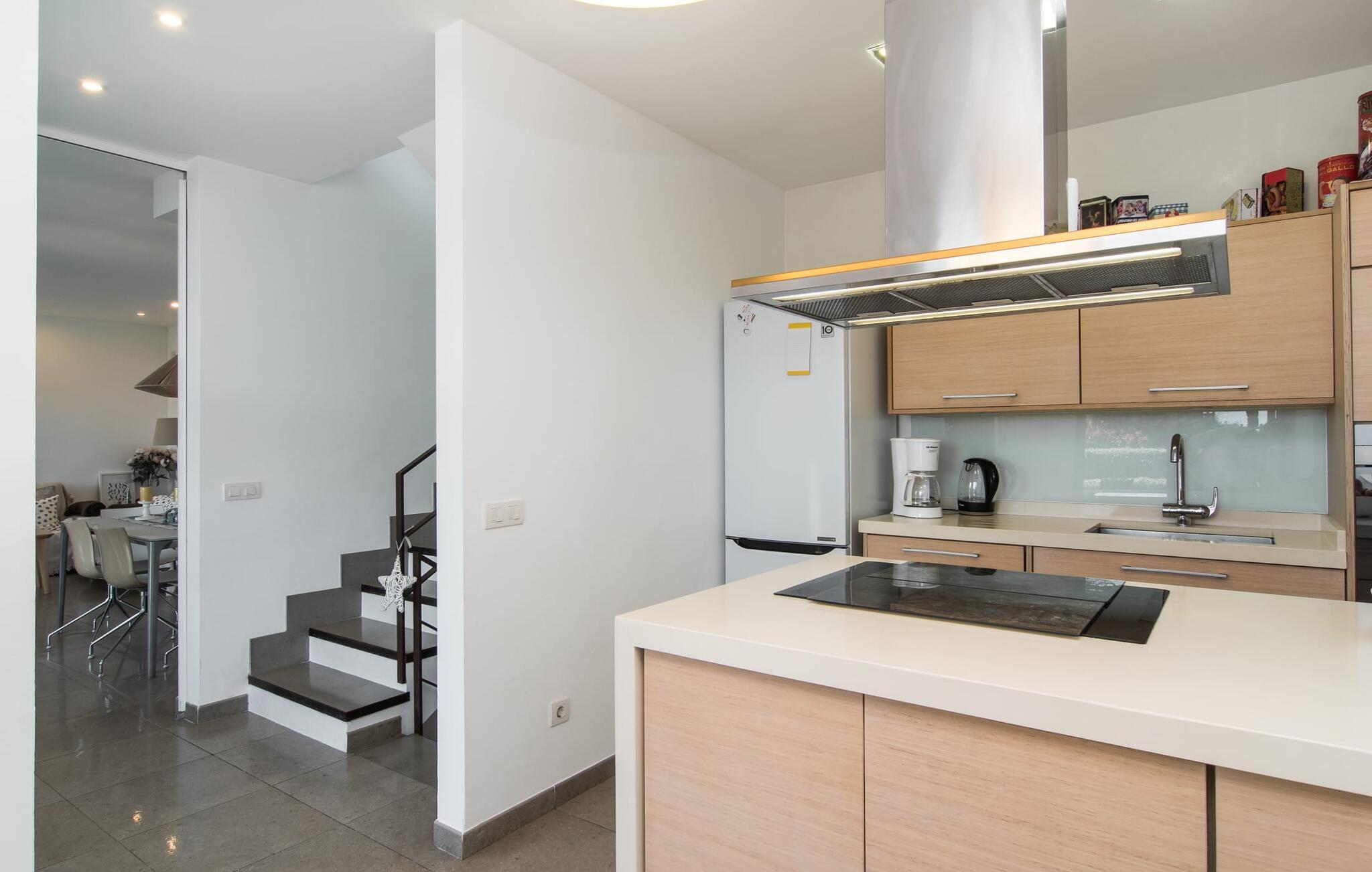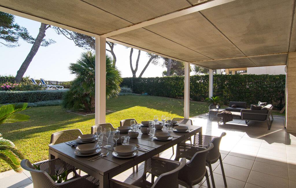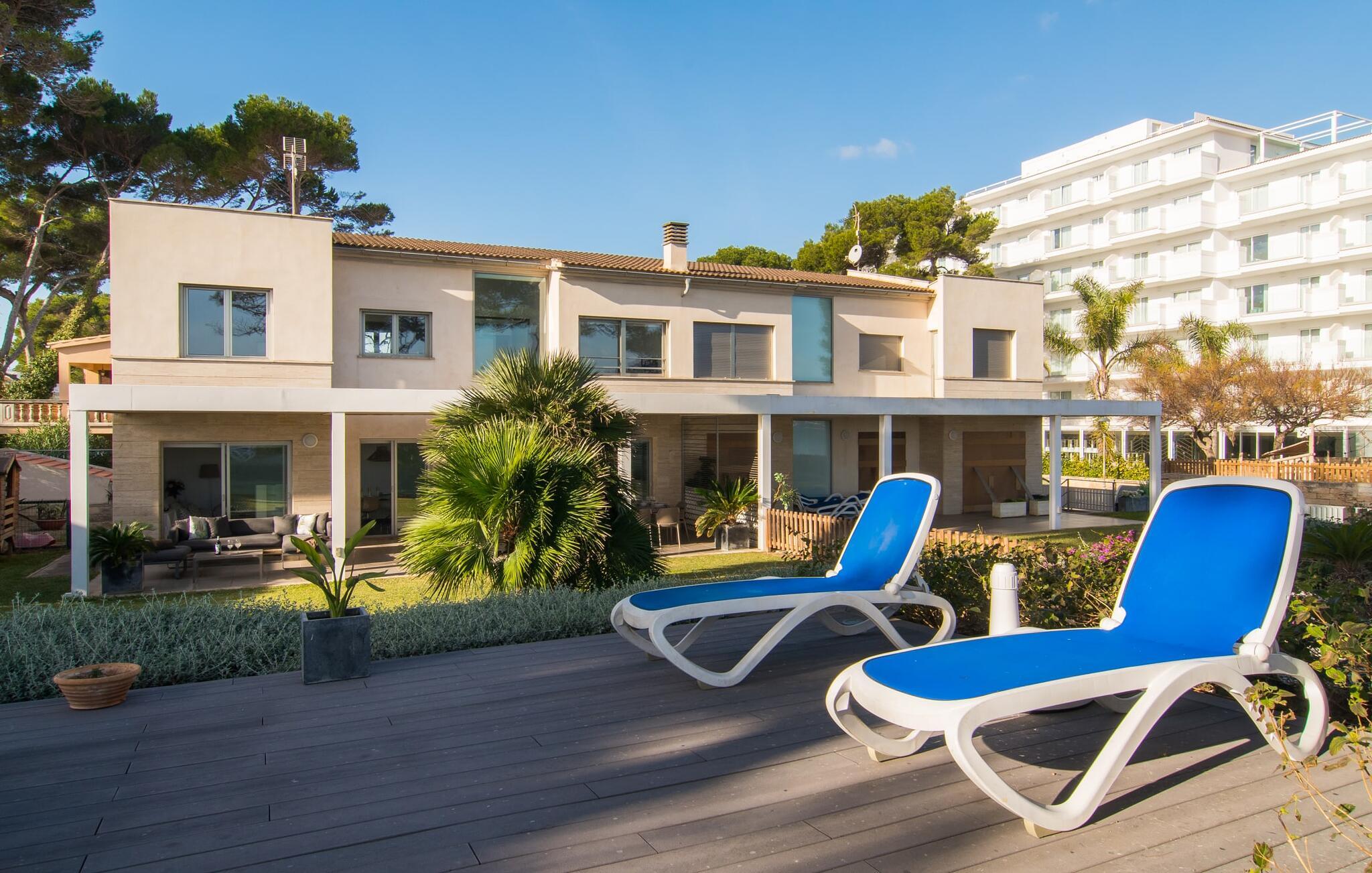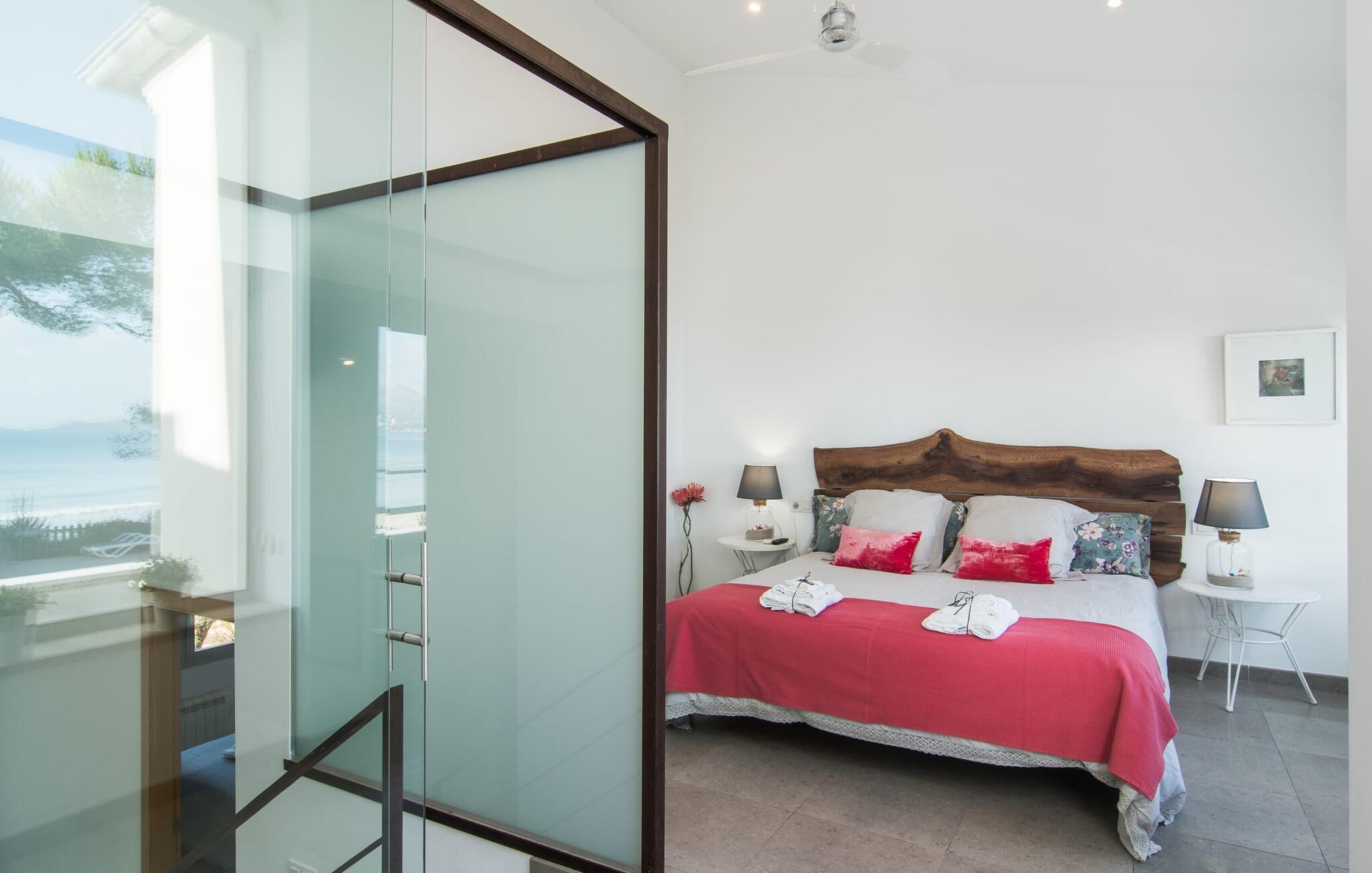 "Cristina Cladera Crespi" - I bør bestemt huske dette navn, når I bestiller jeres næste ferie. Hvis I endelig vil opfylde jeres drøm om et hus ved havet og stadig ikke vil gå glip af bylivets fordele, er I kommet til det rigtige sted. Selvom I deler den usædvanligt attraktive beliggenhed med jeres naboer, får de fænomenale udsigter jer hurtigt til at glemme dette. Den moderne villa med havudsigt med kubiske arkitektoniske specifikationer er stort set orienteret mod havet og foret med fyrretræer. Fra udearealet kan I nyde den uhindrede udsigt over sandstranden og Middelhavet. Liggestolene ligger over klitgræsset og giver følelsen af en privat strandklub. Kun en port adskiller jer fra sandstranden, som I har privat adgang til. Det er særligt rart, hvis I rejser med børn, som udover græsplænen også har legeredskaber at løbe rundt på. Apropos afslapning - I kan finde det når som helst på dagen på den rummelige, overdækkede terrasse med et hyggeligt og samtidig afkølet loungehjørne og en hyggelig spiseplads, som suppleres af en grill. De talrige gulv-til-loft-vinduer og skydedøre gør det muligt for ydersiden at smelte sammen med indersiden. På den ene side gavner dette især æstetikken i et interiør i hvid stil med vægt på den moderne tidsånd. Til gengæld er det også meget praktisk i hverdagen. Den klassiske, lyse og venlige opholdsstue har endnu en spiseplads. Gangen fører til det fuldt udstyrede køkken - dette behageligt åbne rumkoncept giver også mulighed for visuel adskillelse. Da I kan få adgang til den skyggefulde veranda direkte fra køkkenet, er den bevidst valgte selvforsyning et fantastisk projekt for venner og familie - alle er med og nyder det. Med tre soveværelser fordelt på to plan har I et sommerfrisk paradis i enhver konfiguration, som også tiltrækker med overkommelige priser og et opvarmet værelse, især i lavsæsonen. På 1. sal er der to soveværelser med et flot designet badeværelse med bruseniche. En tilsyneladende flydende trappe fører til næste etage. Omklædningsrummet og badeværelset en suite fører til det tredje soveværelse. Hvis I ikke er overbevist endnu, skal I måske bare selv tage dertil. Havudsigt – det er højdepunktet i den moderne byvilla "Cristina Cladera Crespi", som kombinerer urban flair med privat adgang til strand og hav. Det familievenlige hus har en populær beliggenhed ved Alcúdia-bugten i kystbyen Playa de Muro. I nyder godt af korte afstande til jeres daglige indkøb, da butikker og marked også er inden for gåafstand. Samtidig har I stranden lige uden for døren, som indbyder til lange gåture og forfriskende svømmeture.