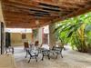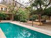 Velkommen til dette udsøgte to-etagers fristed, der er perfekt til familier eller grupper, der søger en luksuriøs ferie. Første sal har en indbydende hall, der fører til en hyggelig stue med tv og et fuldt udstyret køkken med moderne apparater, herunder espresso- og kaffemaskiner, brødrister, ovn, mikroovn, opvaskemaskine og køleskab med fryser. Den klimatiserede spiseplads er ideel til afslappede måltider eller elegante middage. De tre smukt designede soveværelser på denne etage har hver sit eget badeværelse. Master-suiten har en dobbeltseng med badekar og bruser, mens de to andre soveværelser har to enkeltsenge hver med eget badeværelse. Et arbejdsværelse og et bibliotek giver fredelige rum til læsning eller arbejde. Verandaen med spisebord er perfekt til måltider i det fri. På anden sal findes endnu en charmerende soveværelsesuite med dobbeltseng og eget brusebad. Udenfor kan du nyde en privat pool, have og grillområde til afslapning og underholdning. Der er rigelig med parkeringspladser, hvilket sikrer bekvemmelighed. Denne elegante ejendom kombinerer komfort, luksus og stil for en uforglemmelig ferieoplevelse.