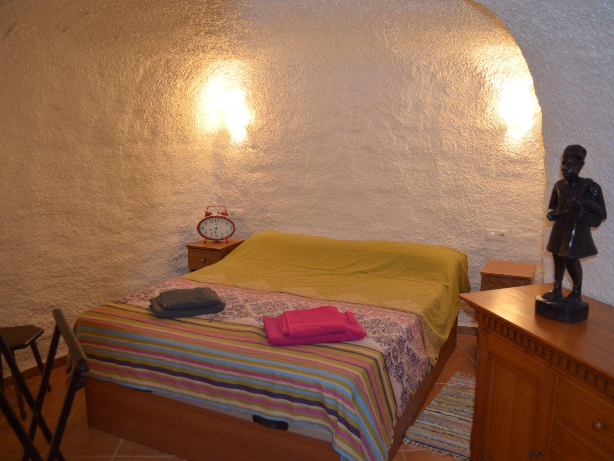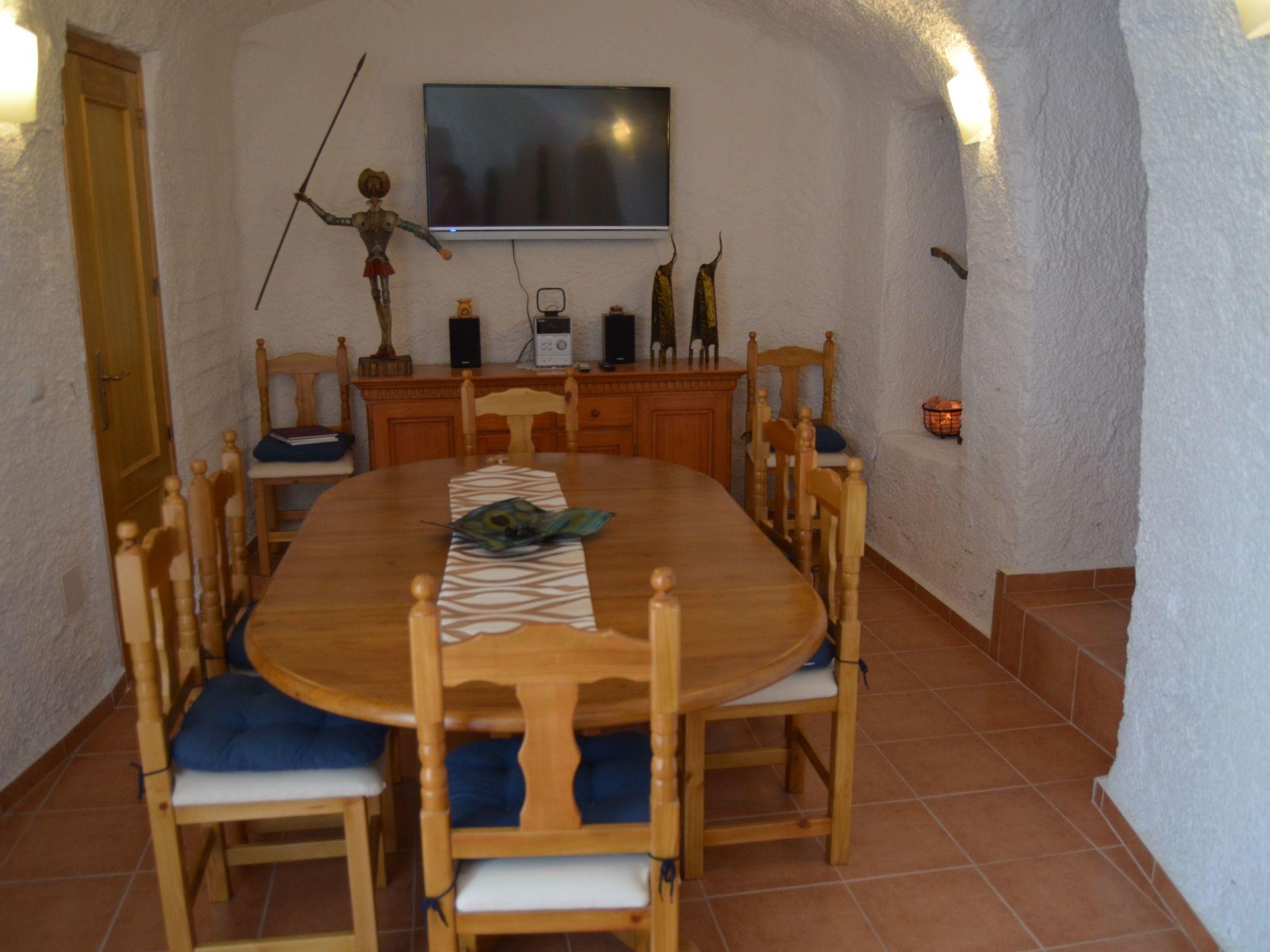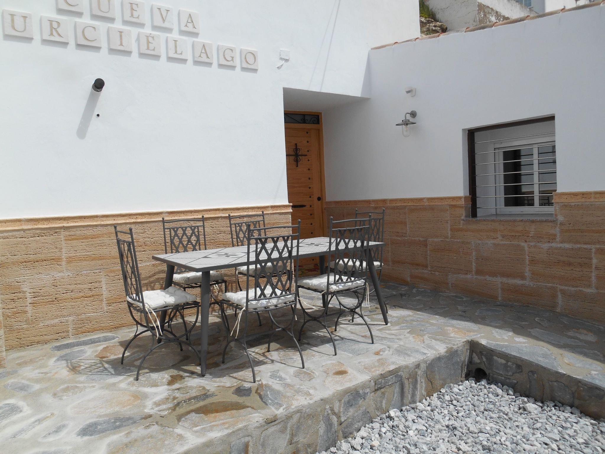 Cueva Murcielago / Cuevas del CampoCave house Cave flat, adventure holiday, pure relaxation holiday* Beautifully renovated cave house. * Only 8 km from one of the largest reservoirs in Spain with a length of 17 km. * Only 80 kilometres from Granada and 85 kilometres from Sierra Nevada, one of the largest ski resorts in Spain, our cave house is furnished and habitable. We have two double bedrooms, one single bedroom and a large pull-out sofa bed for two people. (Two bathrooms, with toilet, shower, bidet and washbasin and electric floor heating.The kitchen is equipped with fridge, cooker and wood stove, washing machine, dryer, toaster, blender, kettle, juicer, coffee maker and crockery with all accessories.A living room with pellet stove, sofa bed, armchair, table, next to the pellet stove is the TV and plenty of space to relax! All rooms are on one floor. On the terrace there is a barbecue area with table and chairs and a sink. This building does not need artificial air conditioning, although it does have a fireplace. The cave is in impermeable natural clay in the mountain. Therefore, the year-round inside temperature is constantly between 18 - 24 degrees Celsius, thanks to the thick natural walls that also insulate the house from noise.large front garden with parasol, table and chairs, sink and gas BBQ. Ideal for relaxing and recharging your batteries after a stressful day at work, the cave houses are well known for their excellent climatic conditions. The temperature in the cave is almost the same in summer and winter. The cave dwellings are always well tempered due to the thick walls and the location in the rock, whether summer or winter, the room temperature is always between 18 and 24 degrees. Our cave is located in Cuevas del Campo (Spain). About 80 kilometres from Granada and about 35 kilometres from the famous cave village of Guadix. Wonderfully situated on one of several reservoirs, where you can pursue your hobby. Swimming with clothing or nudism, fishing for trout and carp, cruising by motorboat or pedal boat, cycling, wonderful motorbike tours. Horse riding and, of course, wonderful hiking tours. 28 kilometres to Castril and the Sierra Cazorla. In the town centre you will find several restaurants with a café-bar, several supermarkets, a butcher and bakery, a pharmacy, a savings bank and several bars. There is a museum in the town centre. The surrounding area is ideal for hiking and cycling. There is also a thermal bath in Zujar which is approx. 20 km away.