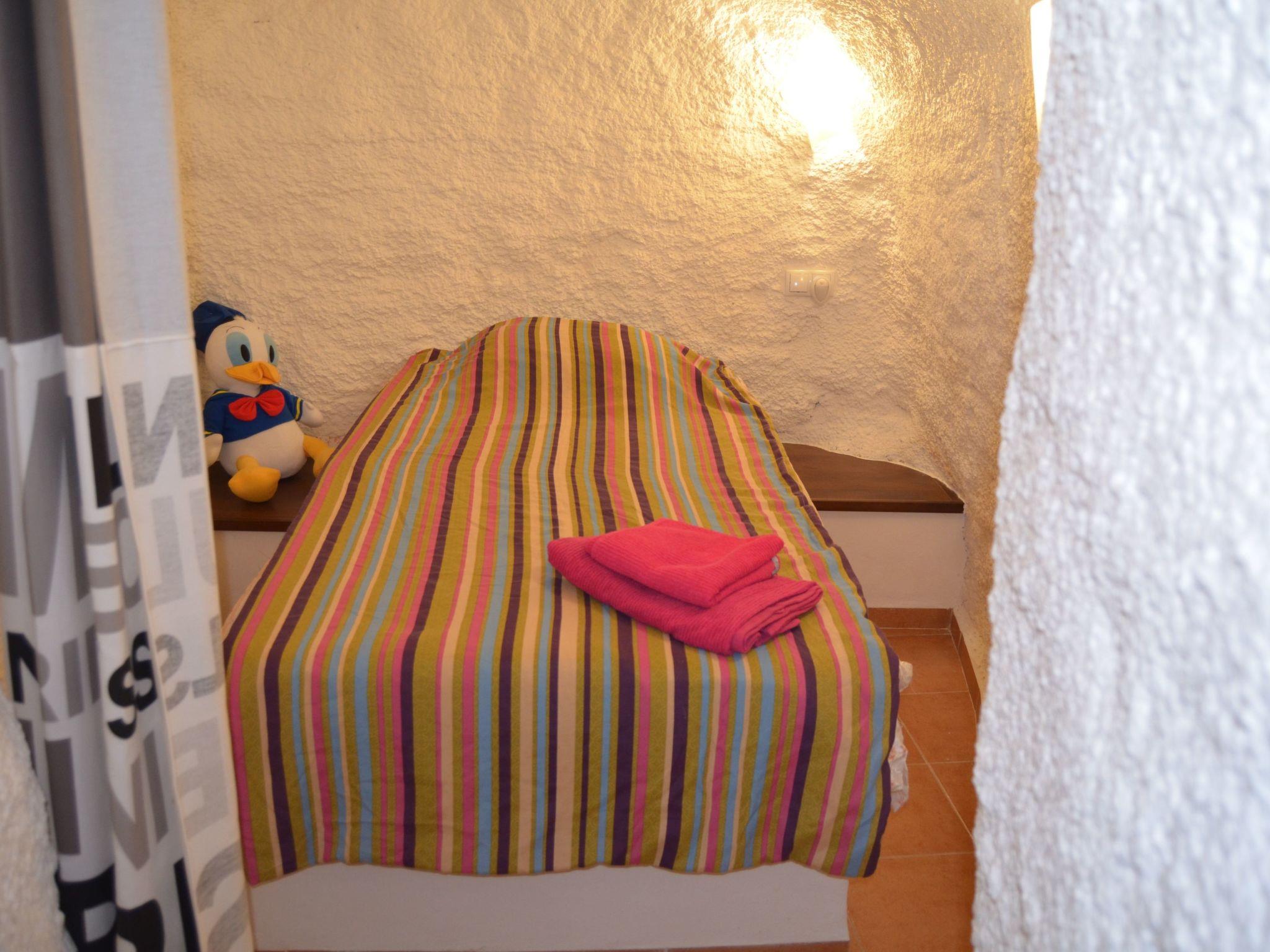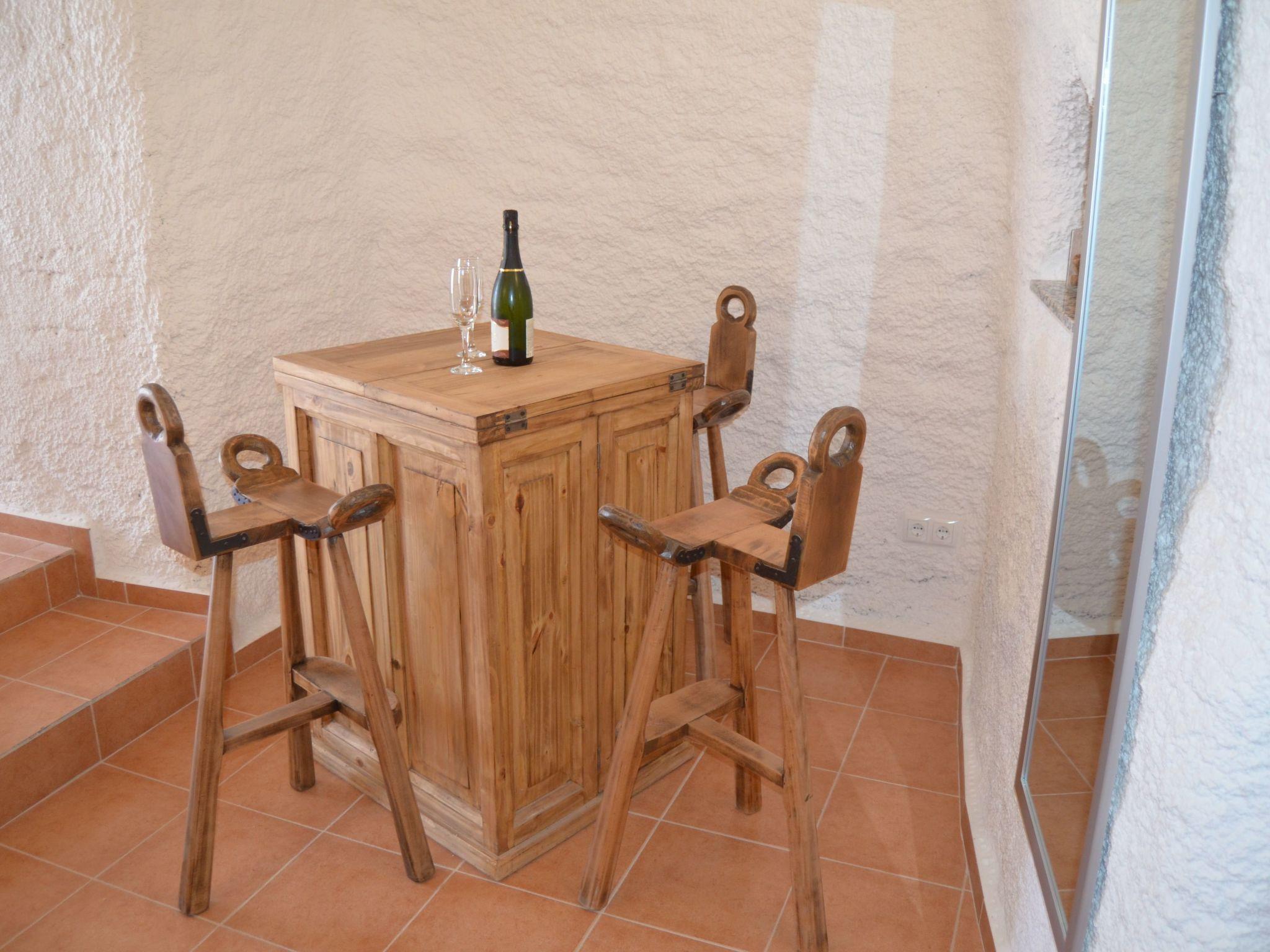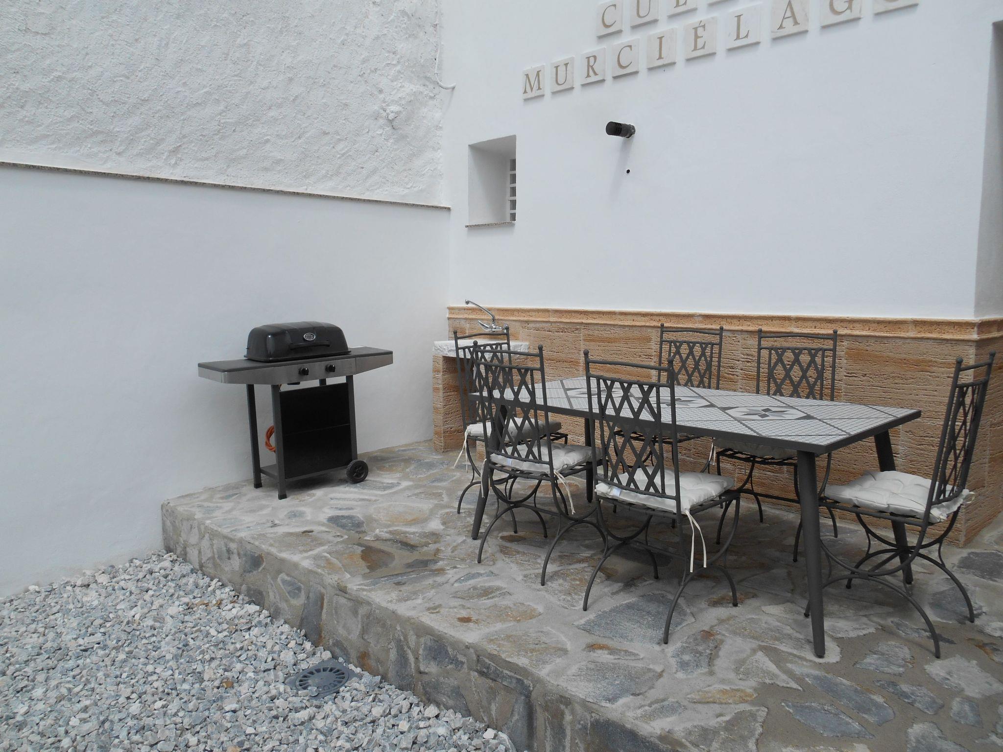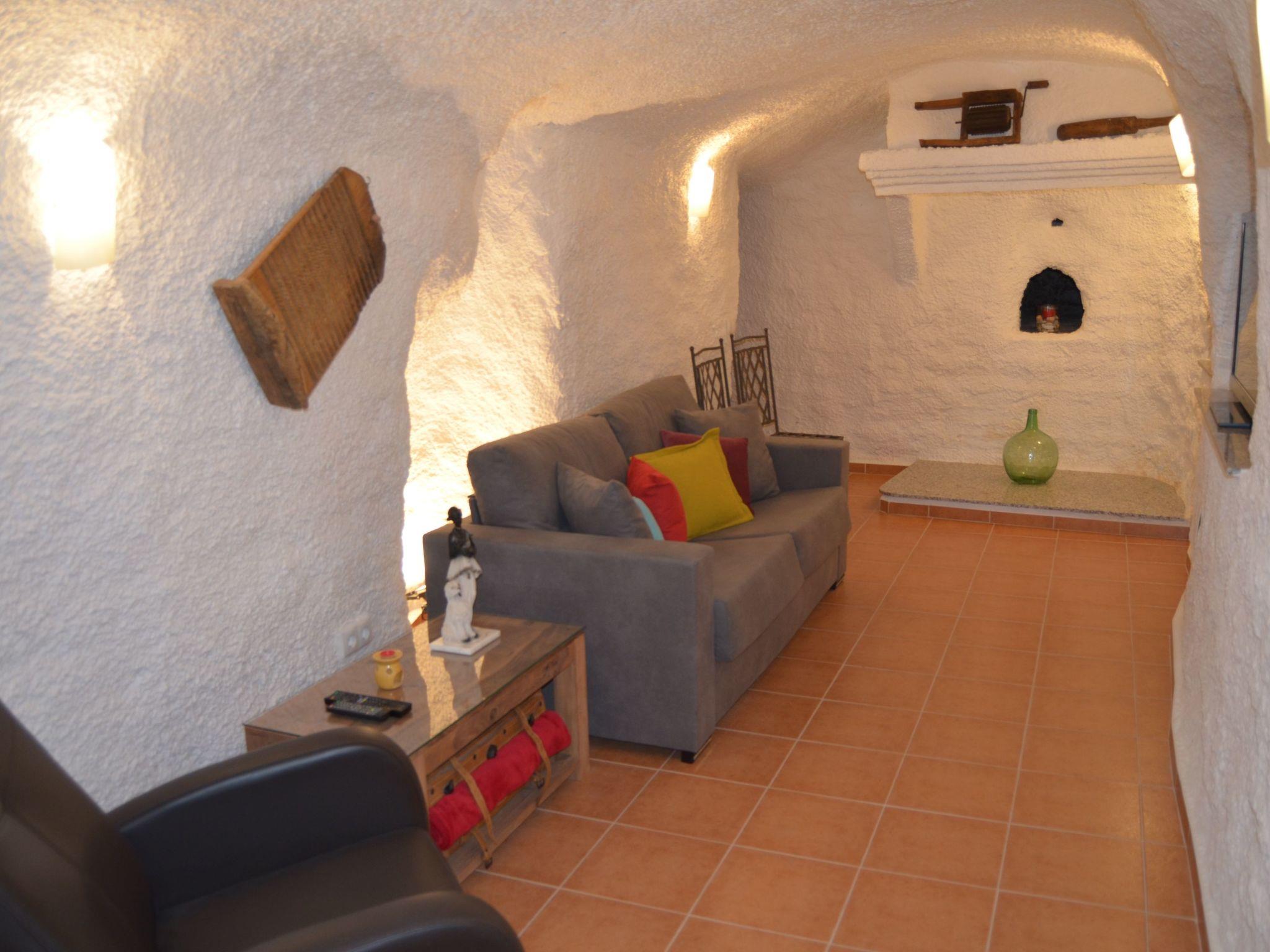 Cueva Murcielago / Cuevas del CampoCave house Cave flat, adventure holiday, pure relaxation holiday* Beautifully renovated cave house. * Only 8 km from one of the largest reservoirs in Spain with a length of 17 km. * Only 80 kilometres from Granada and 85 kilometres from Sierra Nevada, one of the largest ski resorts in Spain, our cave house is furnished and habitable. We have two double bedrooms, one single bedroom and a large pull-out sofa bed for two people. (Two bathrooms, with toilet, shower, bidet and washbasin and electric floor heating.The kitchen is equipped with fridge, cooker and wood stove, washing machine, dryer, toaster, blender, kettle, juicer, coffee maker and crockery with all accessories.A living room with pellet stove, sofa bed, armchair, table, next to the pellet stove is the TV and plenty of space to relax! All rooms are on one floor. On the terrace there is a barbecue area with table and chairs and a sink. This building does not need artificial air conditioning, although it does have a fireplace. The cave is in impermeable natural clay in the mountain. Therefore, the year-round inside temperature is constantly between 18 - 24 degrees Celsius, thanks to the thick natural walls that also insulate the house from noise.large front garden with parasol, table and chairs, sink and gas BBQ. Ideal for relaxing and recharging your batteries after a stressful day at work, the cave houses are well known for their excellent climatic conditions. The temperature in the cave is almost the same in summer and winter. The cave dwellings are always well tempered due to the thick walls and the location in the rock, whether summer or winter, the room temperature is always between 18 and 24 degrees. Our cave is located in Cuevas del Campo (Spain). About 80 kilometres from Granada and about 35 kilometres from the famous cave village of Guadix. Wonderfully situated on one of several reservoirs, where you can pursue your hobby. Swimming with clothing or nudism, fishing for trout and carp, cruising by motorboat or pedal boat, cycling, wonderful motorbike tours. Horse riding and, of course, wonderful hiking tours. 28 kilometres to Castril and the Sierra Cazorla. In the town centre you will find several restaurants with a café-bar, several supermarkets, a butcher and bakery, a pharmacy, a savings bank and several bars. There is a museum in the town centre. The surrounding area is ideal for hiking and cycling. There is also a thermal bath in Zujar which is approx. 20 km away.