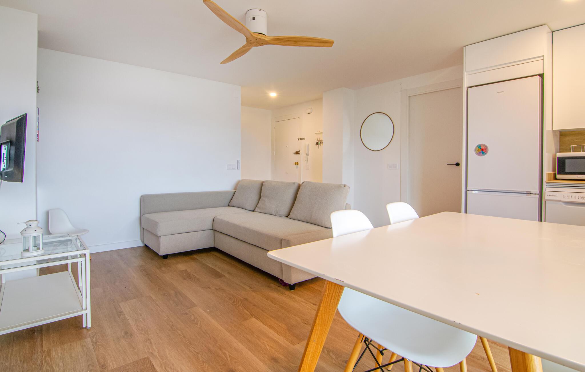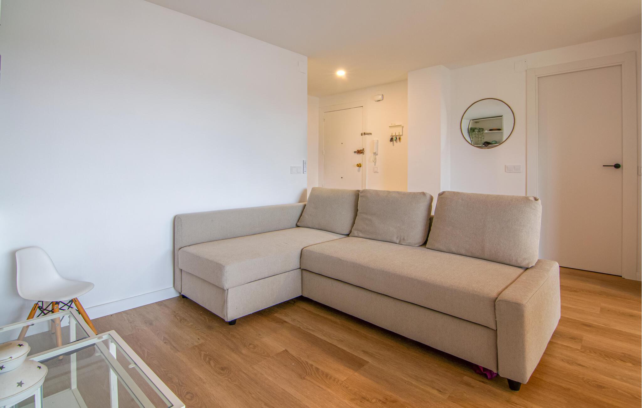 Velkommen til denne indbydende ferielejlighed med en fantastisk beliggenhed kun få skridt fra havet. Her finder I det ideelle sted for en afslappende pause fra hverdagens stress og jag. Brug den moderne og stilfuldt indrettede lejlighed som base for en skøn ferie, hvor I kan udforske området og nyde strandlivet. Om aftenen kan I slappe af på den komfortable sofa og nyde tiden sammen.
