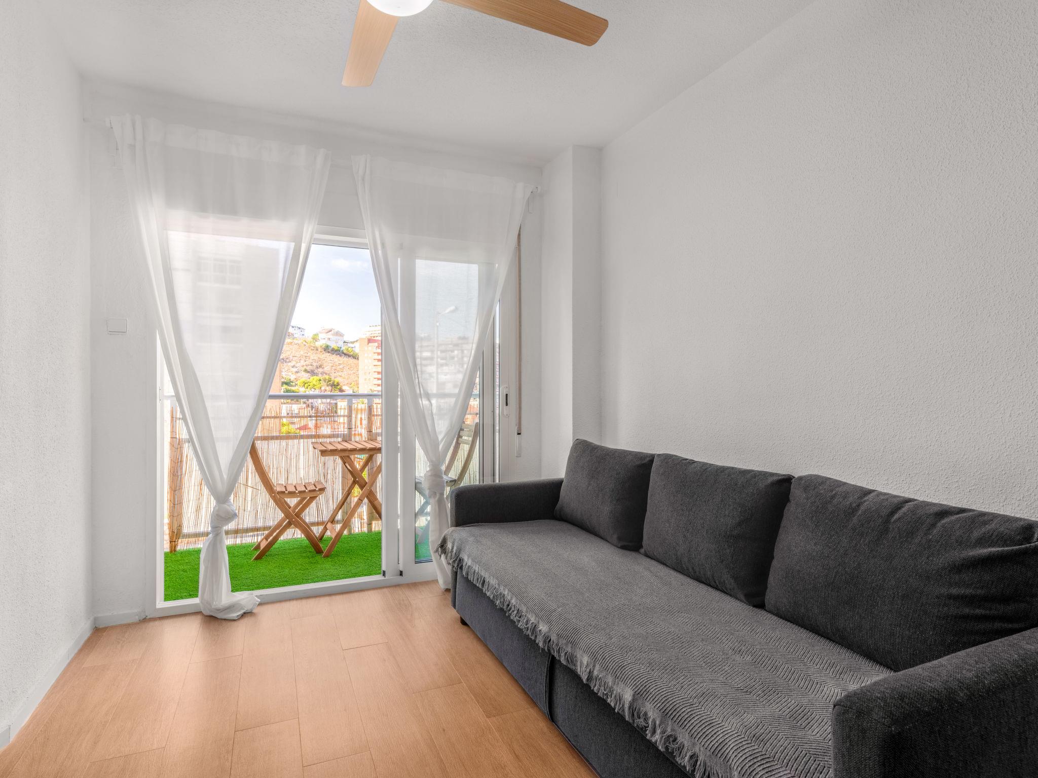 "Orion", 2-room apartment 40 m2 on 1st floor. Practical and comfortable furnishings: living/dining room with 1 double bed, dining table, digital TV, flat screen, electric heating and fan. Exit to the balcony. 1 room with 1 french bed (140 cm, length 200 cm), electric heating and fan. Small, open kitchen (2 ceramic glass hob hotplates, toaster, microwave, freezer, grill, electric coffee machine, Capsules for coffee machine (Nespresso) extra). Bath/WC. Electric heating. Balcony. Balcony furniture. View of the sea. Facilities: washing machine, iron. Please note: non-smokers only. Smart TV. VT-51344-V // Reg. Nr.: ESFCTU000046037000242651000000000000000000VT-51344-V7