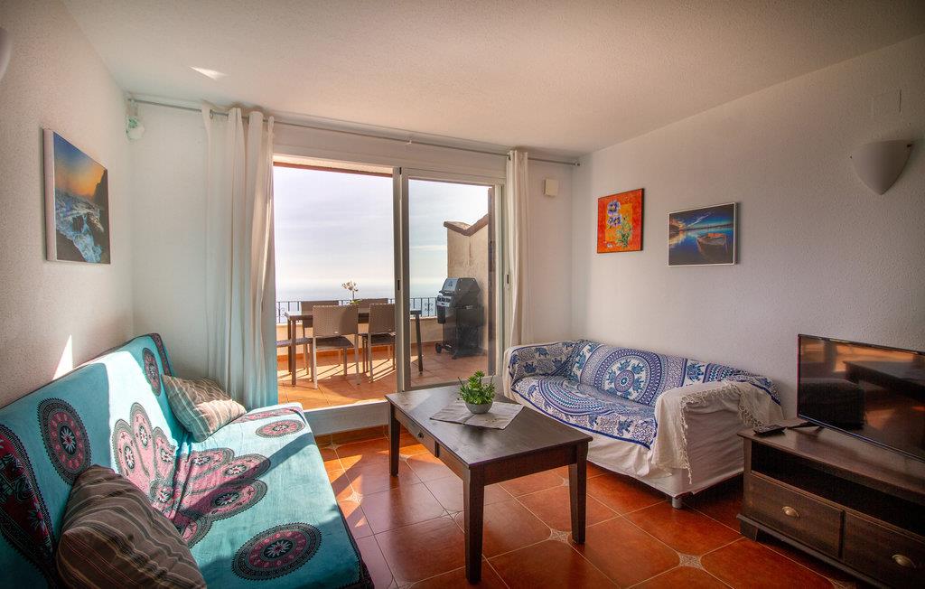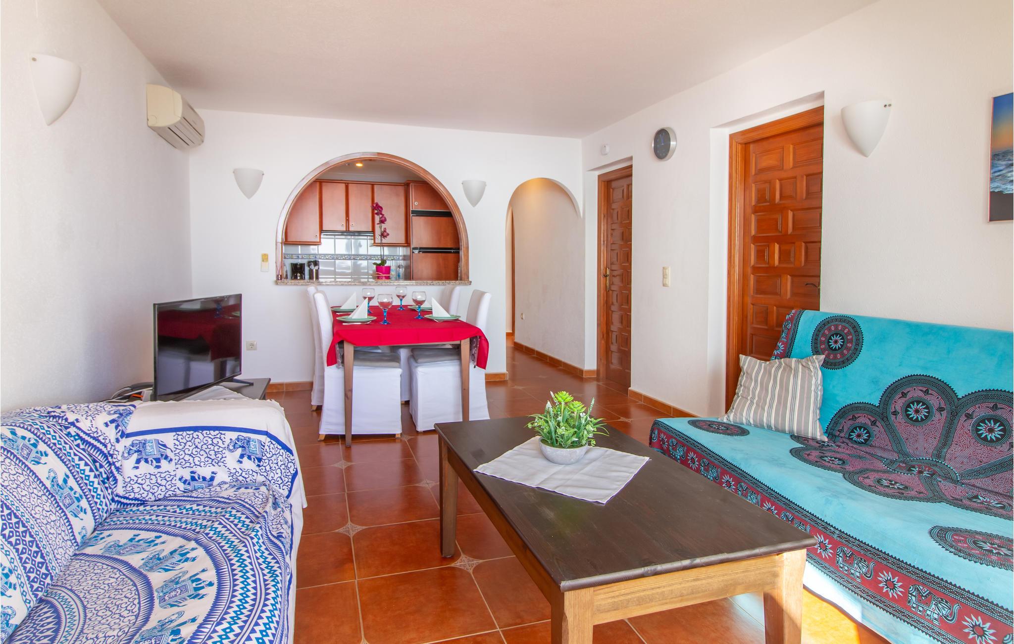 Med 2 soveværelser, en rummelig stue, et fuldt udstyret amerikansk køkken og en fantastisk terrasse med panoramaudsigt over Middelhavet og klipperne er dette det ideelle valg til en ferie fuld af afslapning. Denne lejlighed tilbyder alt, hvad du har brug for til en fantastisk ferie. Vil du gerne være aktiv eller bare køle lidt af, kan du hoppe i den fælles pool.