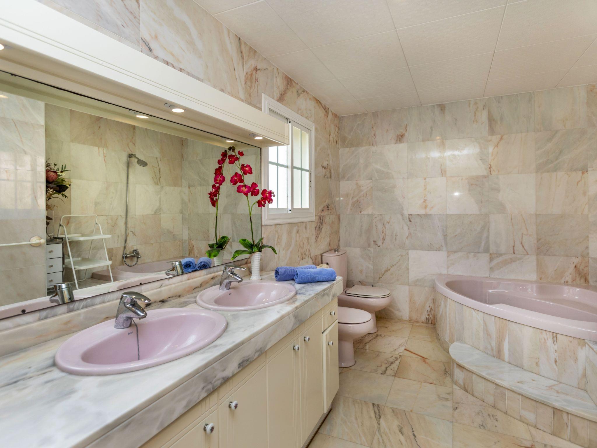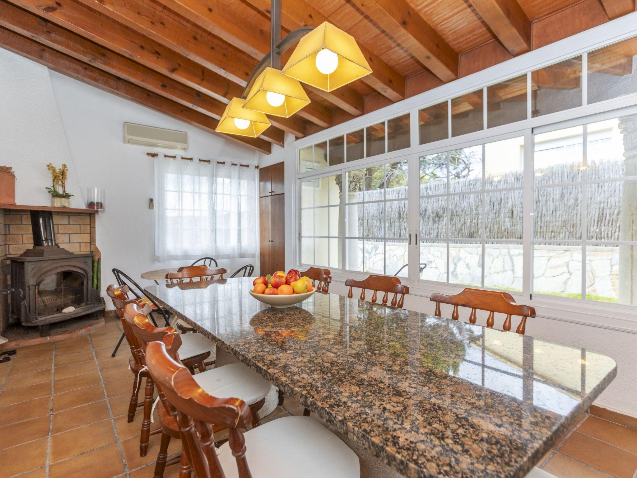 "Bon repos", 7-room house 164 m2 on 2 levels. Object suitable for 6 adults + 3 children. Spacious and bright, comfortable and cosy furnishings: large living/dining room with open-hearth fireplace (only for decoration), dining table, digital TV and air conditioning. Exit to the patio. Open large dining room with air conditioning. Exit to the patio. 1 large double bedroom with 1 french bed (150 cm, length 200 cm), bath/WC and air conditioning. 1 double bedroom with 1 french bed (135 cm, length 190 cm), air conditioning. Kitchen (oven, dishwasher, 3 ceramic glass hob hotplates, toaster, kettle, microwave, electric coffee machine, Capsules for coffee machine (Nespresso)) with dining table, air conditioning. Shower/WC. Upper floor: 1 double bedroom with 1 french bed (135 cm, length 190 cm), air conditioning. 1 room with 1 bed (90 cm, length 190 cm). 1 room with 2 beds (90 cm, length 190 cm). Bath/WC. Oil heating. Natural stone floors. Large terrace, large garden. Terrace furniture, barbecue, deck chairs, covered balcony, sitting area. Partial view of the sea. Facilities: washing machine, iron, children's high chair, baby cot, hair dryer. Internet (WiFi, free). Parking (1 car), garage on the property (1 car). Please note: suitable for families. Non-smoking house. TV only ES. Private entrance. HUTT-078281 // Reg. Nr.: ESFCTU00004302600013861600000000000000HUTT-078281-638