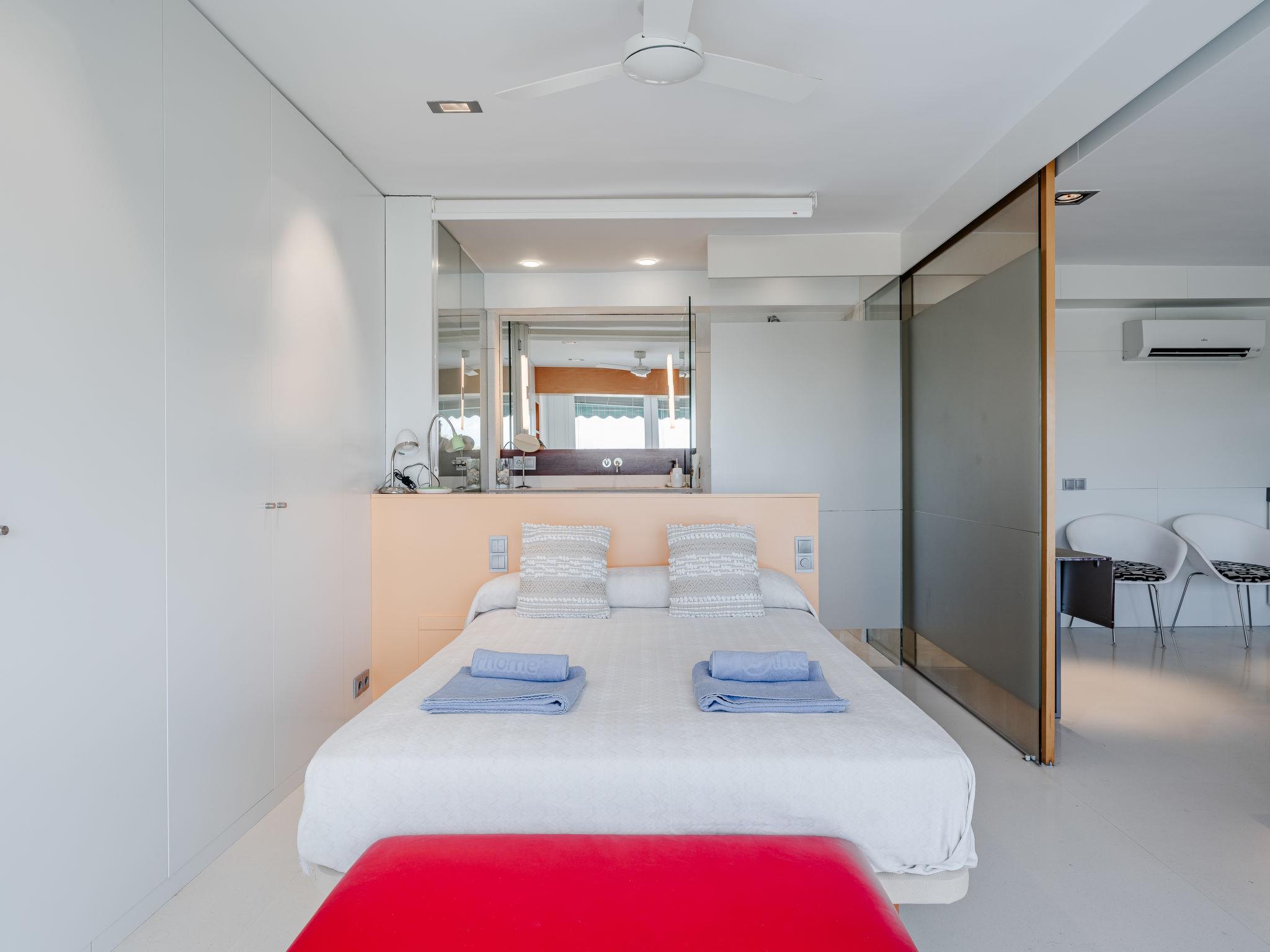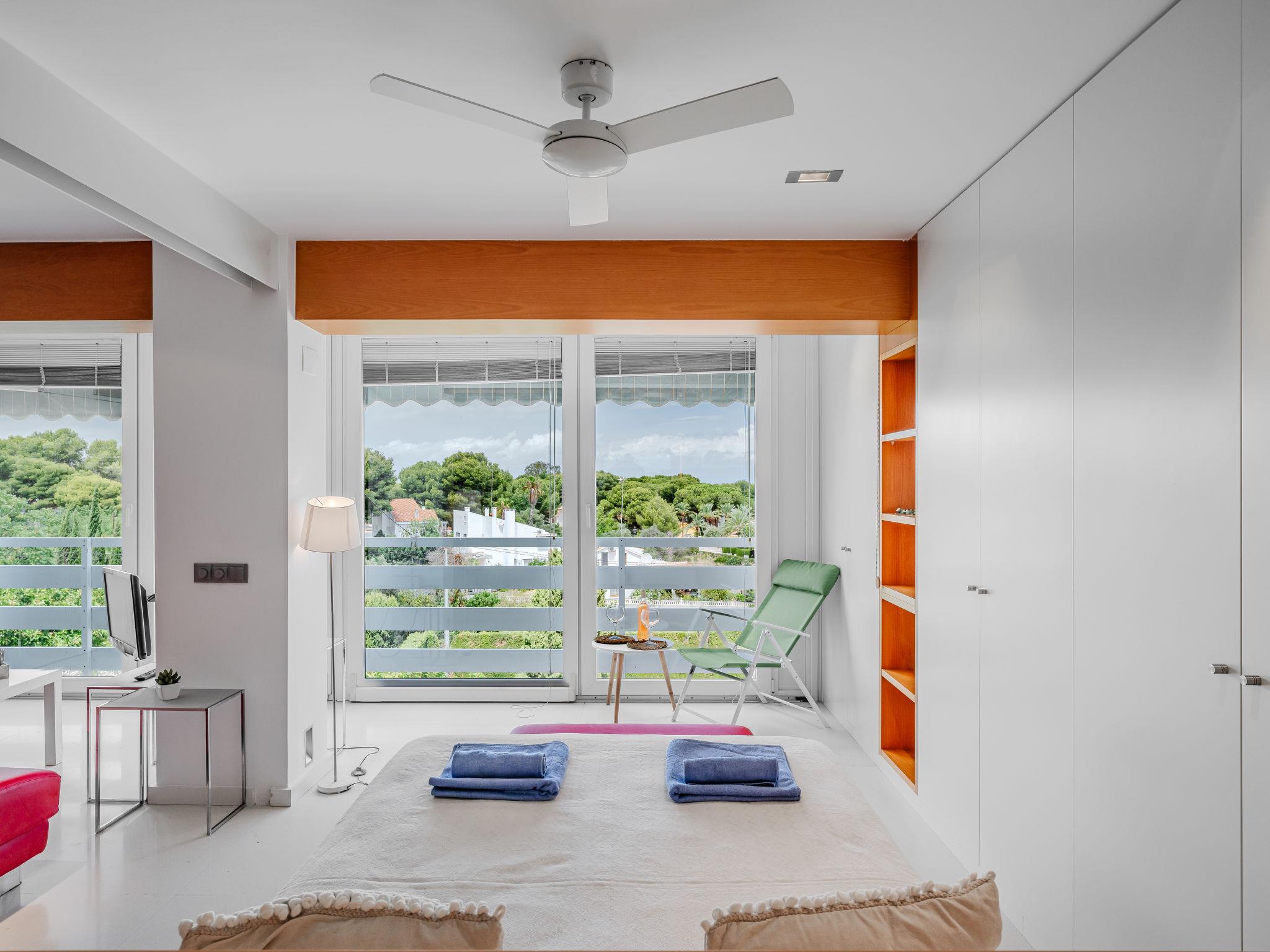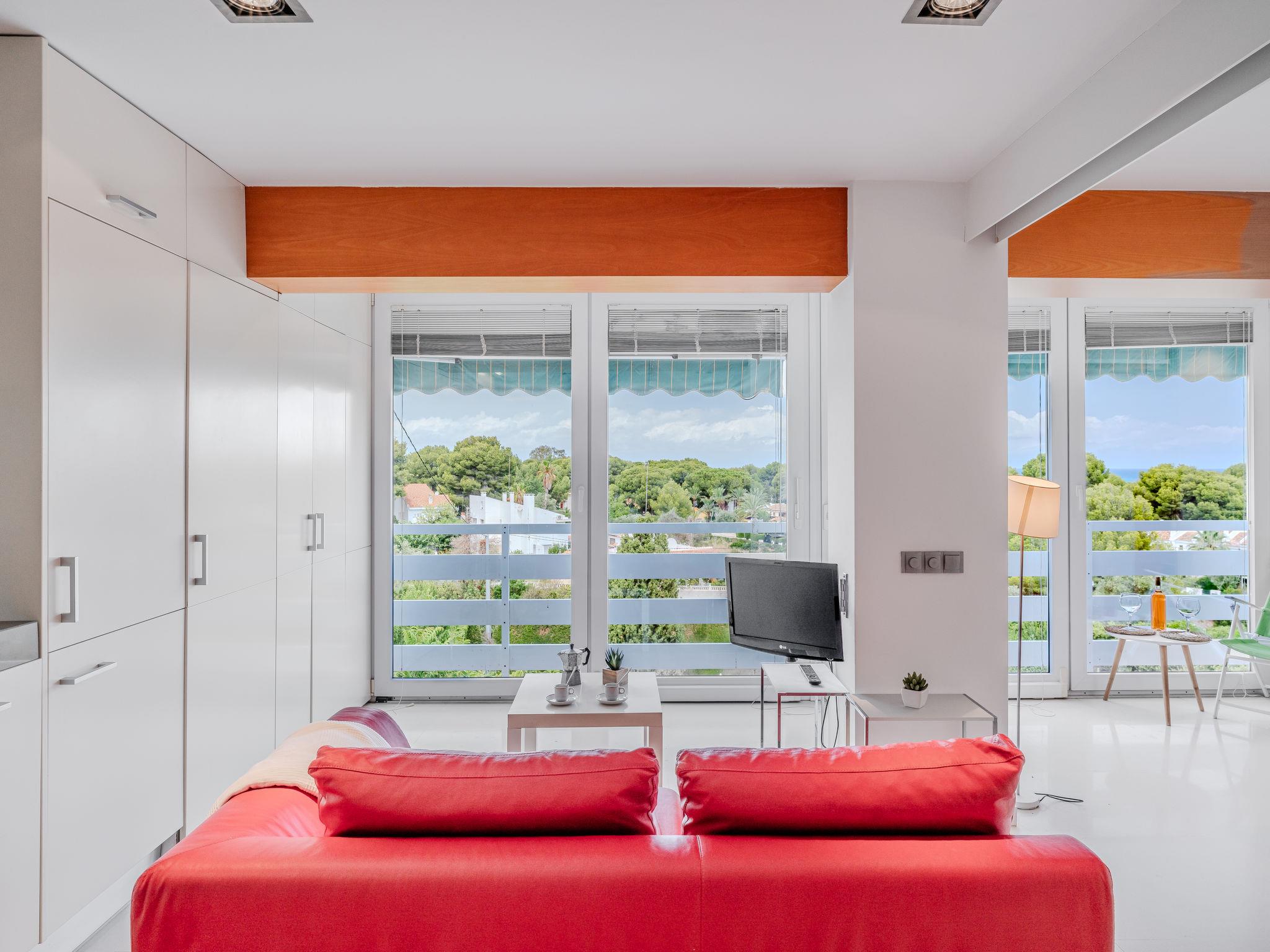 "Los Molinos", 1-room apartment 50 m2. Object suitable for 2 adults + 1 child. Spacious and bright, very beautiful and stylish furnishings: living/dining room with 1 french bed (150 cm, length 190 cm), separate WC, shower, digital TV, air conditioning and forced-air heating. Small kitchen (dishwasher, 2 ceramic glass hob hotplates, toaster, microwave, freezer, electric coffee machine, Capsules for coffee machine (Nespresso) extra). Marvellous view of the sea and the valley. Facilities: washing machine, dryer, iron, hair dryer. Internet (WiFi, free). Parking. Please note: TV only ES. R00000001