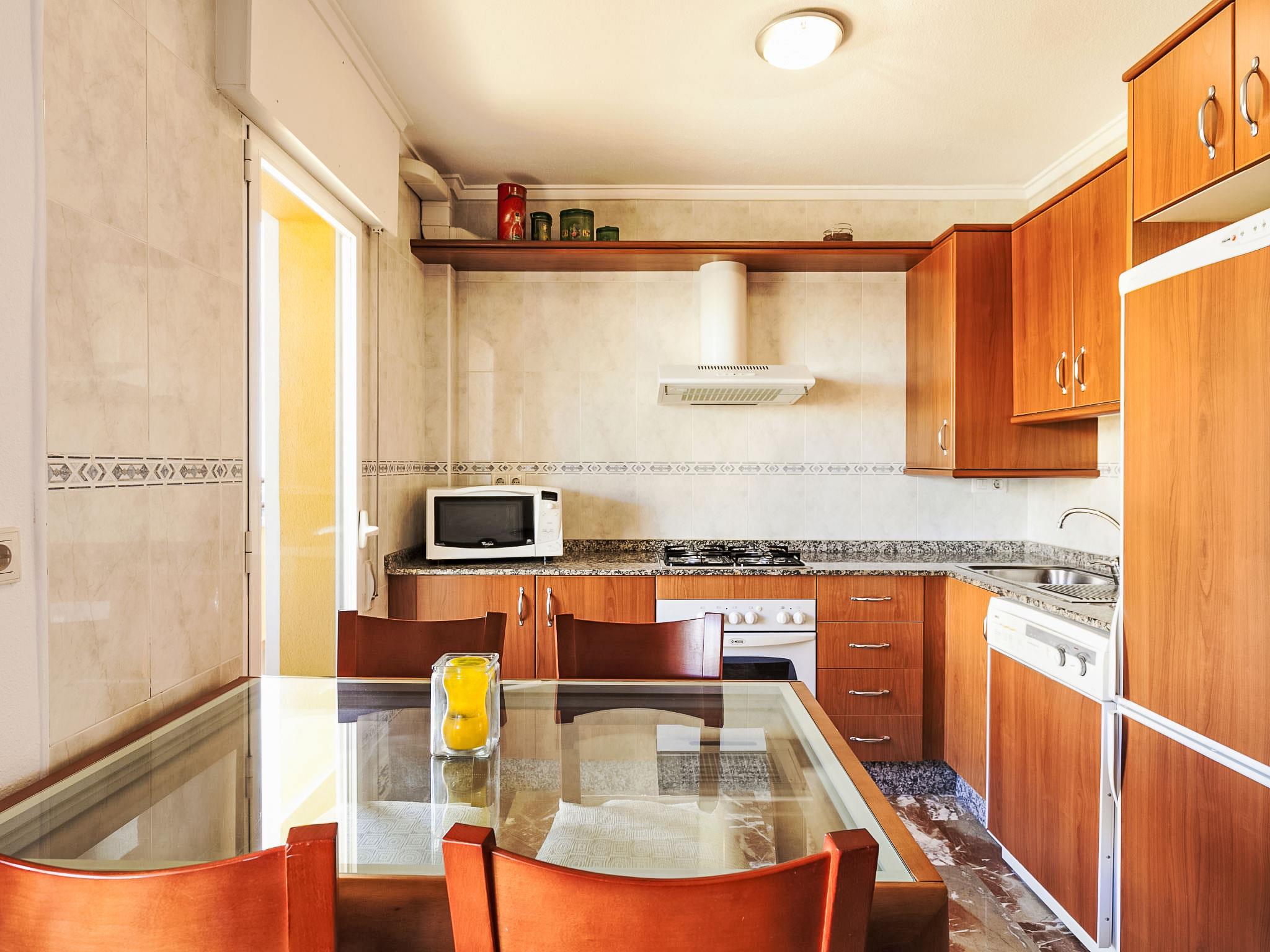 Residence "Cascadas de la Marina", 4 storeys, surrounded by trees. On the outskirts, 500 m from the centre of Denia, 250 m from the sea. For shared use: garden (fenced) with lawn, swimming pool (15 x 30 m, depth 150 - 210 cm, seasonal availability: 01.Jan. - 31.Dec.) with internal staircase. Children's pool, outdoor shower. In the house: lift. Supermarket 1 km, restaurant, bus stop 200 m, sandy beach 250 m. Sports harbour 1.5 km, golf course (18 hole) 8 km, tennis 700 m. The owner does not accept any youth groups. Lift.