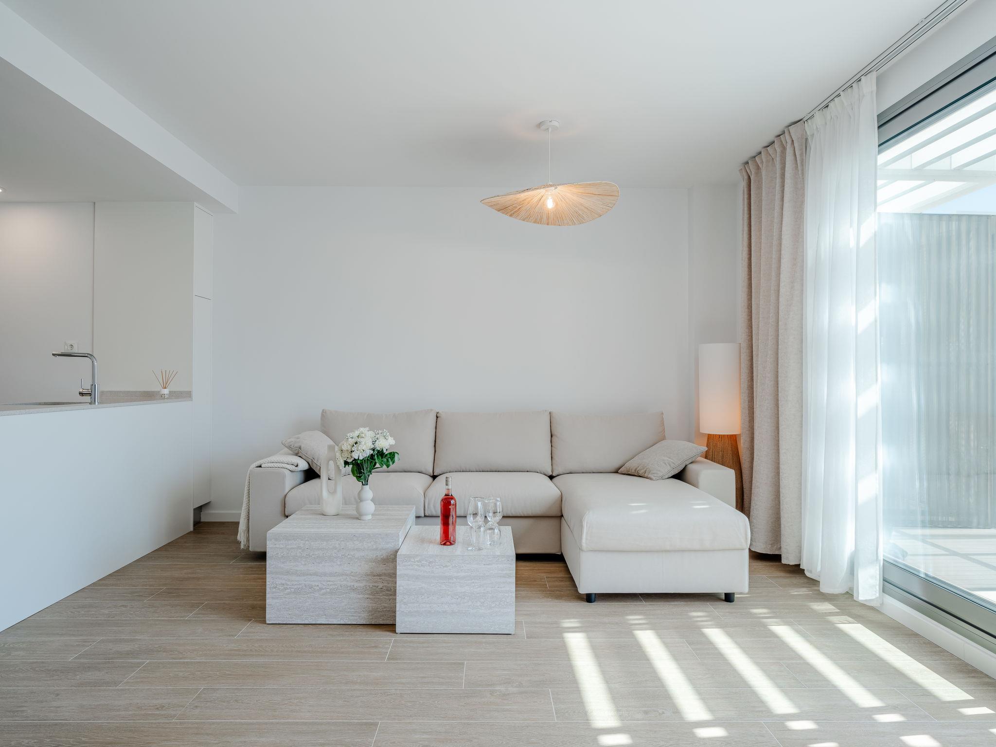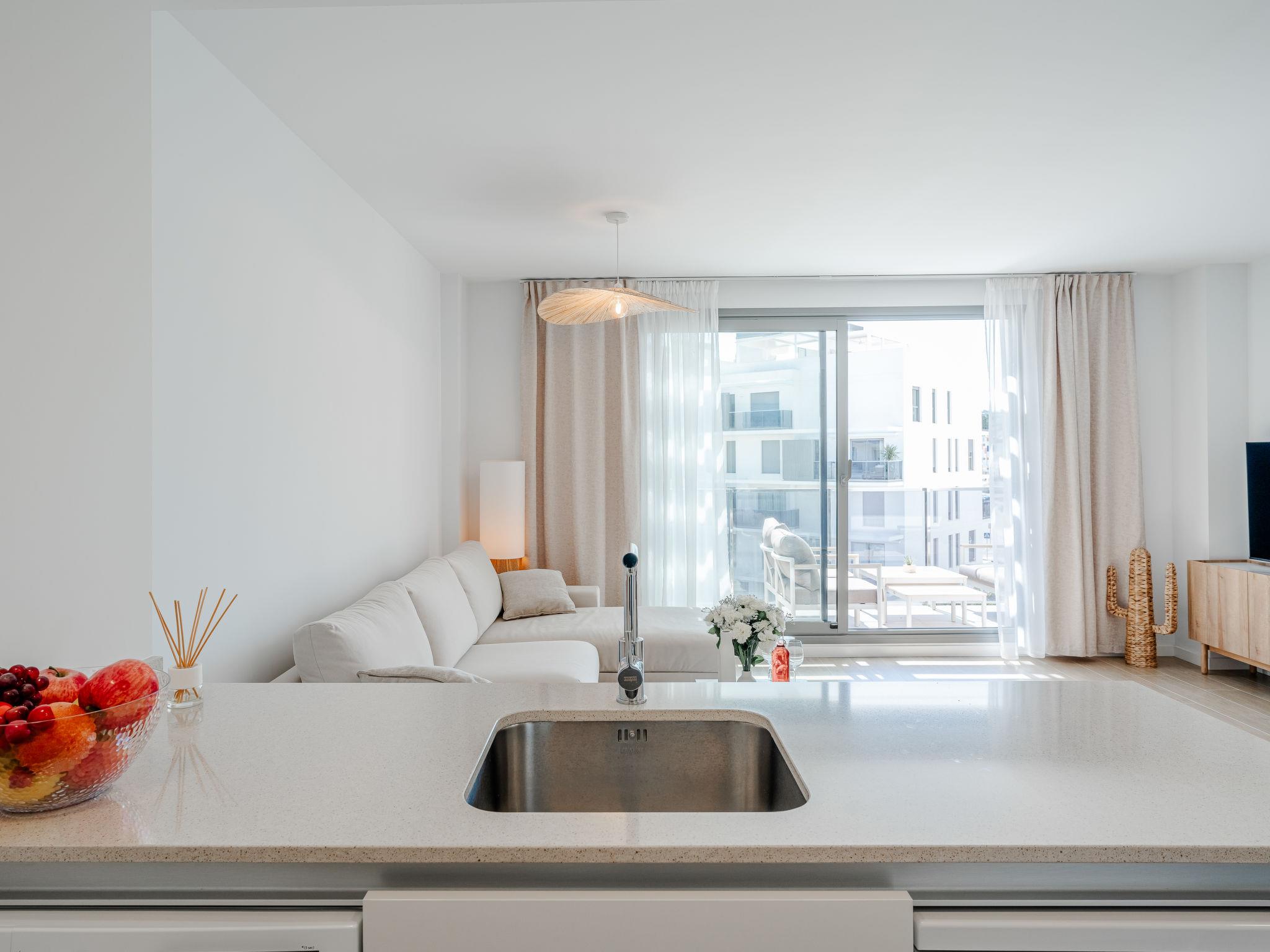 "Marina Real III", 3-room apartment 72 m2 on 3 levels. Spacious and bright, very beautiful and stylish furnishings: living/dining room with digital TV, air conditioning and forced-air heating. Exit to the terrace. 1 room with 1 french bed (160 cm, length 200 cm), shower/WC, air conditioning and forced-air heating. 1 room with 2 beds (90 cm, length 200 cm), air conditioning and forced-air heating. Open kitchen (oven, dishwasher, 3 induction hot plates, toaster, kettle, microwave, freezer, electric coffee machine). Shower/WC. Large terrace. Terrace furniture, sitting area. Very beautiful view of the swimming pool and the garden. Facilities: washing machine, iron, hair dryer. Internet (WiFi, free). Garage space n N. R00000001 // Reg. Nr.: ESFCNT00000305500086528600000000000000000000000000007