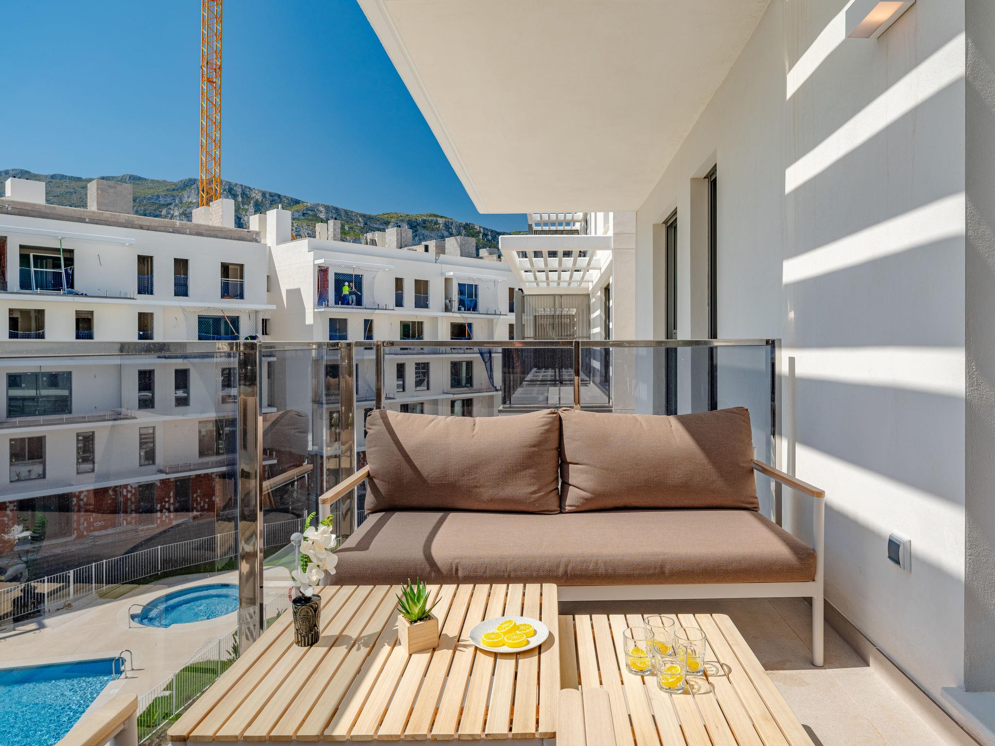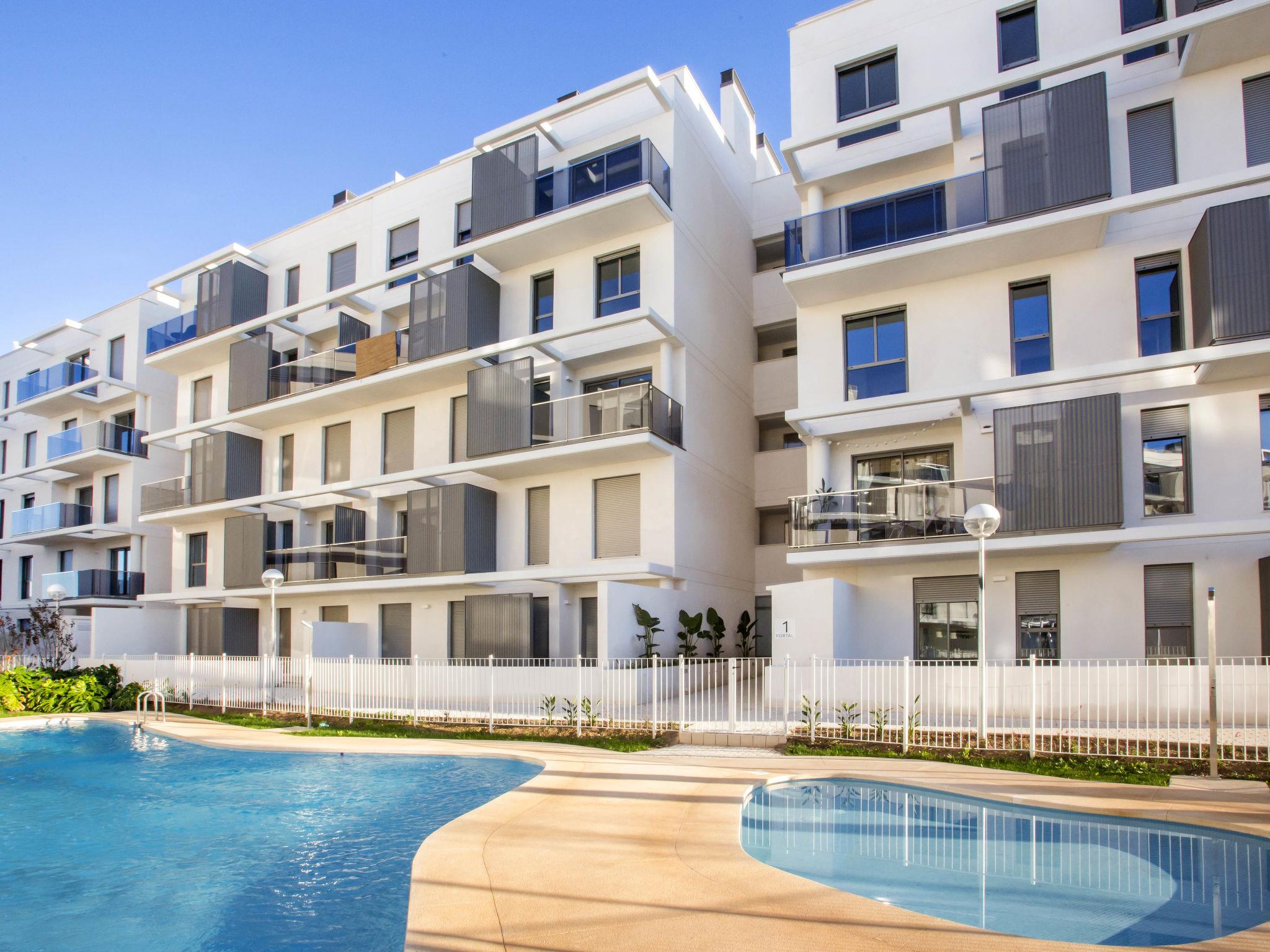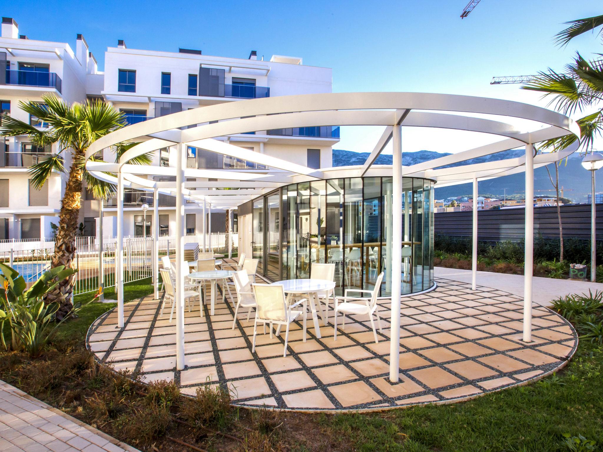 Very large, very modern apartment block "Marina Real III". In the resort 500 m from the centre of Dénia, in a quiet, sunny position, 350 m from the sea, 750 m from the beach. For shared use: large, beautiful, well-kept garden with lawn and trees, 2 swimming pools (20 x 15 m, depth 40 - 210 cm, seasonal availability: 01.Jan. - 31.Dec.) with internal staircase. Unconventional pool shape. Children's pool, outdoor shower, garden furniture, children's playground. In the house: lift. Communal covered parking. Supermarket 100 m, restaurant 500 m, café 450 m, bus stop 1.1 km, railway station 1 km, ferry 2 km, sandy beach "Marineta Cassiana" 700 m. Sports harbour, surf school, sailing school 500 m. The owner does not accept any youth groups.