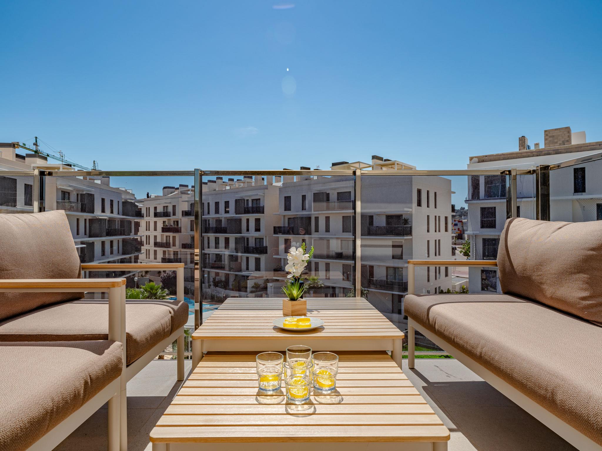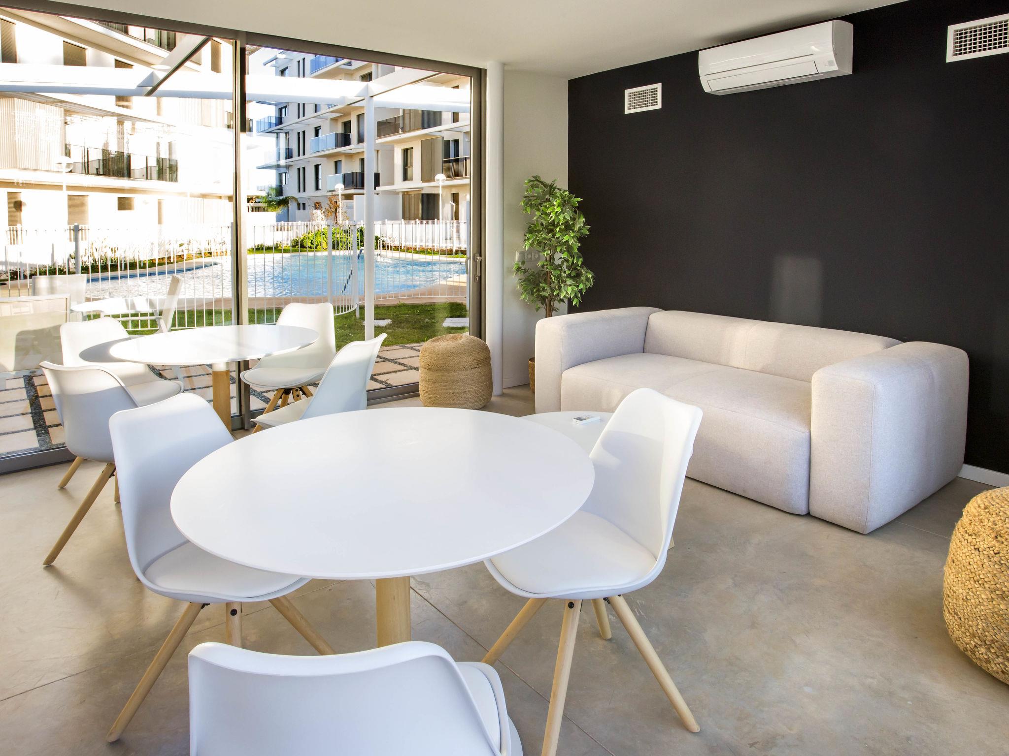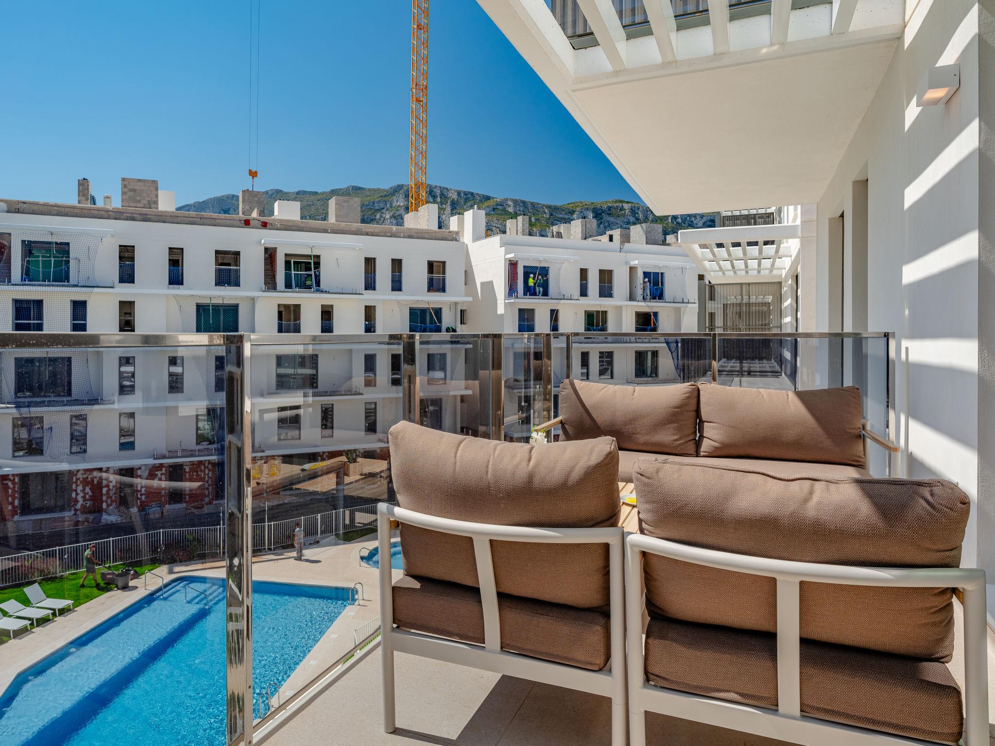 Very large, very modern apartment block "Marina Real III". In the resort 500 m from the centre of Dénia, in a quiet, sunny position, 350 m from the sea, 750 m from the beach. For shared use: large, beautiful, well-kept garden with lawn and trees, 2 swimming pools (20 x 15 m, depth 40 - 210 cm, seasonal availability: 01.Jan. - 31.Dec.) with internal staircase. Unconventional pool shape. Children's pool, outdoor shower, garden furniture, children's playground. In the house: lift. Communal covered parking. Supermarket 100 m, restaurant 500 m, café 450 m, bus stop 1.1 km, railway station 1 km, ferry 2 km, sandy beach "Marineta Cassiana" 700 m. Sports harbour, surf school, sailing school 500 m. The owner does not accept any youth groups.