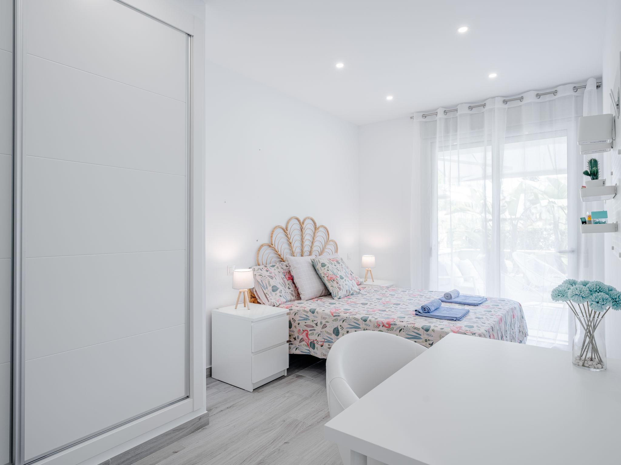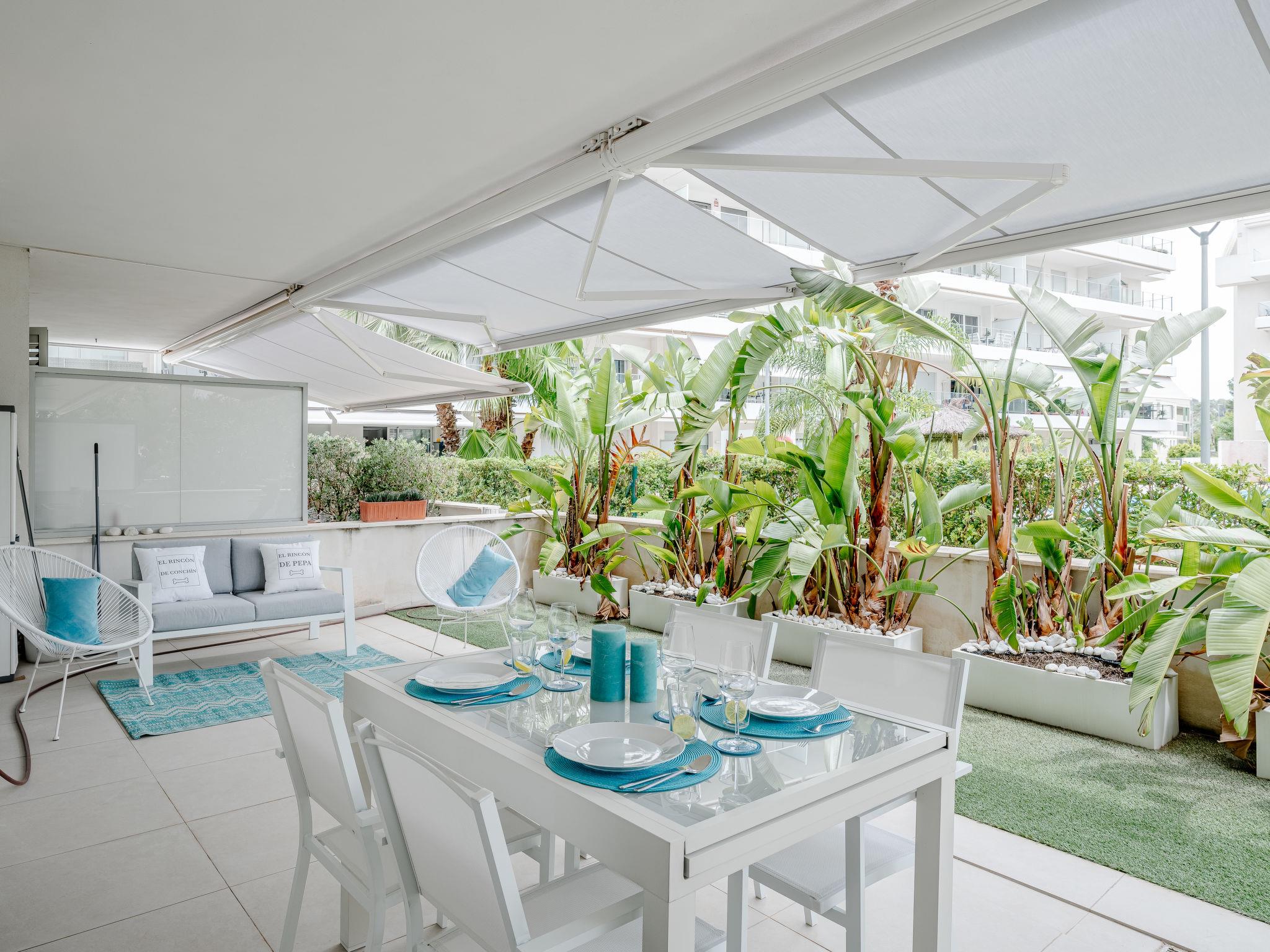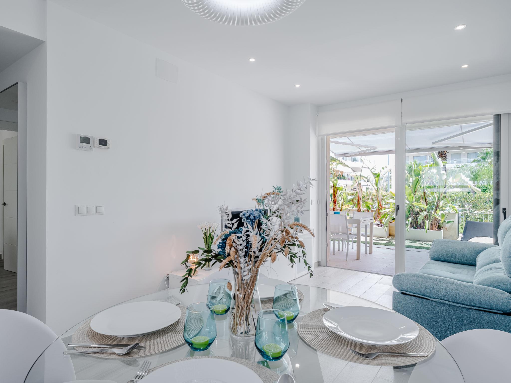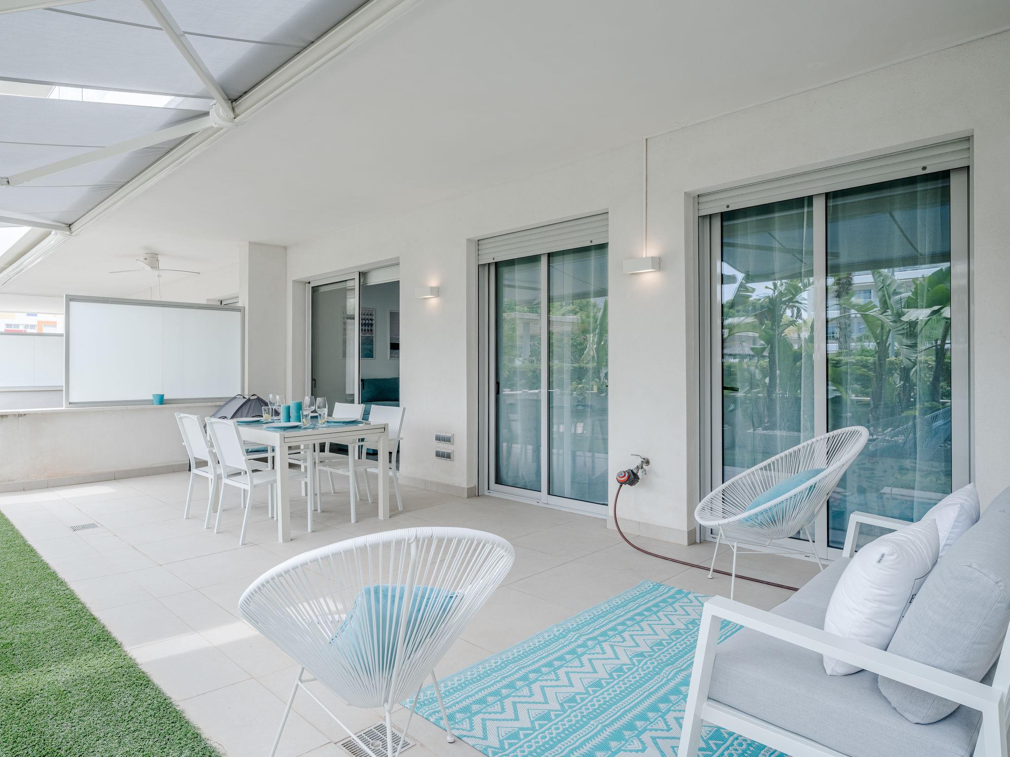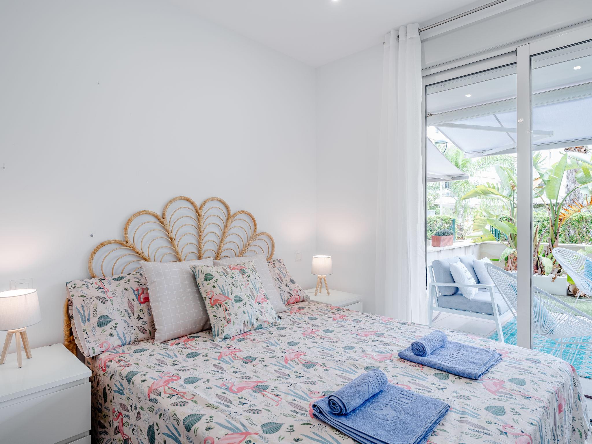 "Marina Real I", 3-room apartment 74 m2. Spacious, very beautiful and stylish furnishings: living/dining room with digital TV, air conditioning and forced-air heating. Exit to the terrace. 1 room with 1 french bed (150 cm, length 190 cm), shower/WC, air conditioning and forced-air heating. Exit to the terrace. 1 room with 1 bed (105 cm, length 190 cm), air conditioning and forced-air heating. Exit to the terrace. Open kitchen (oven, dishwasher, 3 ceramic glass hob hotplates, microwave, freezer, electric coffee machine, Capsules for coffee machine (Papel/Paper/Papier) extra) with air conditioning and forced-air heating. Shower/WC. Large terrace 32 m2. Terrace furniture. Very beautiful view of the swimming pool and the garden. Facilities: washing machine, iron, hair dryer. Please note: TV only ES. R00000001 // Reg. Nr.: ESFCNT00000305500082574700000000000000000000000000005