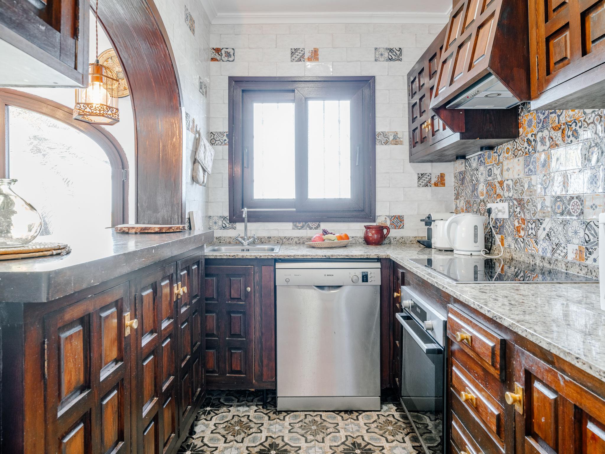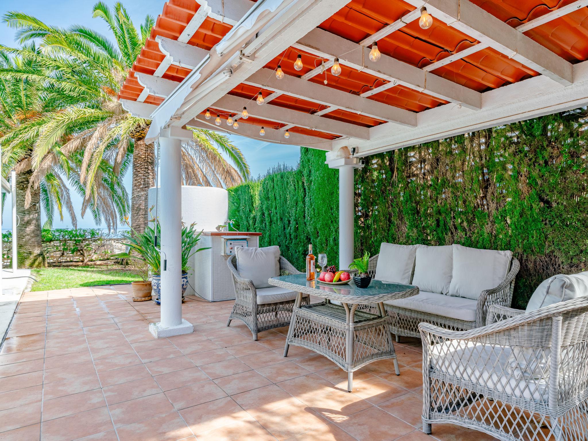 Large, comfortable house "Villa Fili". In the resort 2.5 km from the centre of Dénia, in a quiet, sunny position, 2 km from the sea, 2 km from the beach, in a cul-de-sac. Private: garden with lawn and trees, swimming pool (10 x 5 m, depth 80 - 185 cm, seasonal availability: 01.Jan. - 31.Dec.). Outdoor shower, pergola, garden furniture, barbecue house. In the house: washing machine. Parking on the premises, single garage. Supermarket 1.4 km, restaurant 1 km, café 1.4 km, bus stop 3 km, railway station 2.7 km, ferry 5 km, sandy beach "Marineta Cassiana" 2 km. Sports harbour 2 km, surf school 2 km, sailing school 2 km. The owner does not accept any youth groups.