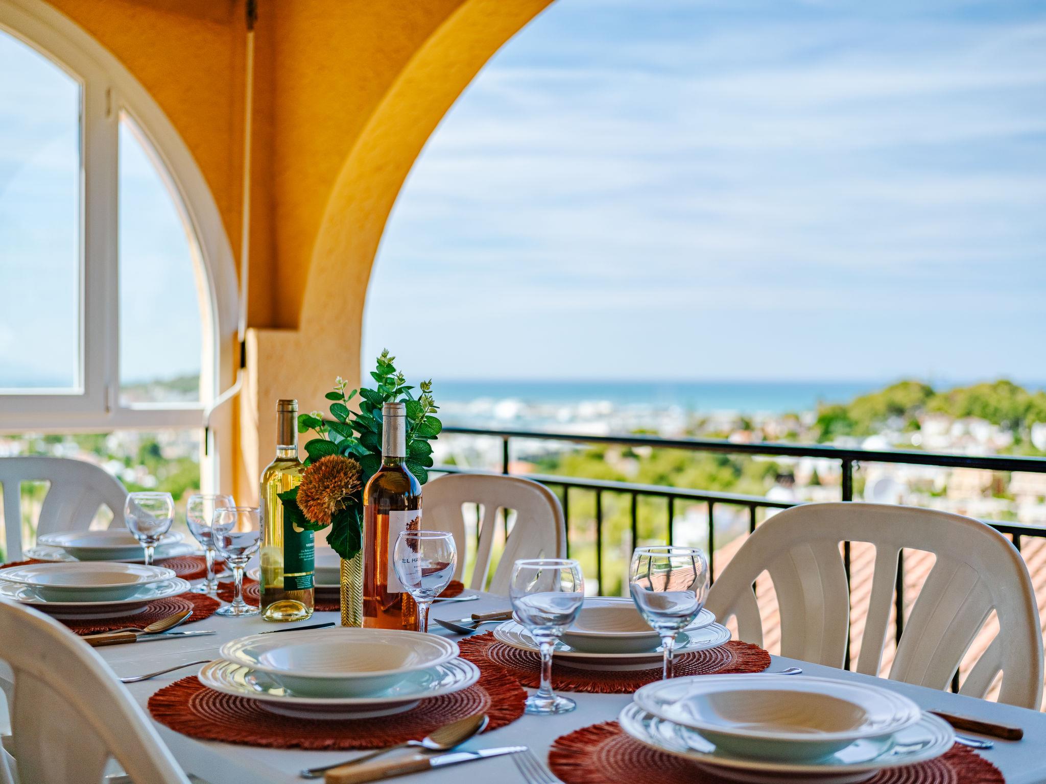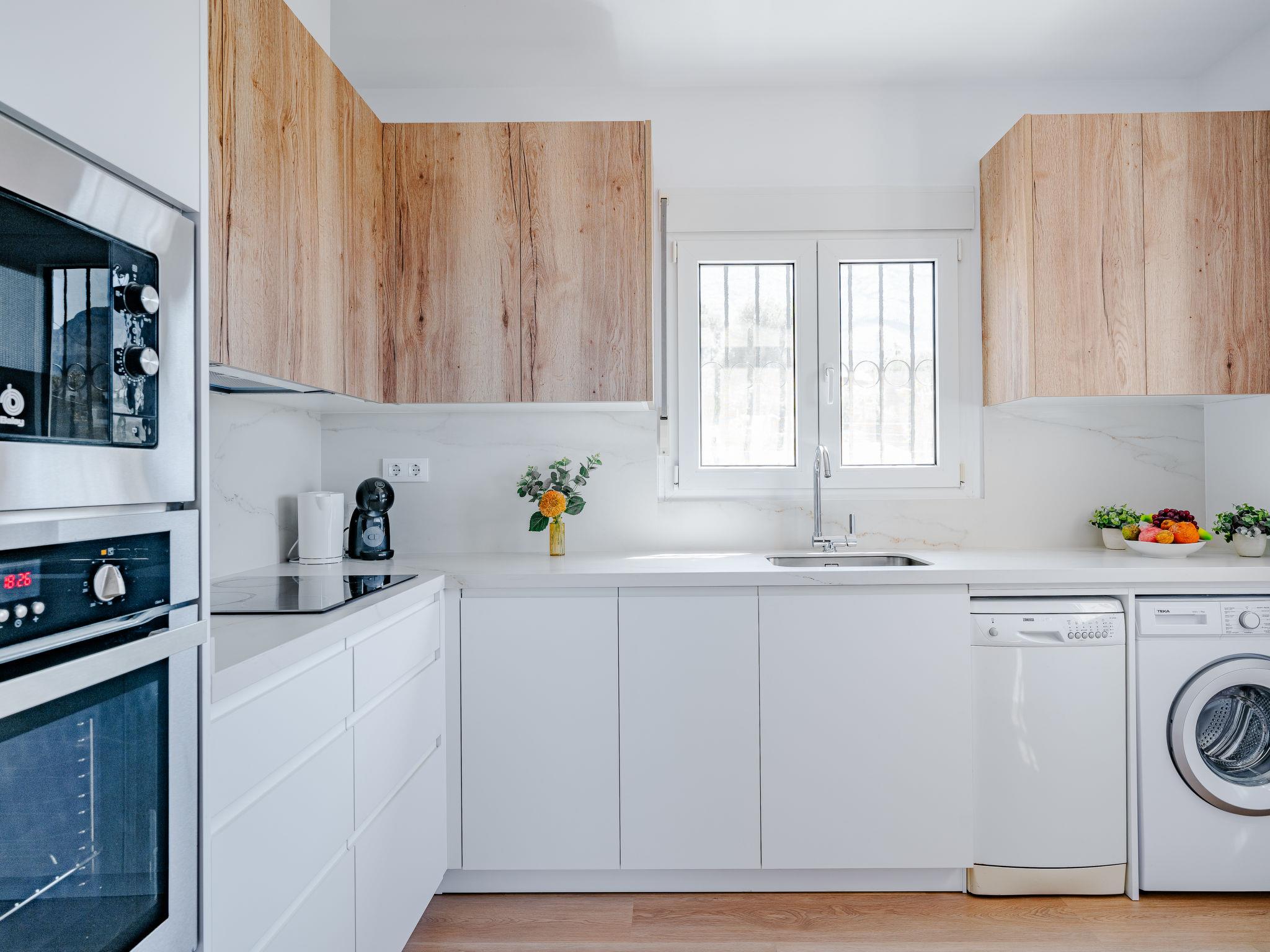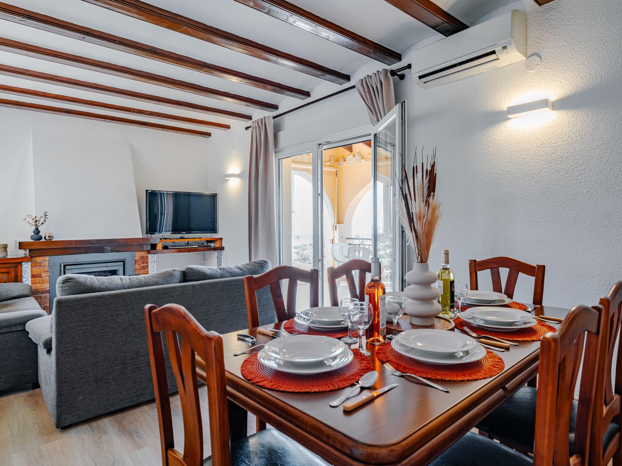"Villa Tana", 4-room house 150 m2. Spacious and bright, partly renovated in 2024, beautiful and stylish furnishings: living/dining room with digital TV, air conditioning and forced-air heating. Exit to the terrace. 1 room with 1 double fold-away bed (150 cm, length 190 cm), shower/WC, air conditioning and forced-air heating. 1 room with 1 french bed (140 cm, length 200 cm), air conditioning and forced-air heating. 1 room with 2 beds (90 cm, length 200 cm), air conditioning and forced-air heating. Large kitchen (oven, dishwasher, 4 ceramic glass hob hotplates, toaster, kettle, microwave, freezer, electric coffee machine). Bath/WC. Large terrace 30 m2. Terrace furniture, deck chairs, covered balcony, sitting area. Marvellous view of the sea, the mountains, the valley and the resort. Facilities: washing machine, iron, hair dryer. Internet (WiFi, free). Parking. Please note: TV only ES. CV-VUT0515201-A // Reg. Nr.: ESFCTU0000030550007880040000000000000CV-VUT0515201-A1