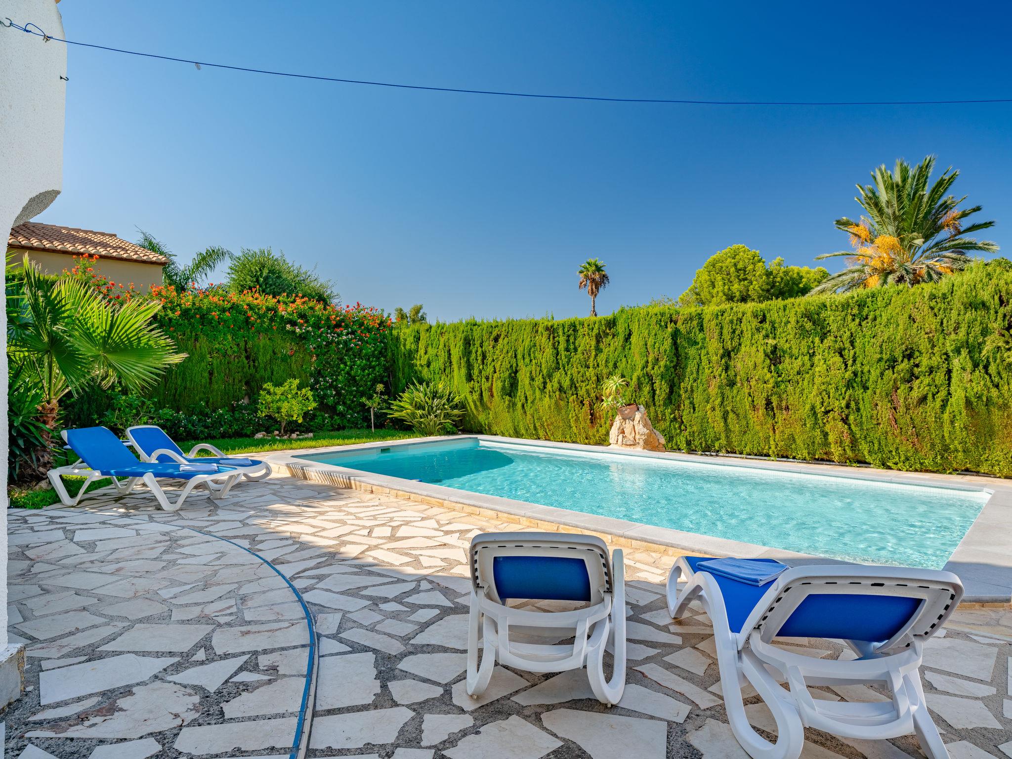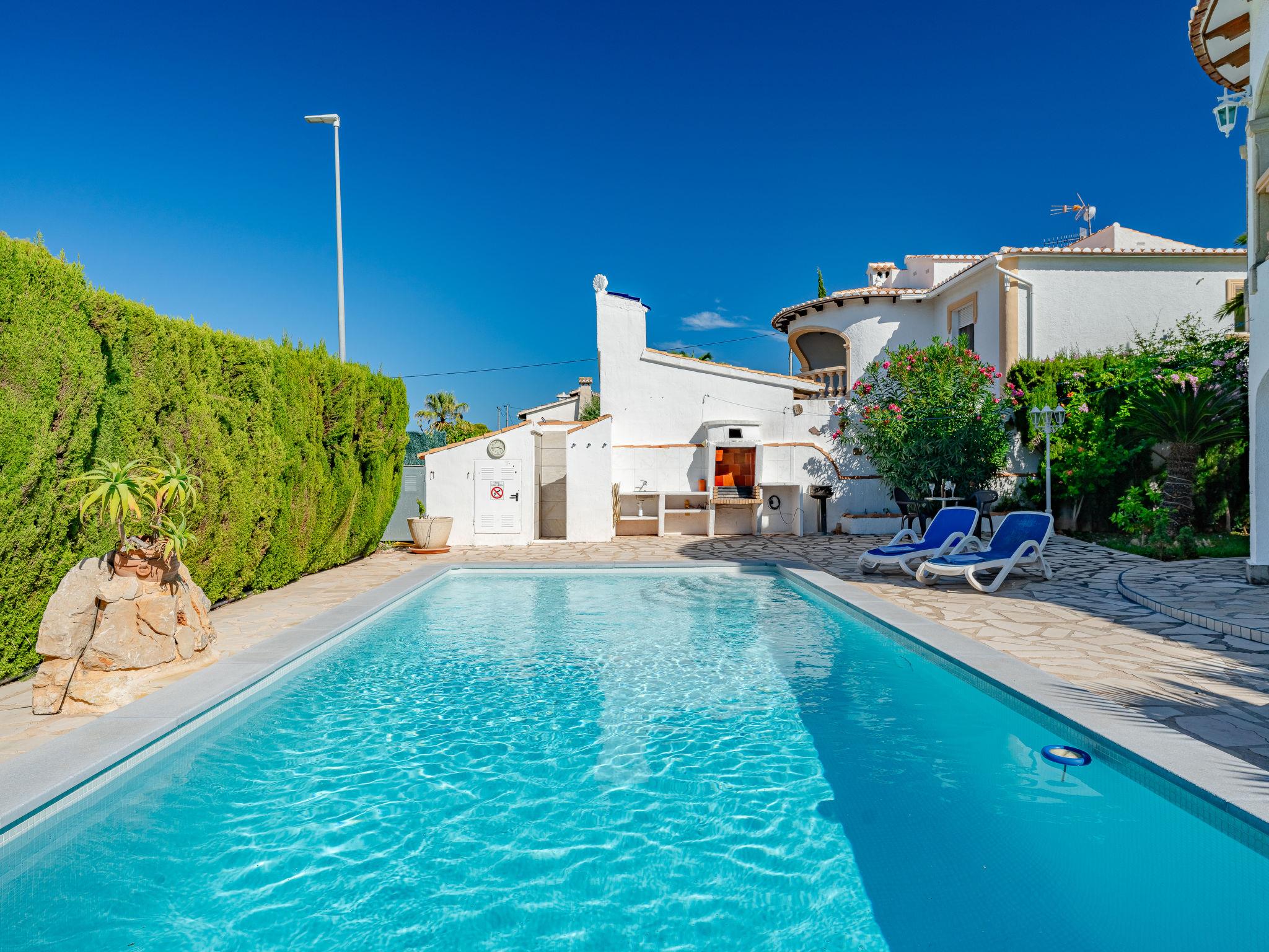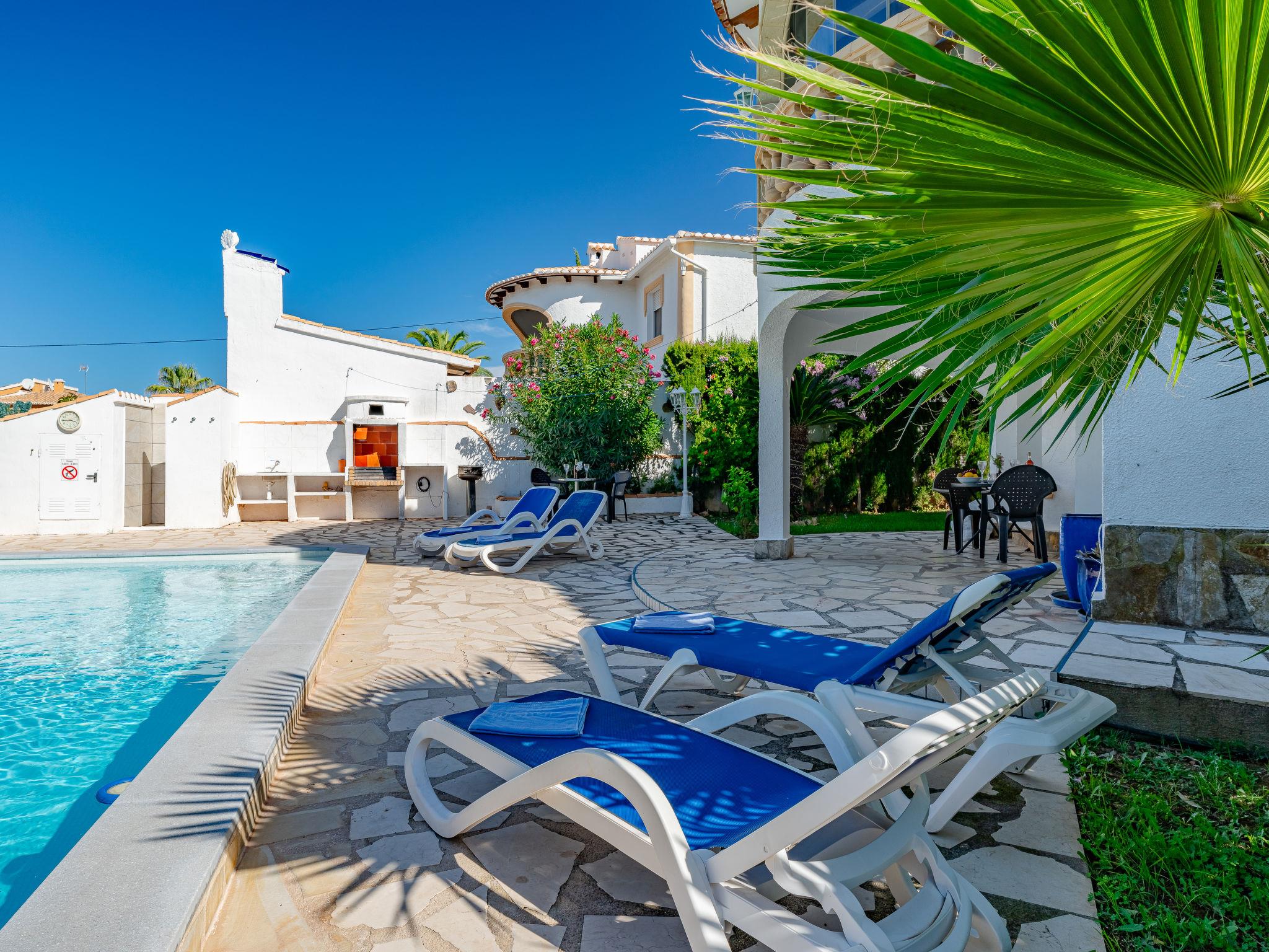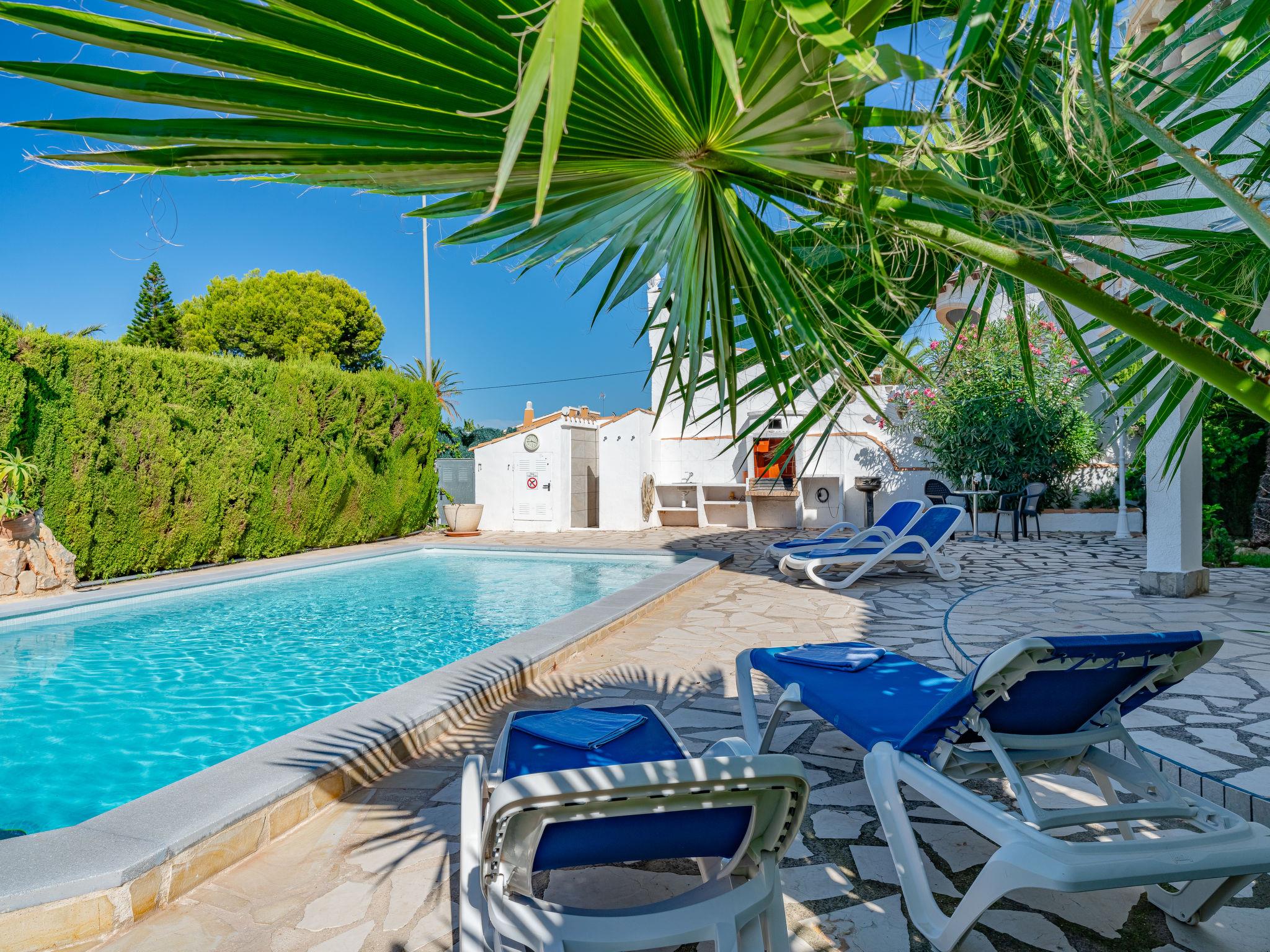 Beautiful, cosy house "Zauberfee". In the district of Montgo, in the resort 1.3 km from the centre of Denia, in a quiet, sunny position, 1.3 km from the sea, 1.3 km from the beach. Private: large, beautiful, well-kept garden with lawn, swimming pool angular (8 x 4 m, depth 100 - 200 cm, seasonal availability: 01.Jan. - 31.Dec.) with internal staircase. Outdoor shower, pergola, garden furniture, barbecue. Shop 1.1 km, supermarket 600 m, restaurant 1 km, bar 600 m, café 1 km, bus stop 1.5 km, railway station 1.8 km, sandy beach "Marineta Cassiana" 1.3 km. Sports harbour 1.3 km, surf school 1.3 km, sailing school 1.3 km, tennis 3 km. The owner does not accept any youth groups. Please note: 1st floor is closed and not occupied.