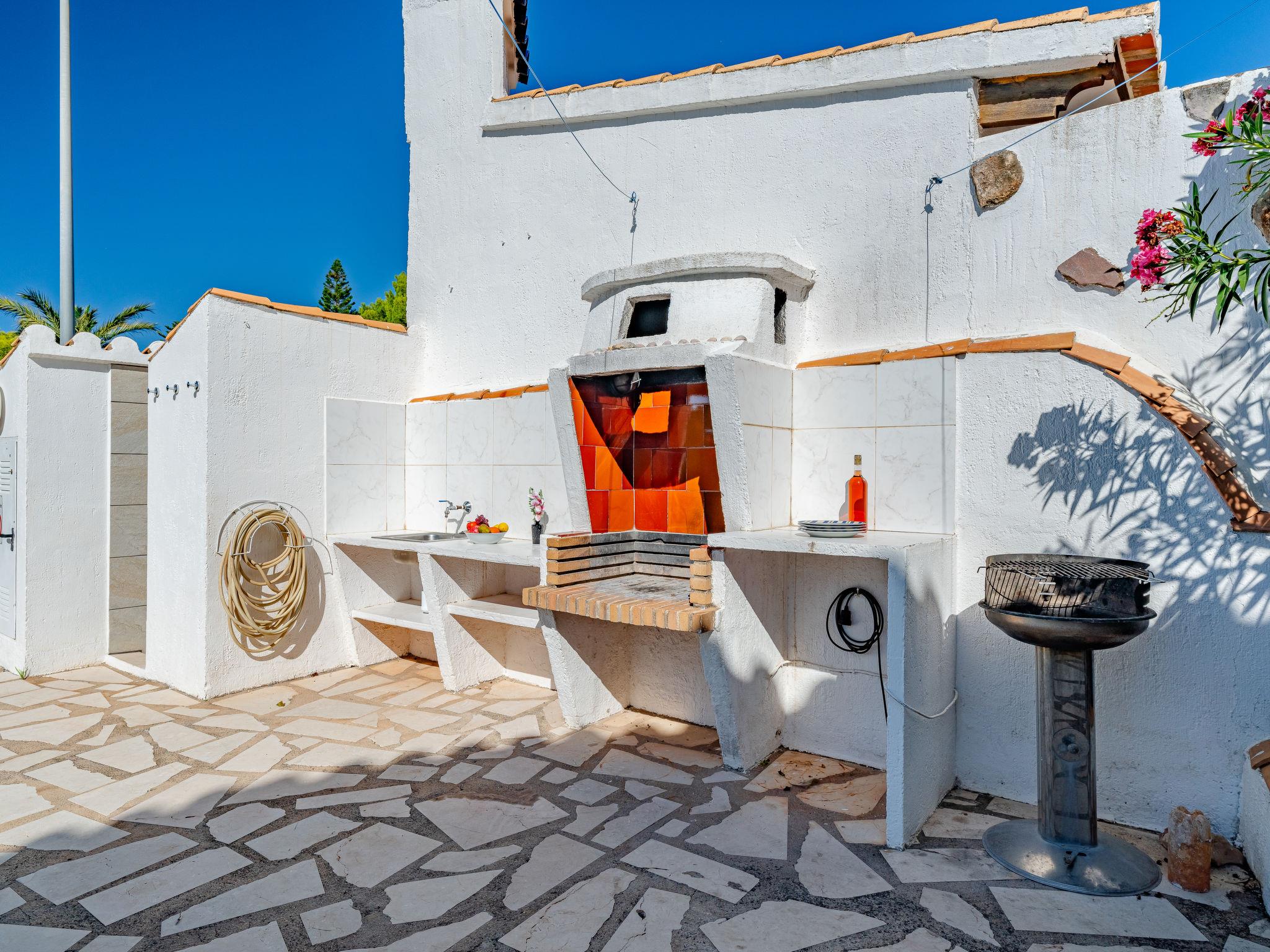 "Casa Zauberfee", 3-room house 80 m2. Spacious and bright, very comfortable furnishings: living/dining room with digital TV. Exit to the patio, to the swimming pool. 1 room with 1 double bed (2 x 90 cm, length 200 cm), fan. 1 room with 2 beds (90 cm, length 200 cm), fan. Kitchen (oven, dishwasher, 4 ceramic glass hob hotplates, toaster, kettle, microwave, freezer, electric coffee machine). Shower/bidet/WC. Electric heating. Large terrace, large garden, lawn. Terrace furniture, barbecue, deck chairs, covered balcony, sitting area. Facilities: washing machine, iron, hair dryer. Internet (WiFi, free). R0000001 // Reg. Nr.: ESFCNT00000305500050450500000000000000000000000000001