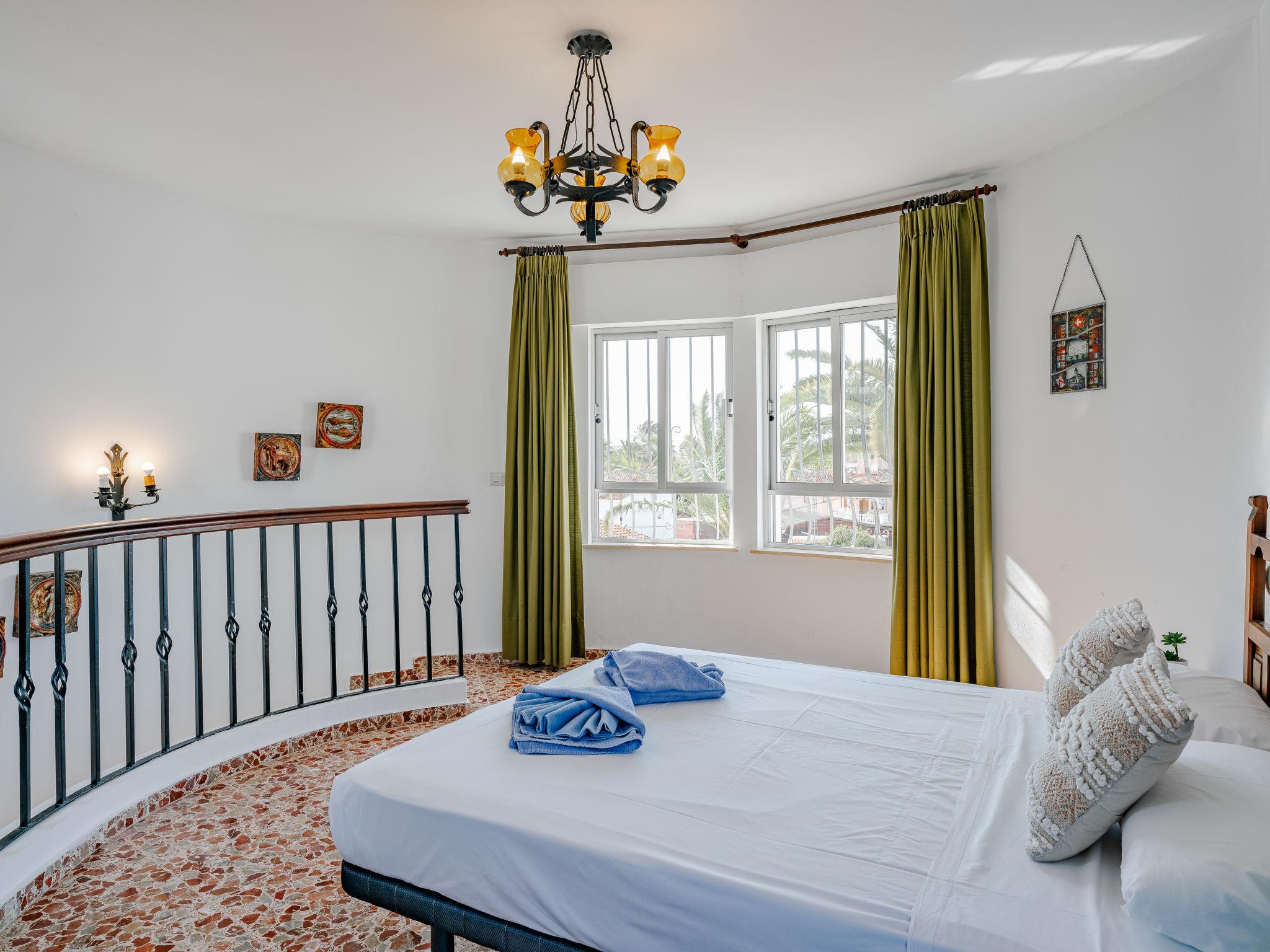 "Casa Pia", 4-room house 105 m2 on 2 levels. Simple furnishings: living/dining room with satellite TV, digital TV, air conditioning and forced-air heating. Exit to the garden, to the swimming pool, north facing position. 2 rooms, each room with 2 beds (90 cm, length 190 cm), air conditioning and forced-air heating. Open kitchen (oven, 4 ceramic glass hob hotplates, microwave, freezer). Shower/WC. Boiler (100 litres). Upper floor: gallery with 1 french bed (150 cm, length 190 cm), shower/WC, air conditioning and forced-air heating. Exit to the terrace. Terrace partly roofed, garden. Terrace furniture. Facilities: children's high chair, baby cot. Internet (WiFi, free). Parking. Instead of an enclosed bedroom, some sleeping areas are located in an open-plan area (gallery, alcove, etc.). CV-VUT0441833A // Reg. Nr.: ESFCTU00000305500028375200000000000000CV-VUT0441833A5