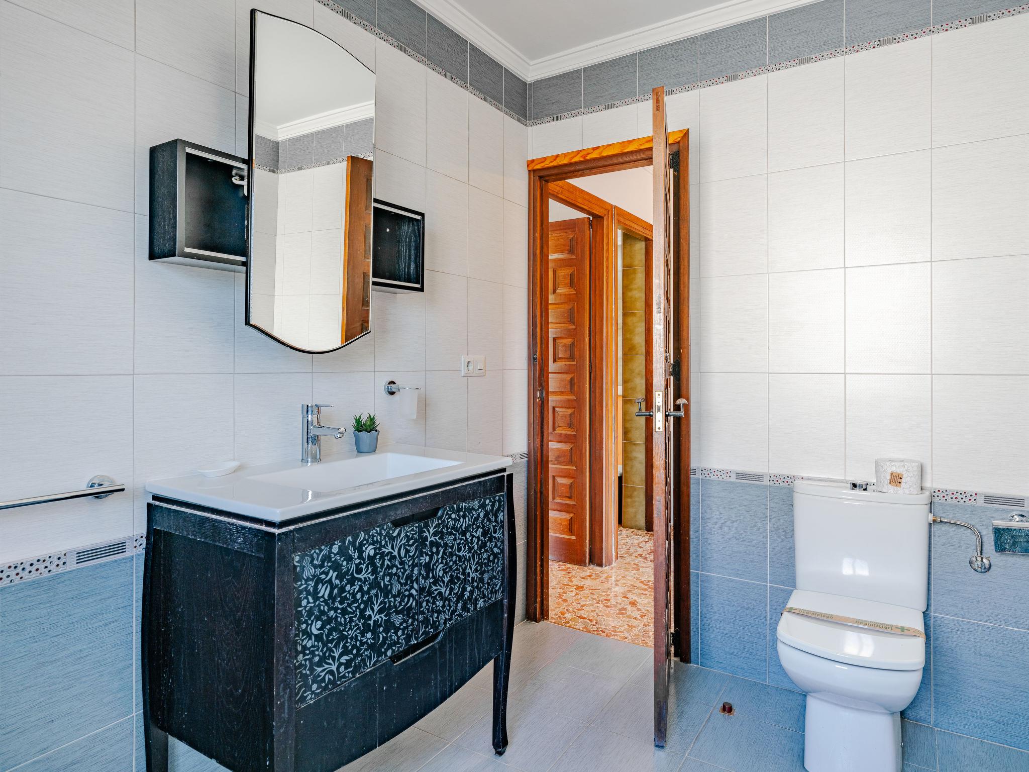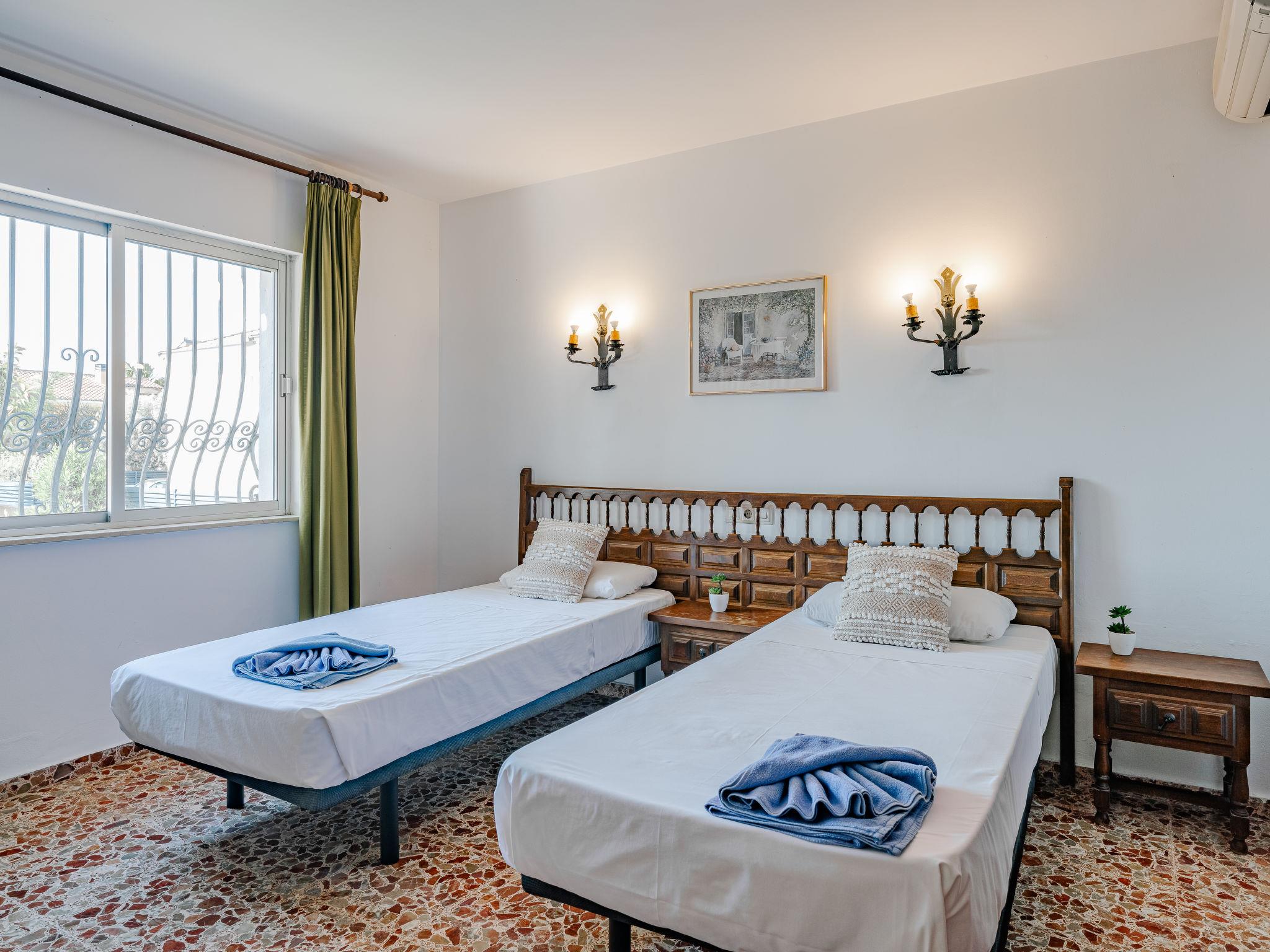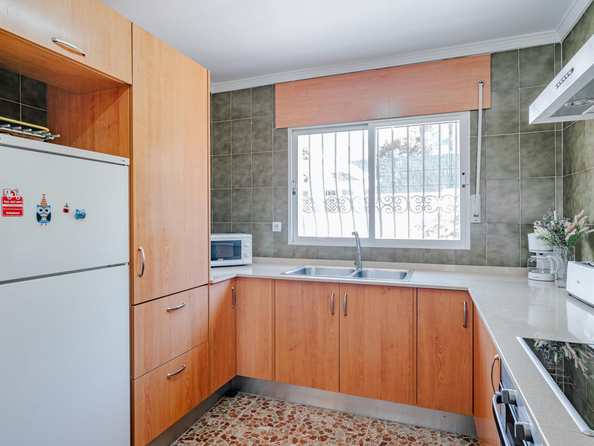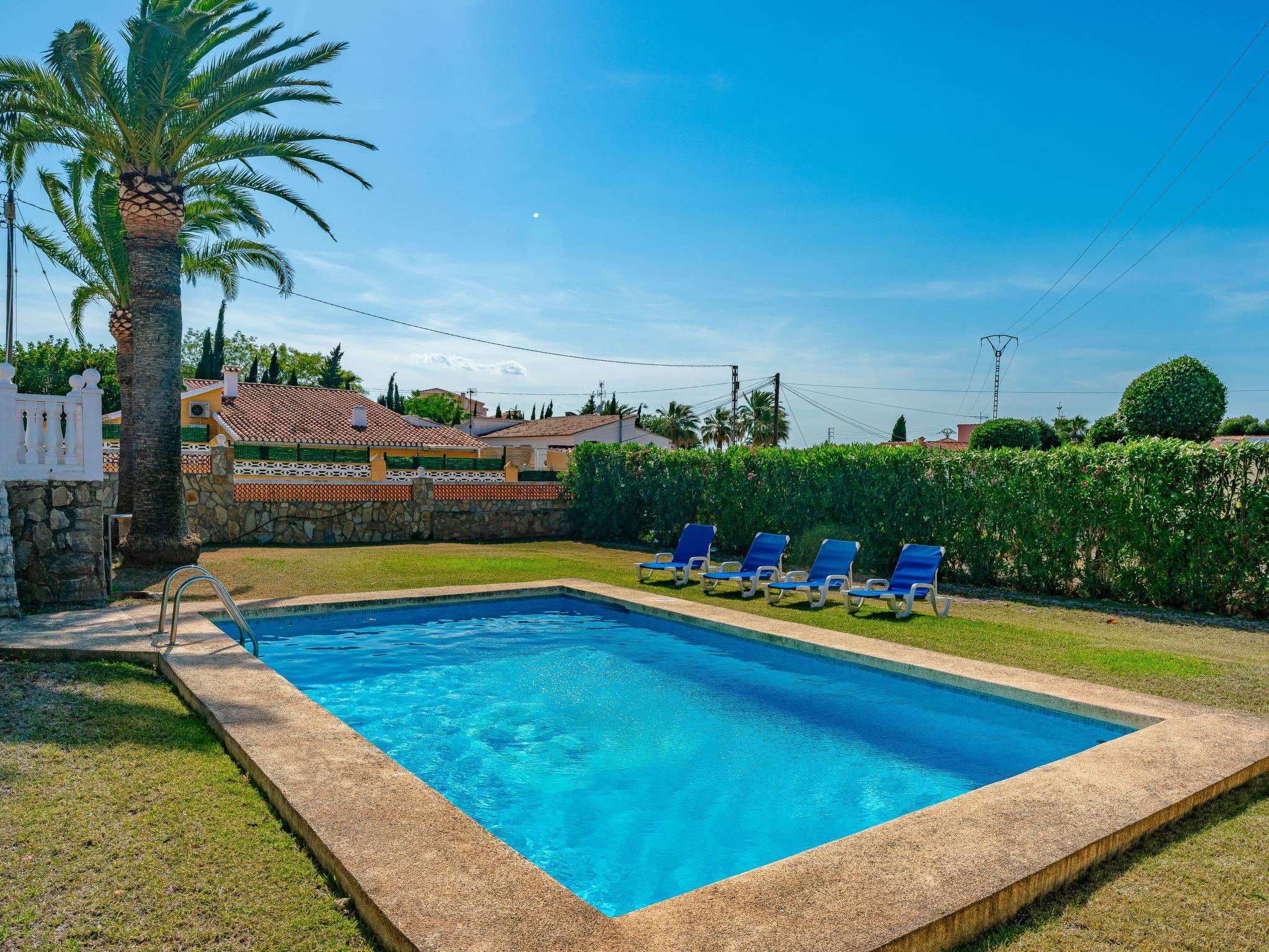 Alqueries 1 km from Dénia: Cosy house "Pia", 2 storeys. In the district of Alquería de Serra, Montgó, 2 km from the centre of Dénia, 3 km from the sea, 3 km from the beach, located by a road, north facing position. Private: garden (fenced) with lawn, swimming pool (4 x 7 m, seasonal availability: 01.Jan. - 31.Dec.). Terrace, garden furniture, barbecue. In the house: washing machine. Parking on the premises. Supermarket 1 km, restaurant 1.5 km, bar 1.5 km, café 1.5 km, bus stop 2 km, railway station 2 km, ferry 3.8 km, sandy beach 3 km. The owner does not accept any youth groups.
