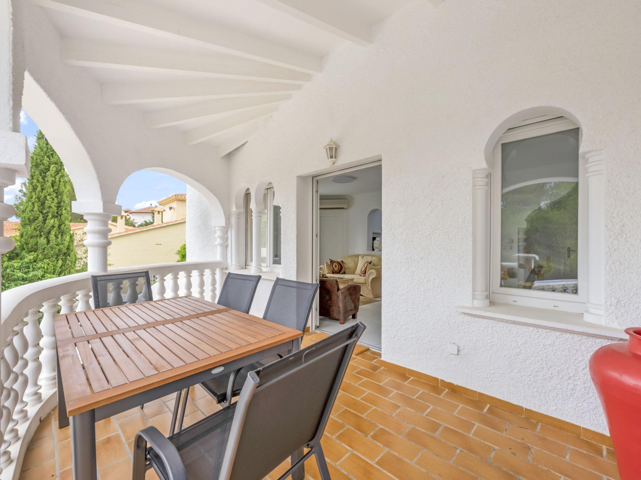 Very large, cosy, comfortable house "Marakesh". In the resort 4 km from the centre of Denia, in a quiet, sunny position, 4 km from the sea, 4 km from the beach. Private: natural state property, large, well-kept garden, swimming pool (8 x 4 m, depth 60 - 210 cm, seasonal availability: 01.Jan. - 31.Dec.). Outdoor shower, patio, pergola, parking on the premises. Supermarket 2.8 km, restaurant 2 km, bar 2 km, bus stop 2.6 km, railway station 2.8 km, ferry 6 km, sandy beach "Marineta Cassiana" 4 km. Sports harbour 4 km, surf school 4 km, sailing school 4 km, tennis 6 km. The owner does not accept any youth groups.