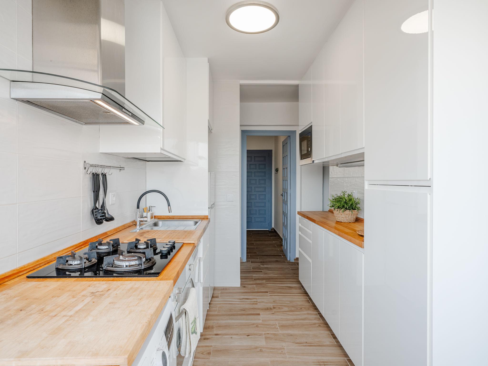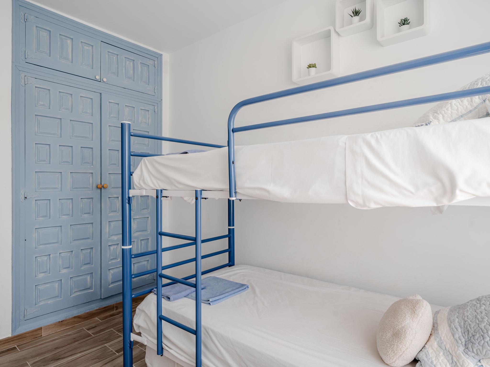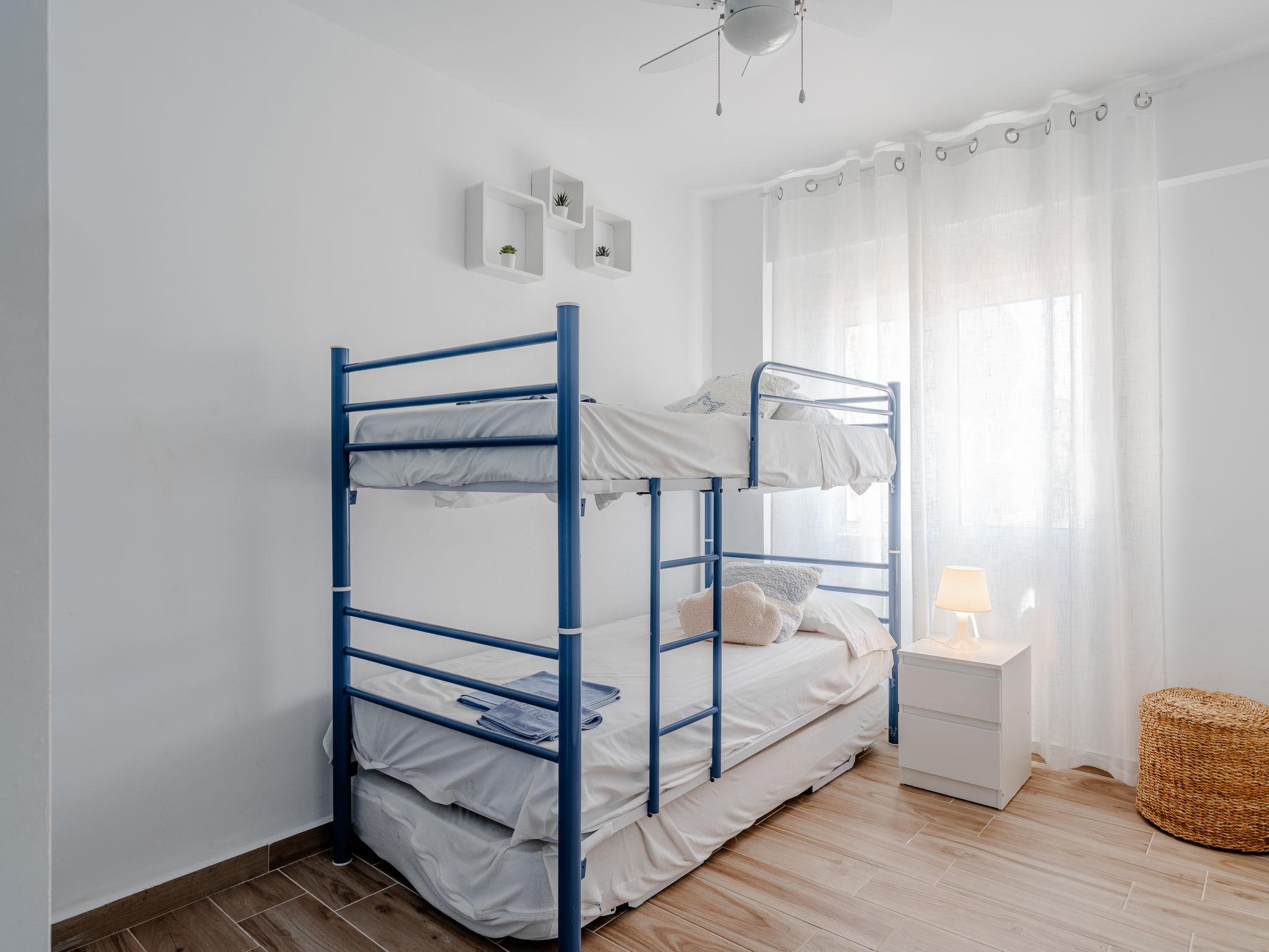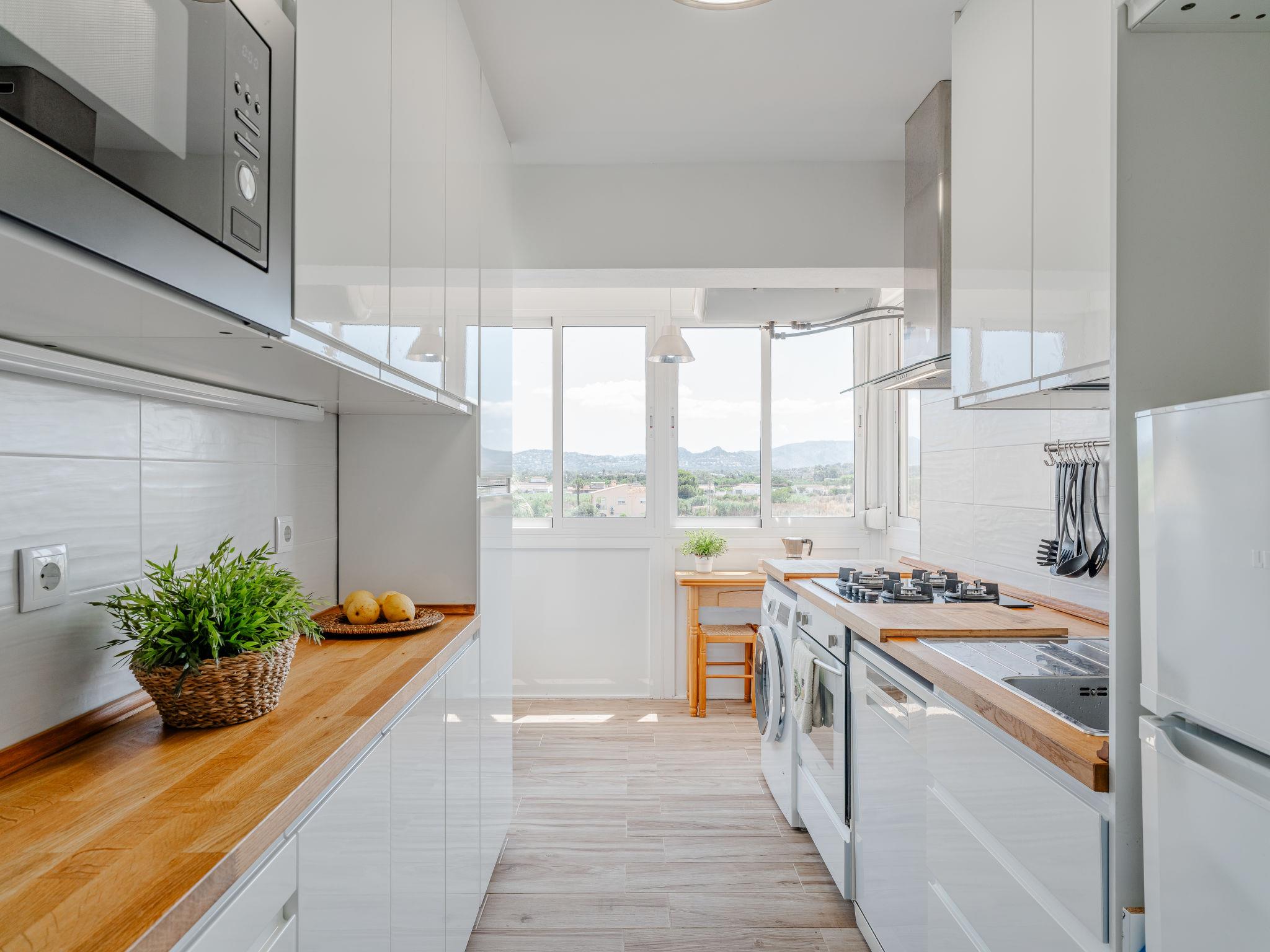 "Golden Park", 3-room apartment 60 m2. Spacious and bright, renovated, very beautiful and stylish furnishings: living/dining room with digital TV. Exit to the terrace. 1 room with 1 french bed (150 cm, length 200 cm), fan. 1 room with 1 x 2 bunk beds (80 cm, length 180 cm), fan. Kitchen (oven, dishwasher, 4 gas rings, toaster, microwave, freezer). Shower/bidet/WC. Large terrace. Terrace furniture. Beautiful view of the mountains and the swimming pool. Facilities: washing machine, iron, hair dryer. Parking. Please note: TV only ES. CV-VUT0494569-A // Reg. Nr.: ESFCTU0000030450002470070000000000000CV-VUT0494569-A2