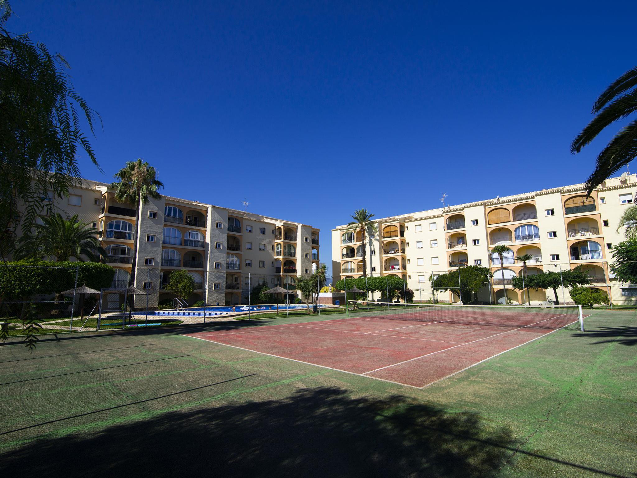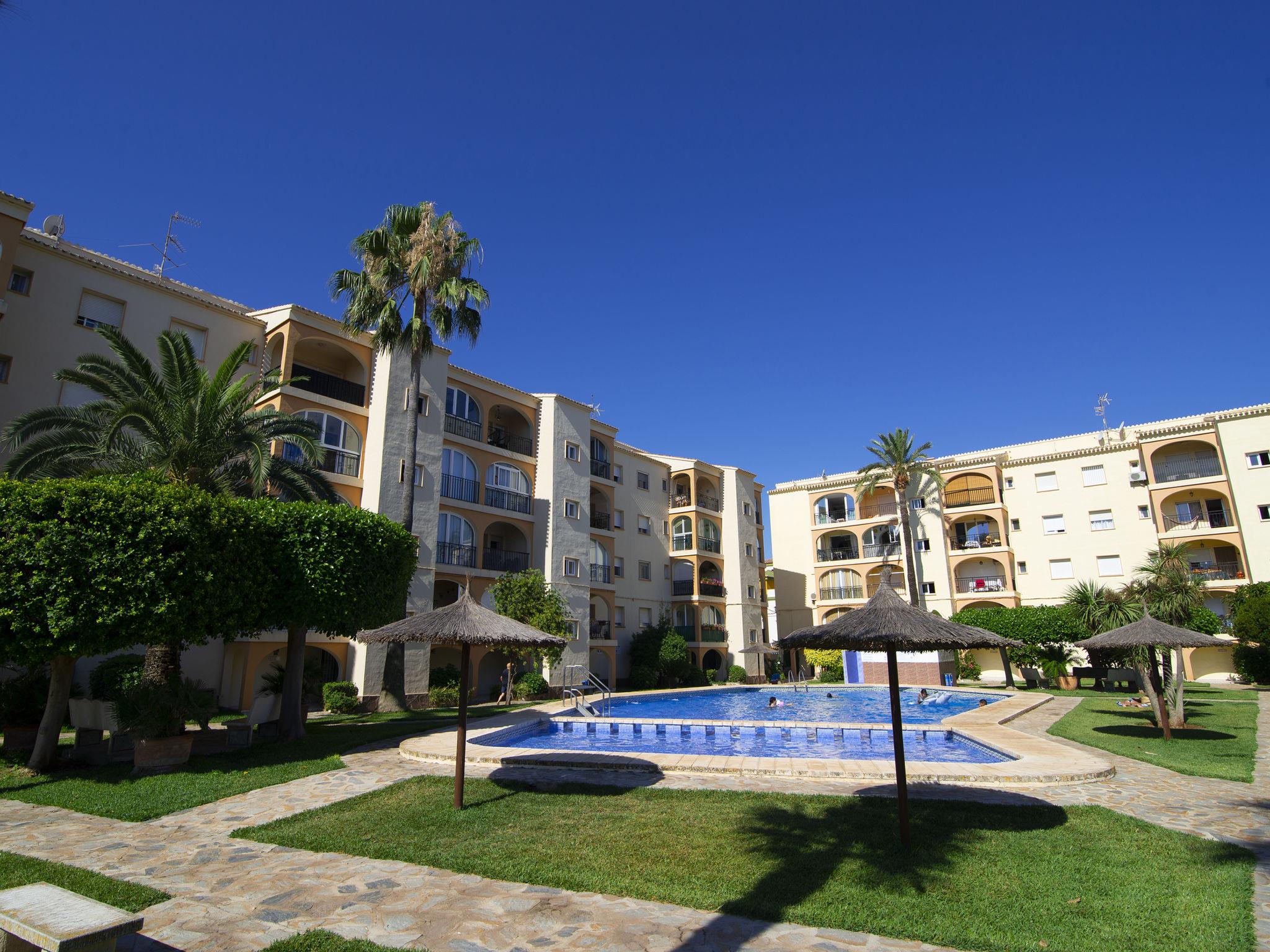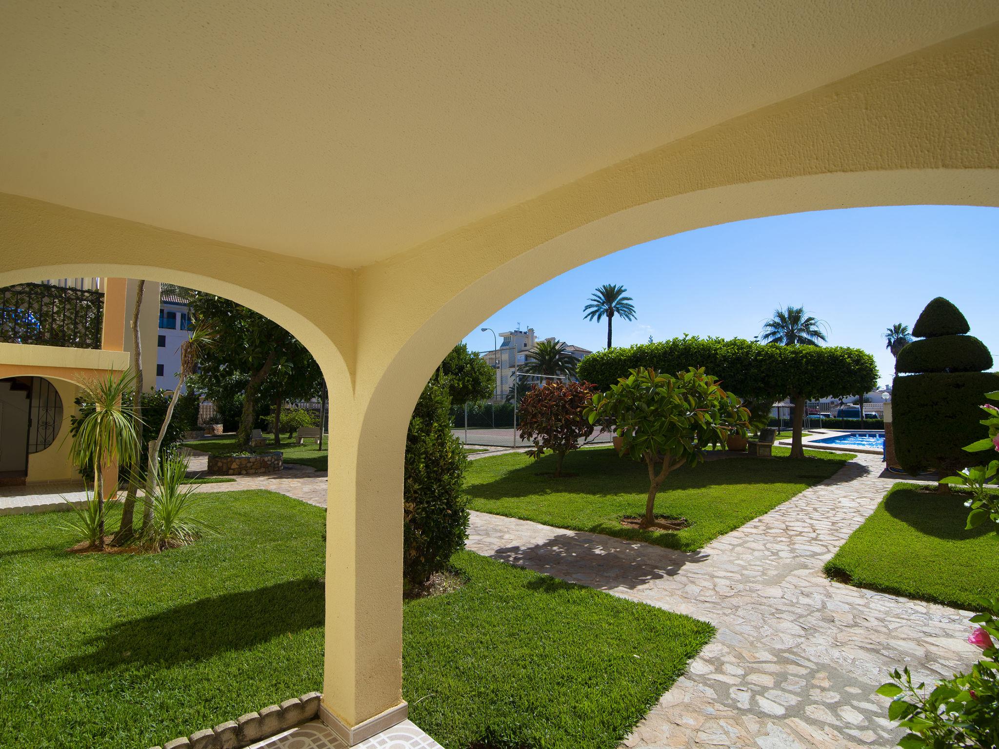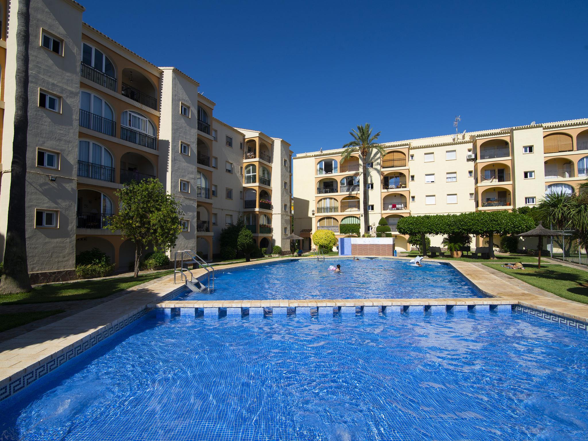 Very beautiful, comfortable apartment block "Golden Park", renovated. In the district of Les Marines KM 5, in a quiet, sunny position, 400 m from the sea, 400 m from the beach, road to cross. For shared use: large, beautiful garden, swimming pool (22 x 14 m, depth 40 - 210 cm, seasonal availability: 01.Jan. - 31.Dec.) with internal staircase. Unconventional pool shape. Children's pool, outdoor shower. Shop 280 m, supermarket 100 m, restaurant, bar, café 280 m, bus stop 50 m, railway station 6 km, sandy beach "Platja de les Bovetes" 400 m. Sports harbour 6 km, marina 6 km, tennis 3.7 km. The owner does not accept any youth groups.