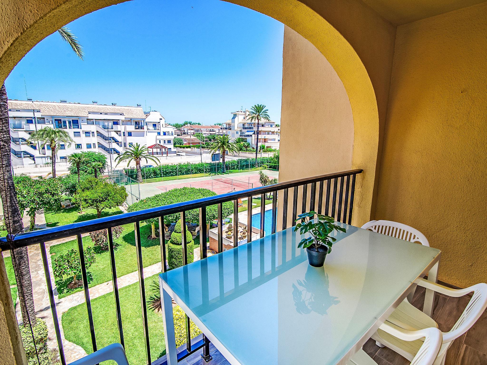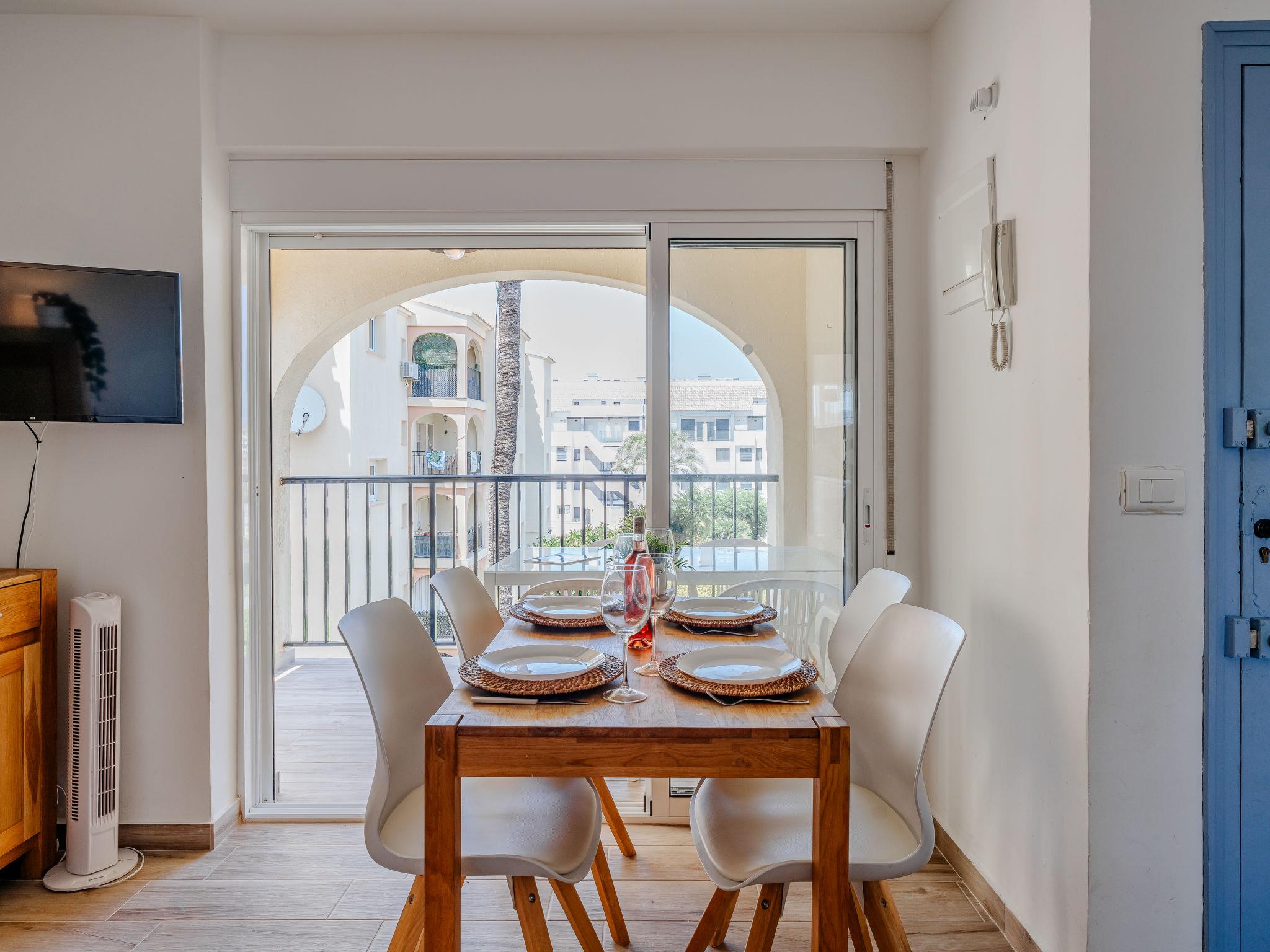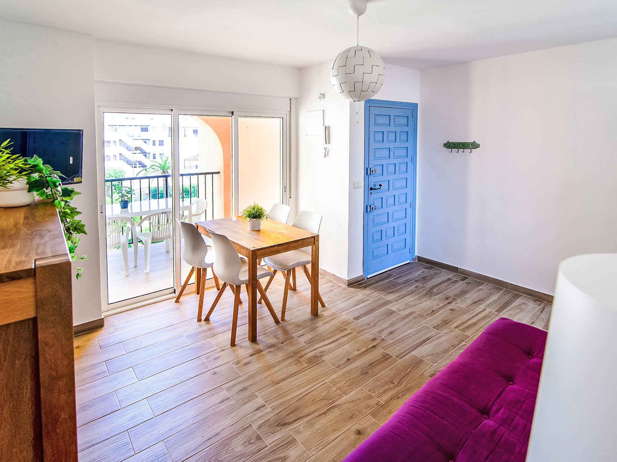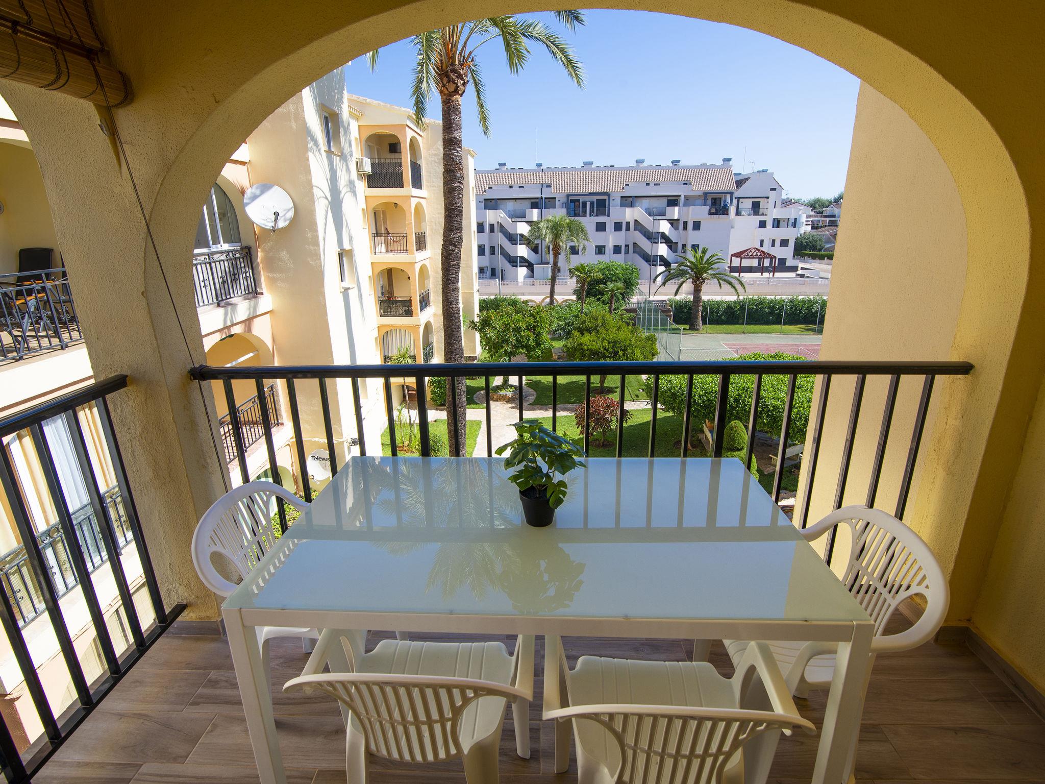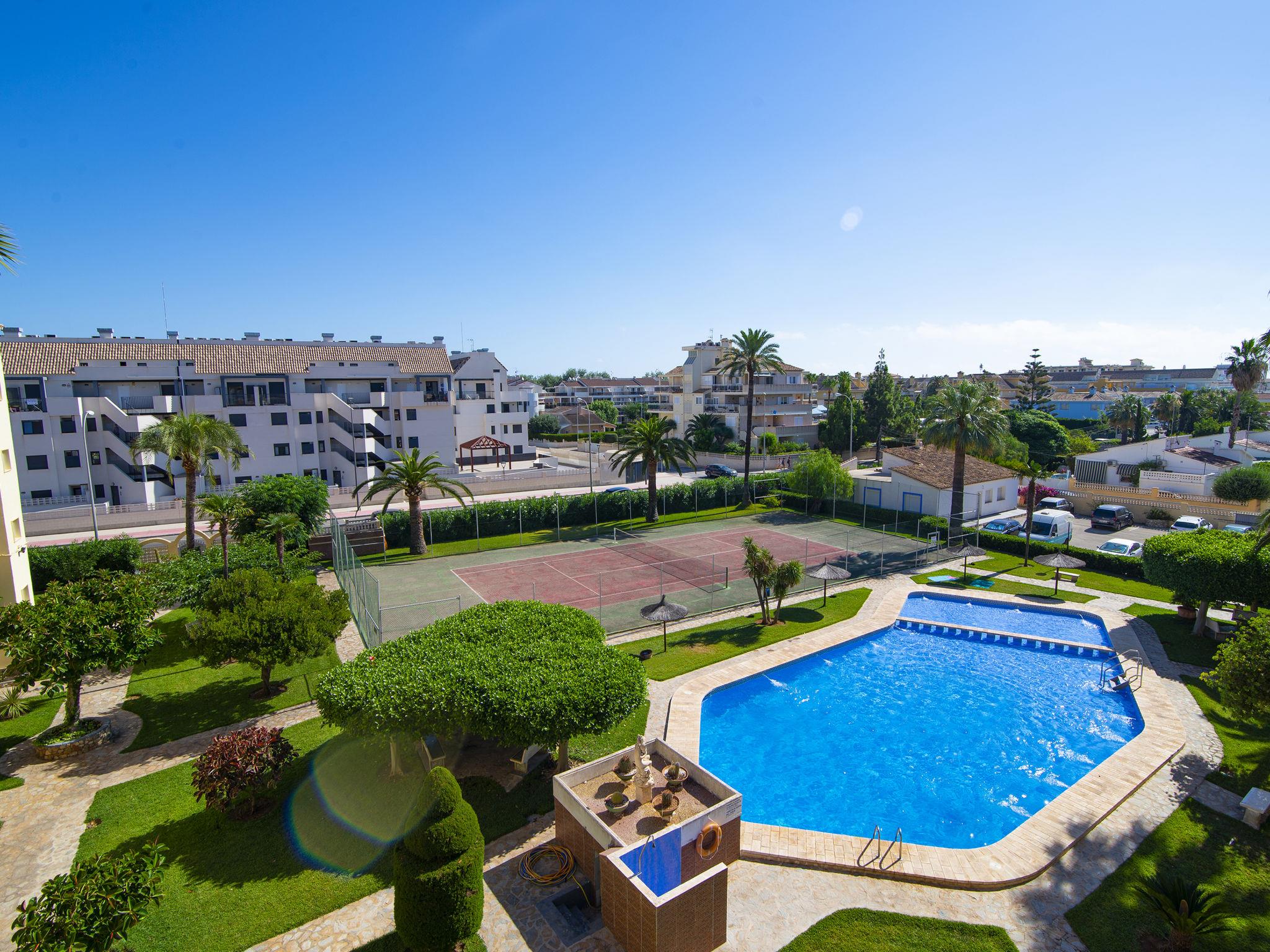 Very beautiful, comfortable apartment block "Golden Park", renovated. In the district of Les Marines KM 5, in a quiet, sunny position, 400 m from the sea, 400 m from the beach, road to cross. For shared use: large, beautiful garden, swimming pool (22 x 14 m, depth 40 - 210 cm, seasonal availability: 01.Jan. - 31.Dec.) with internal staircase. Unconventional pool shape. Children's pool, outdoor shower. Shop 280 m, supermarket 100 m, restaurant, bar, café 280 m, bus stop 50 m, railway station 6 km, sandy beach "Platja de les Bovetes" 400 m. Sports harbour 6 km, marina 6 km, tennis 3.7 km. The owner does not accept any youth groups.