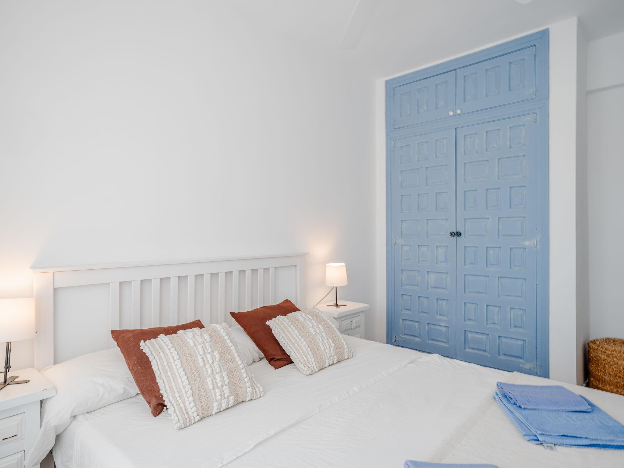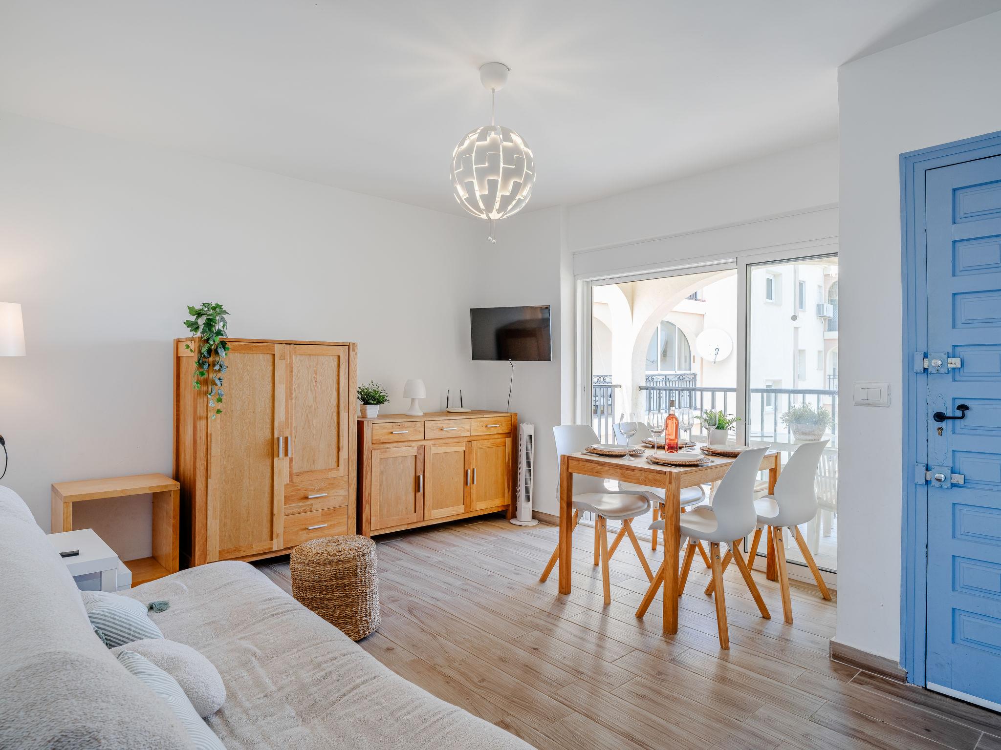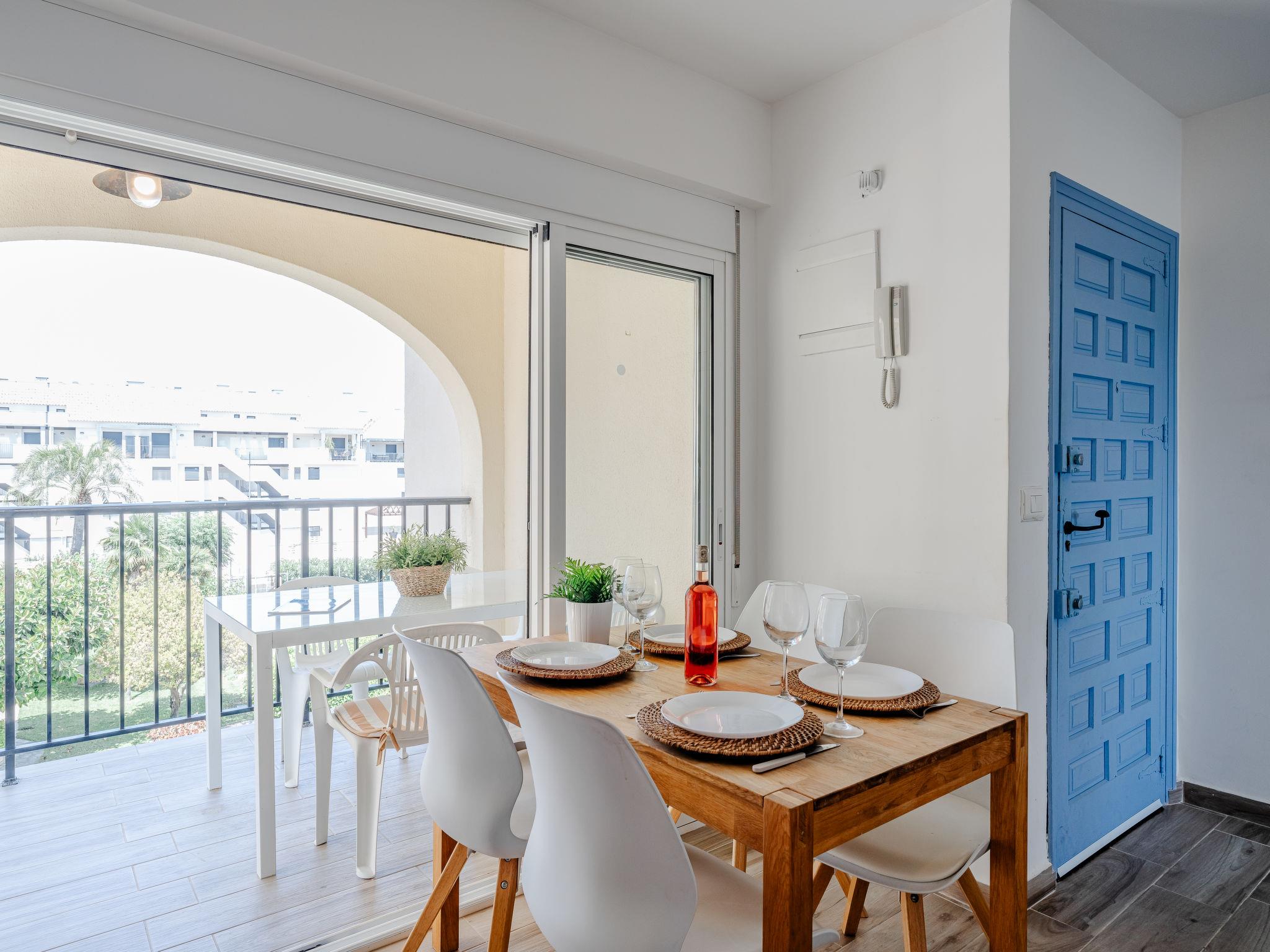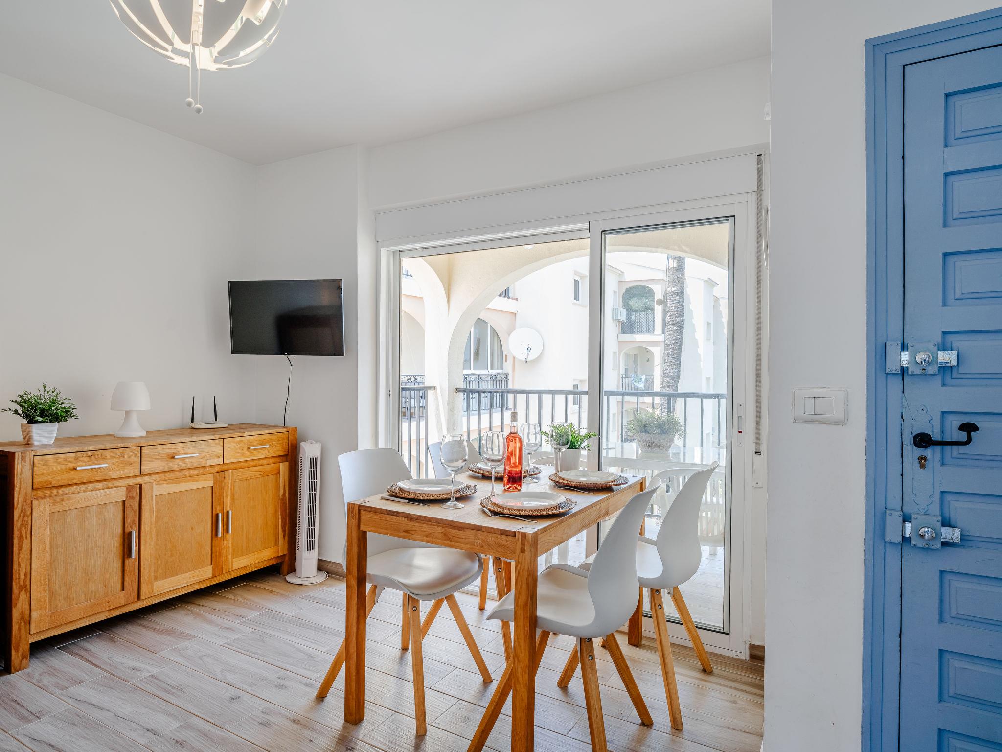 Very beautiful, comfortable apartment block "Golden Park", renovated. In the district of Les Marines KM 5, in a quiet, sunny position, 400 m from the sea, 400 m from the beach, road to cross. For shared use: large, beautiful garden, swimming pool (22 x 14 m, depth 40 - 210 cm, seasonal availability: 01.Jan. - 31.Dec.) with internal staircase. Unconventional pool shape. Children's pool, outdoor shower. Shop 280 m, supermarket 100 m, restaurant, bar, café 280 m, bus stop 50 m, railway station 6 km, sandy beach "Platja de les Bovetes" 400 m. Sports harbour 6 km, marina 6 km, tennis 3.7 km. The owner does not accept any youth groups.