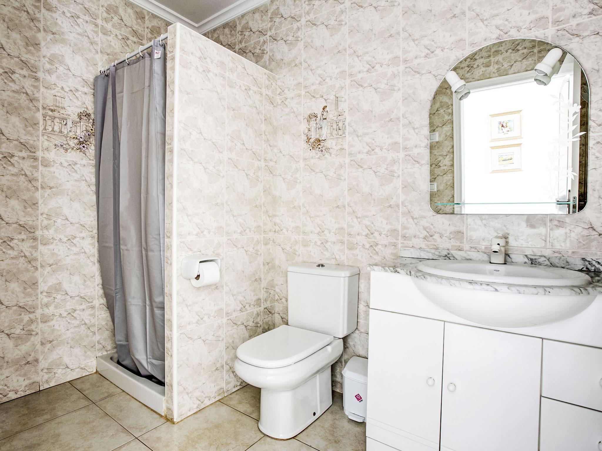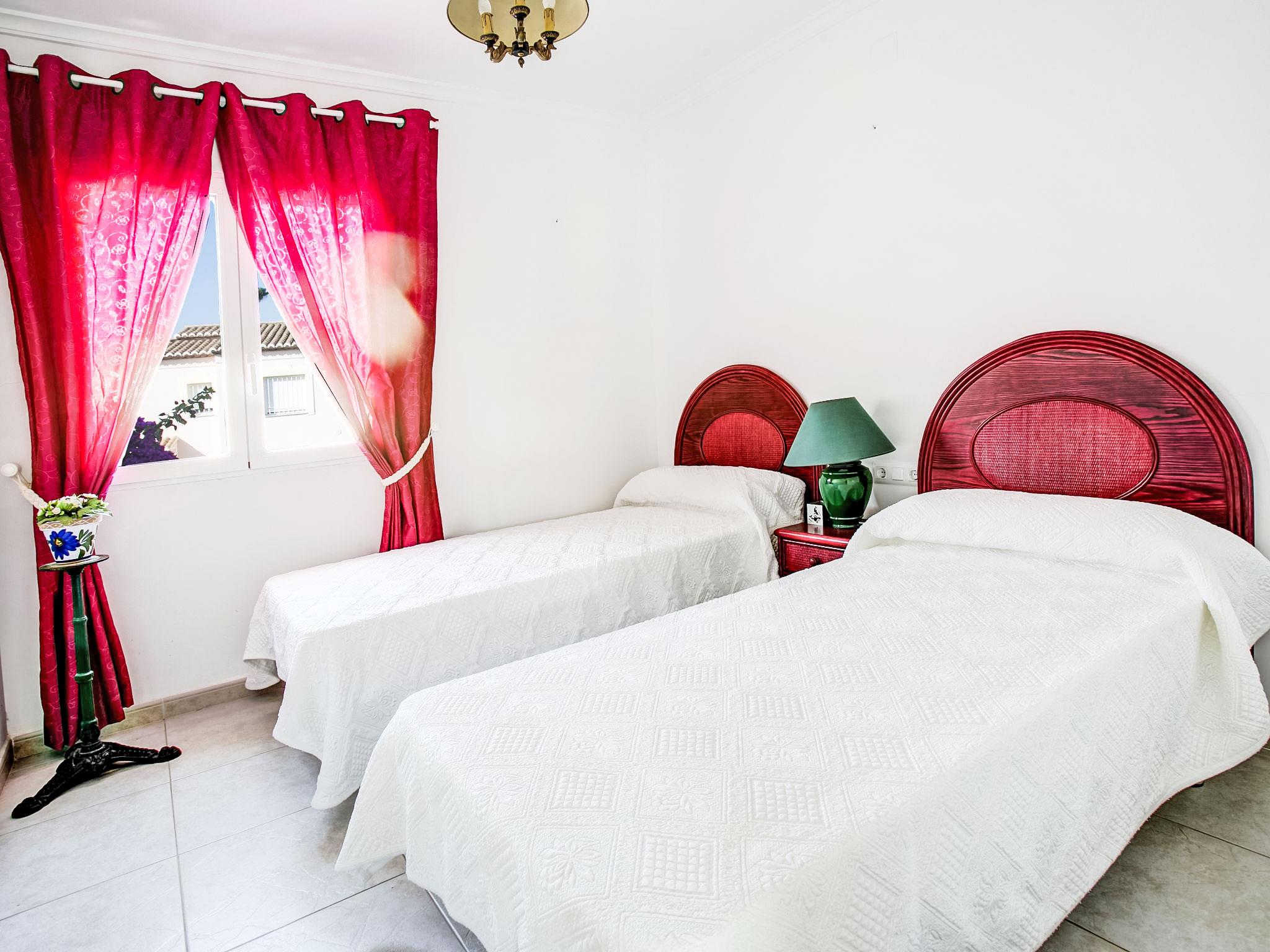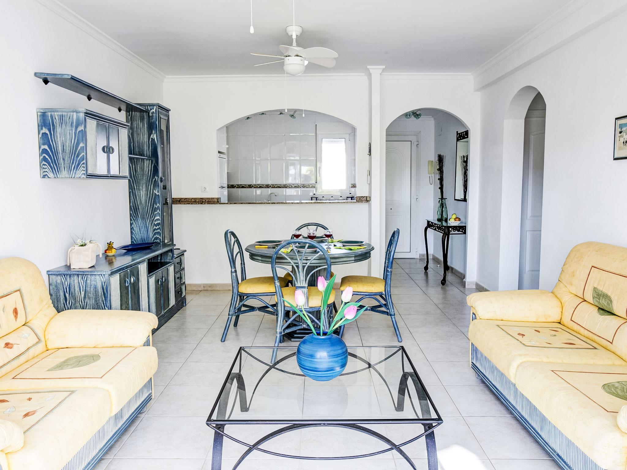 Beautiful, cosy apartment block "La Giralda". On the outskirts, 4 km from the centre of Dénia, in a quiet, sunny position, 800 m from the sea, 800 m from the beach. For shared use: well-kept garden (fenced) with lawn and flowers, swimming pool angular (15 x 8 m, depth 180 cm, seasonal availability: 01.Jan. - 31.Dec.). Children's pool, public car park. Shop, supermarket 300 m, restaurant 50 m, bus stop 900 m, railway station 5 km, ferry 4.8 km, sandy beach 800 m. Tennis 3 km. Please note: no lift. The owner does not accept any youth groups.