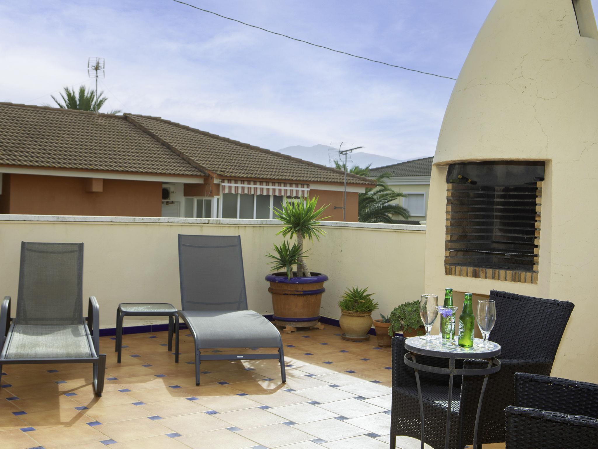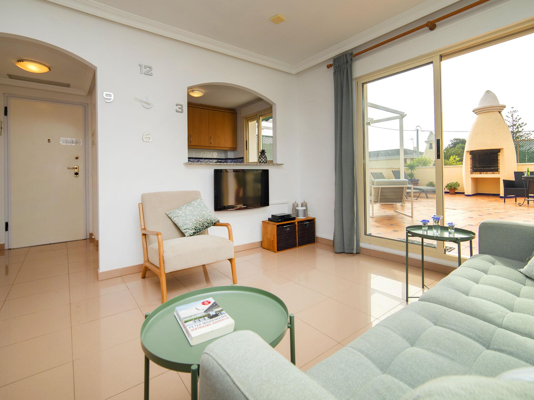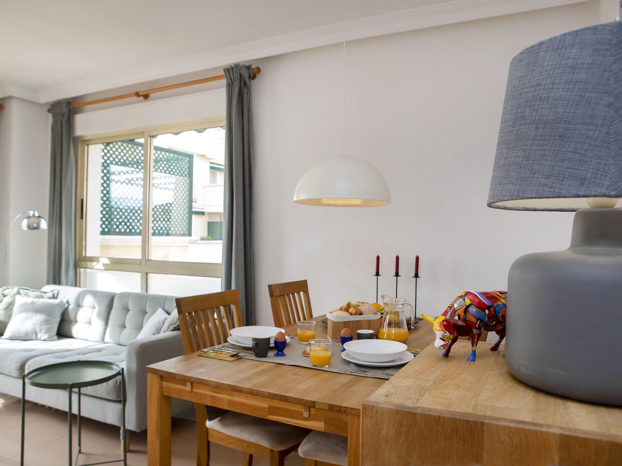 Cosy, comfortable apartment block "Medina del Sol I". 4.5 km from the centre of Denia, in a quiet position, 230 m from the sea, 230 m from the beach. For shared use: garden (fenced) with lawn and flowers, swimming pool (15 x 7 m, depth 110 - 210 cm, seasonal availability: 01.Jan. - 31.Dec.) with internal staircase. Children's pool, outdoor shower, public car park. Supermarket 150 m, restaurant, bar, café, bus stop, sandy beach 230 m. Sports harbour 4.5 km, tennis 3 km. The owner does not accept any youth groups.