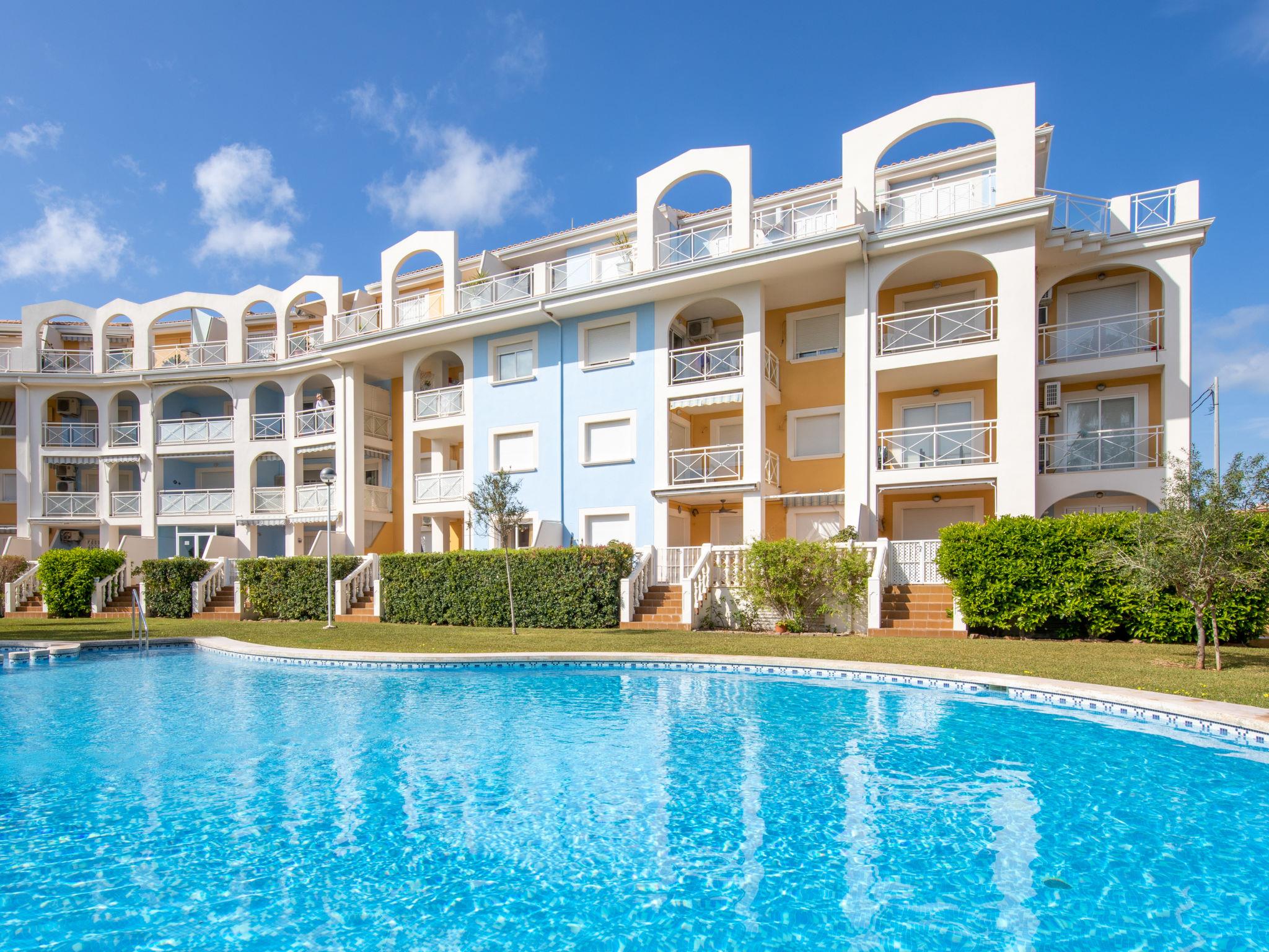 Cosy apartment block "Bahia Blanca", 3 storeys. In the district of Les Marinas, 4 km from the centre of Denia, 300 m from the sea, road to cross. For shared use: well-kept garden (fenced) with lawn, swimming pool (seasonal availability: 01.Jan. - 31.Dec.). Children's pool. In the house: lift. Parking. Supermarket 1 km, restaurant 200 m, bar, bus stop 20 m, sandy beach 200 m. The owner does not accept any youth groups.