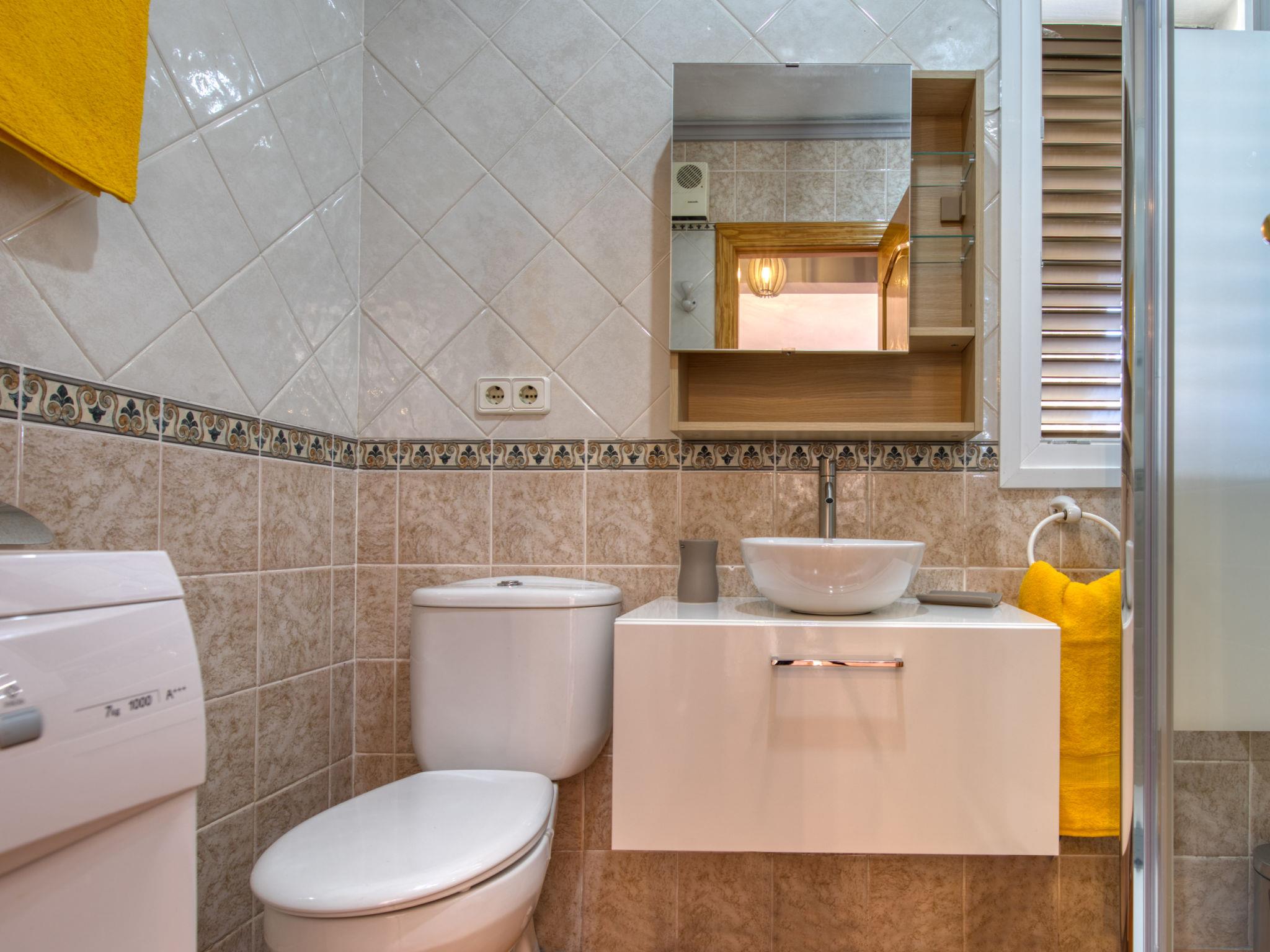 "La Felicidad", 3-room apartment 65 m2, on the ground floor. Beautiful and cosy furnishings: living/dining room with satellite TV, air conditioning and forced-air heating. Exit to the balcony. 1 room with 1 french bed (140 cm, length 190 cm), electric heater. 1 room with 1 pull-out bed (2 pers. 2 x 80 cm, length 200 cm), electric heater. Open kitchen (4 hot plates, oven, dishwasher, kettle, microwave, freezer, electric coffee machine). Shower/WC. Balcony furniture. Facilities: washing machine, baby cot. Internet (WiFi, free). Parking. VT-493350-A // Reg. Nr.: ESFCTU00000304500021654600000000000000000VT-493350-A1