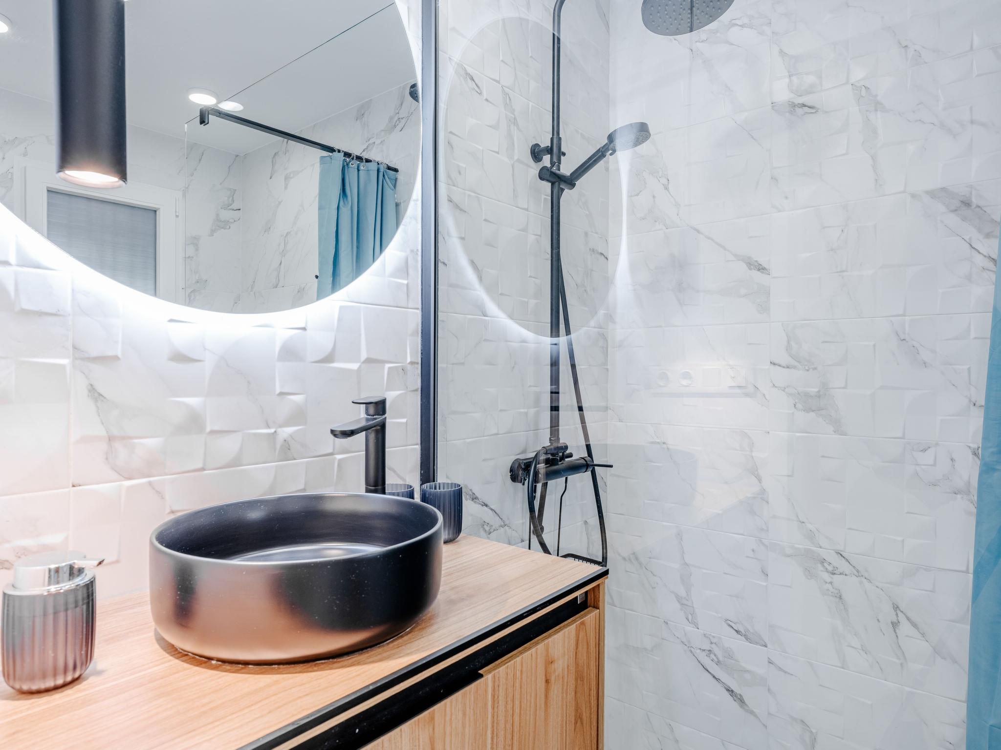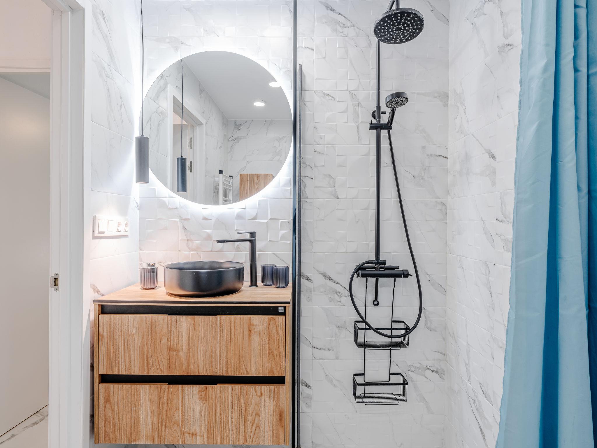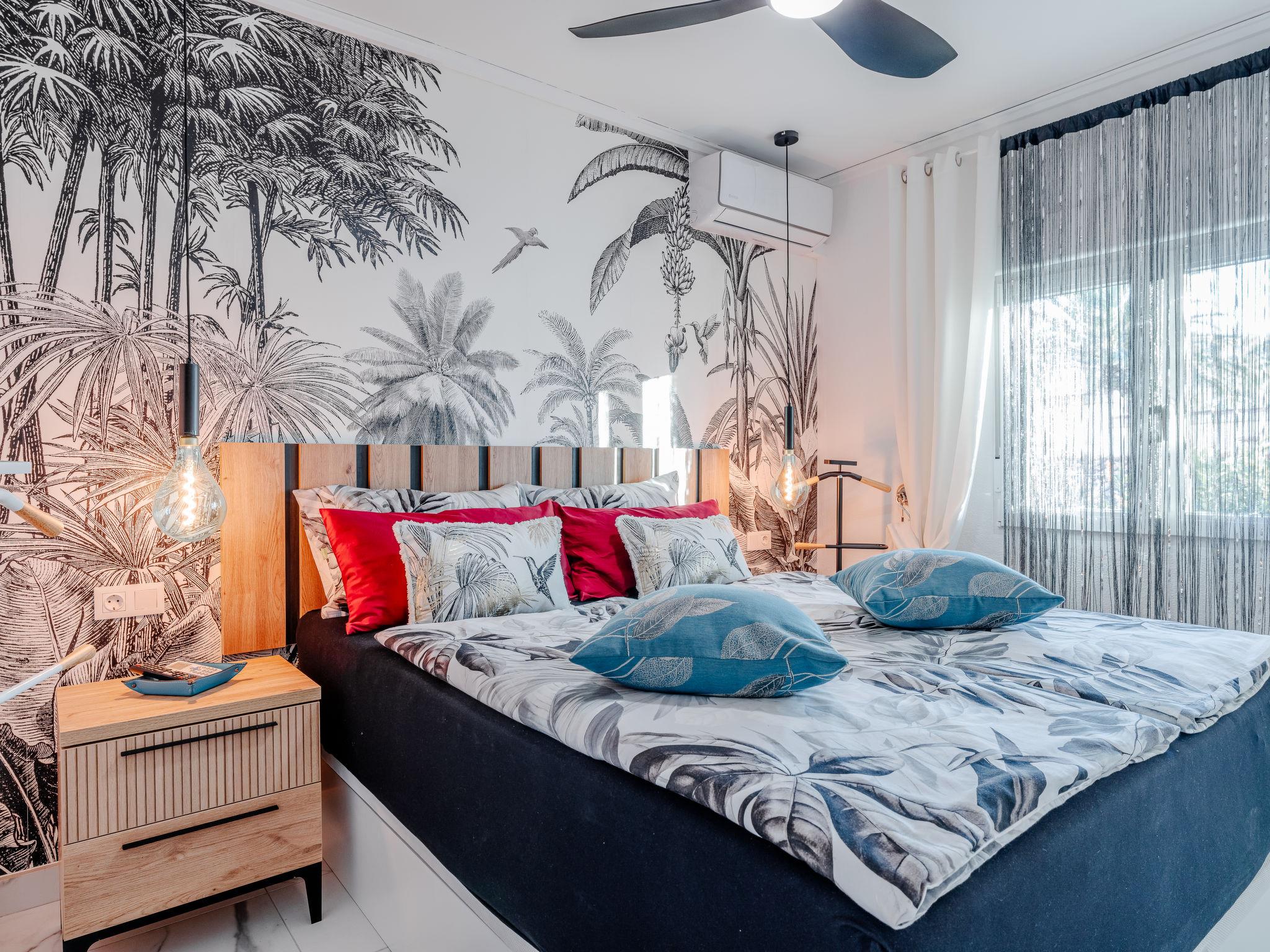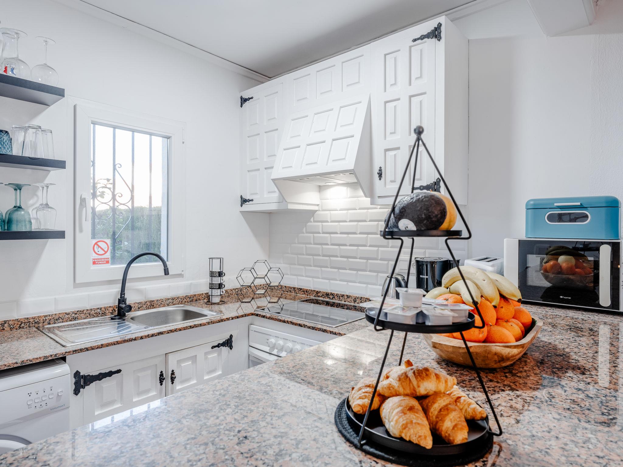 "Residencia La Perla", 4-room terraced house 80 m2 on 2 levels. Object suitable for 4 adults + 2 children. Spacious and bright, very beautiful and stylish furnishings: living/dining room with satellite TV, air conditioning, fan and forced-air heating. Exit to the terrace. Open kitchen (oven, 4 ceramic glass hob hotplates, toaster, kettle, microwave, freezer, electric coffee machine). Sep. WC. Upper floor: 1 room with 1 french bed (150 cm, length 200 cm), satellite TV, air conditioning, fan and forced-air heating. 1 room with 1 double bed (2 x 90 cm, length 190 cm), air conditioning, fan and forced-air heating. 1 room with 1 x 2 bunk beds (80 cm, length 190 cm), fan. Shower/WC. 2 large terraces. Terrace furniture, sitting area. Facilities: washing machine, iron, hair dryer. Internet (WiFi, free). VT-501040-A // Reg. Nr.: ESFCTU00000304500031048000000000000000000VT-501040-A1