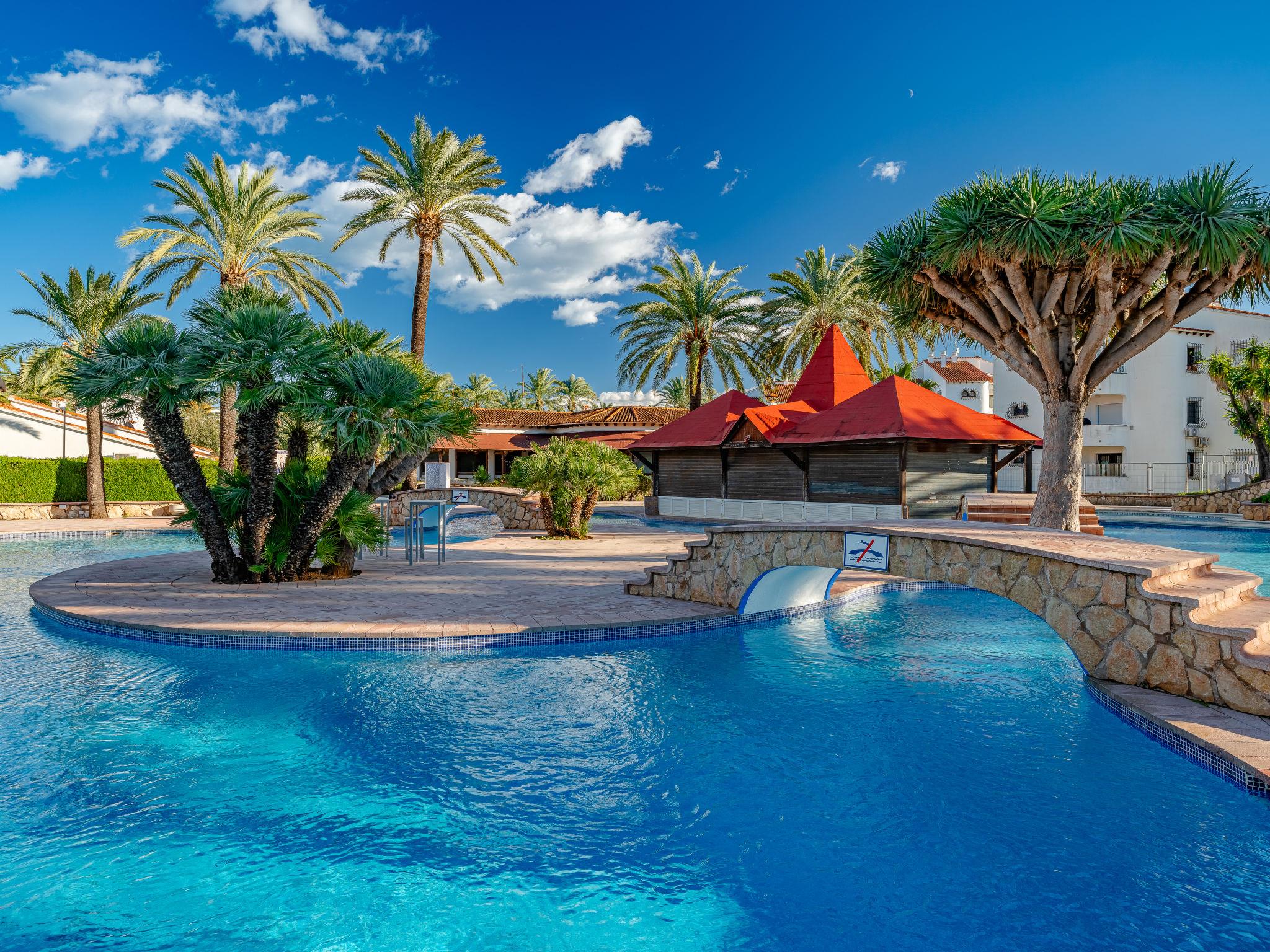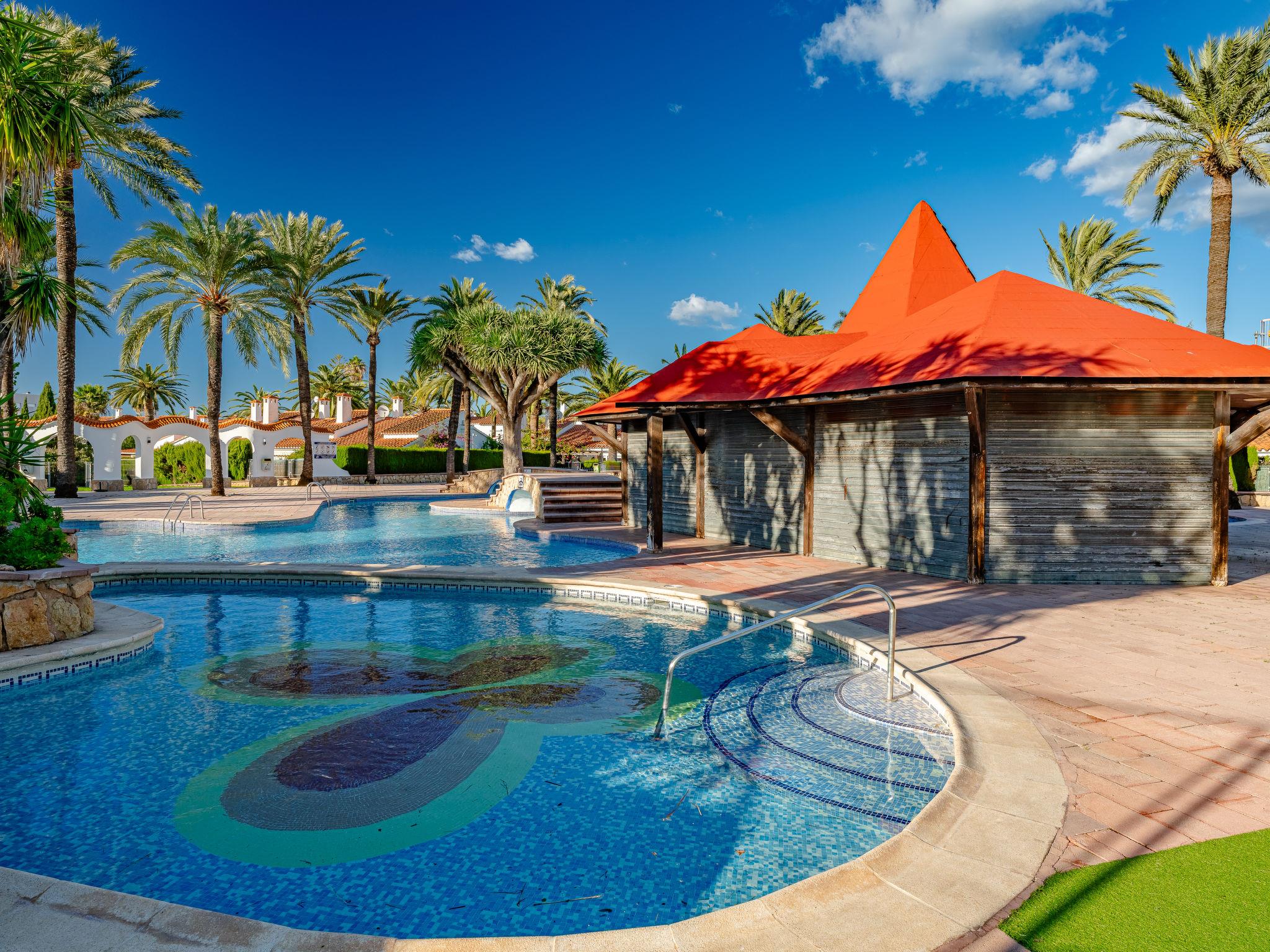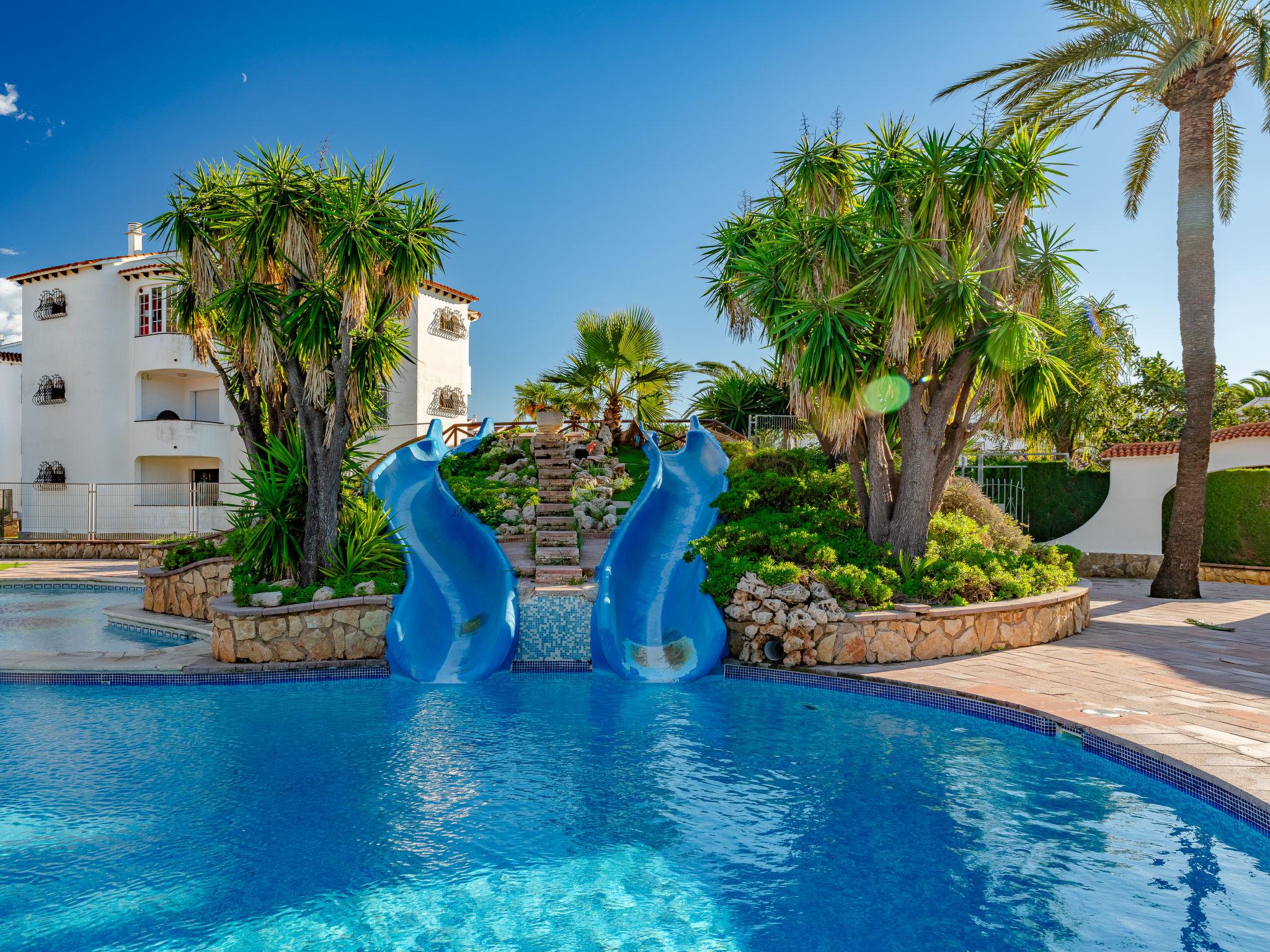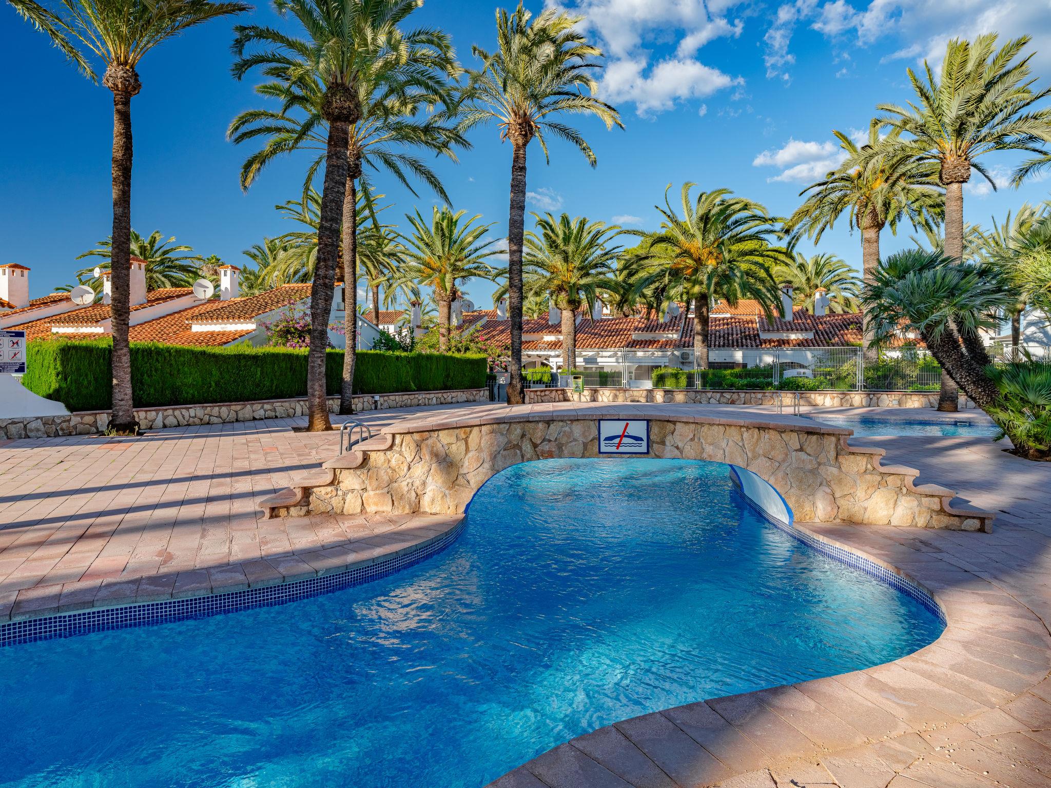 Very beautiful, cosy, very comfortable terraced house "Residencia La Perla". In the resort 4 km from the centre of Dénia, from the sea, 700 m from the beach. For shared use: 2 swimming pools (seasonal availability: 01.Jan. - 31.Dec.) with internal staircase. Unconventional pool shape. Children's pool, slide, outdoor shower, children's playground. Private: property with lawn, parking at the house. Shop 300 m, supermarket 900 m, restaurant 400 m, bar 450 m, bus stop 800 m, railway station 6 km, ferry 6 km, sandy beach "Playa de les Bovetes" 700 m. Sports harbour 4.5 km, marina 4.5 km, sailing school 700 m. The owner does not accept any youth groups.
