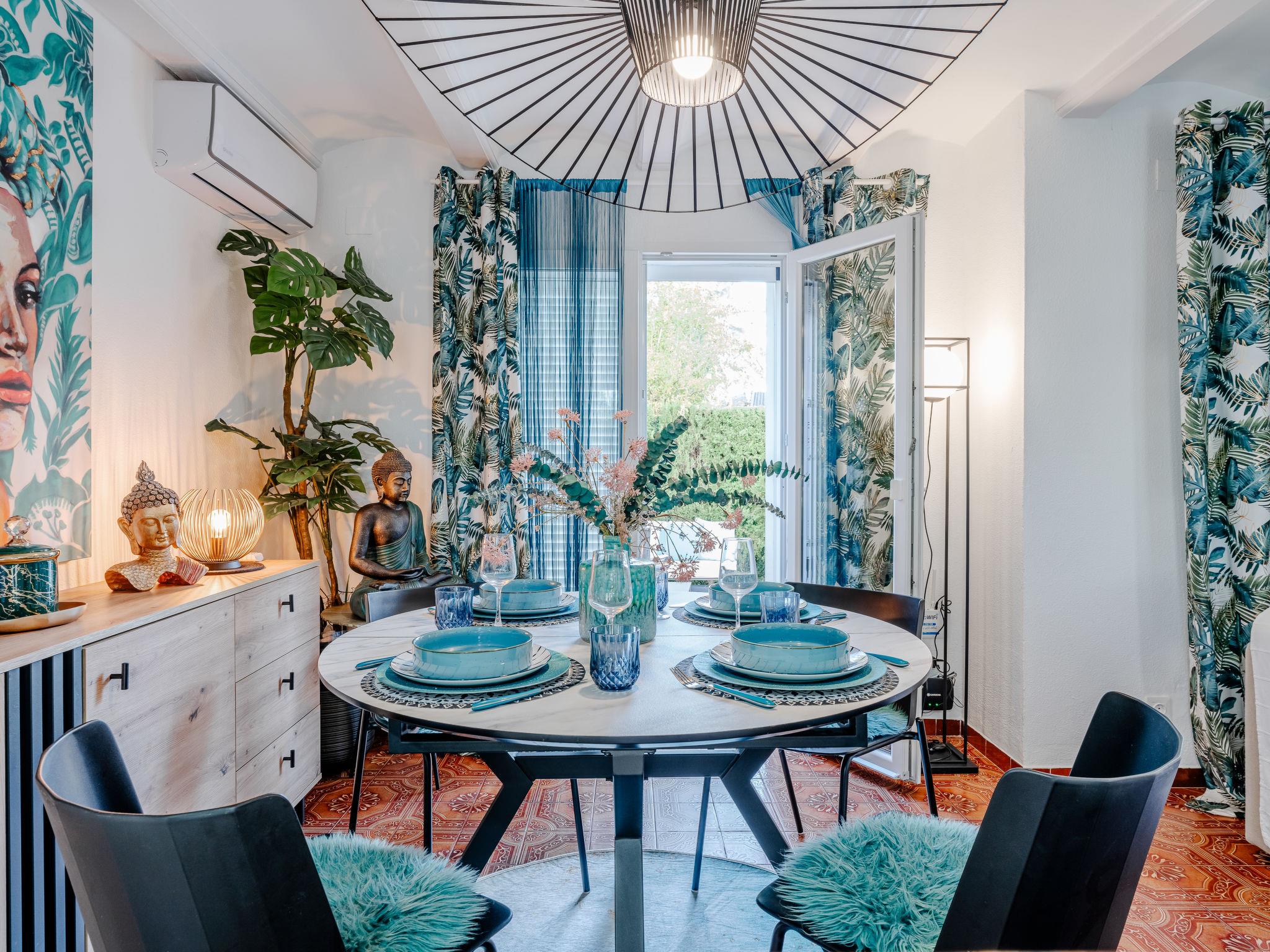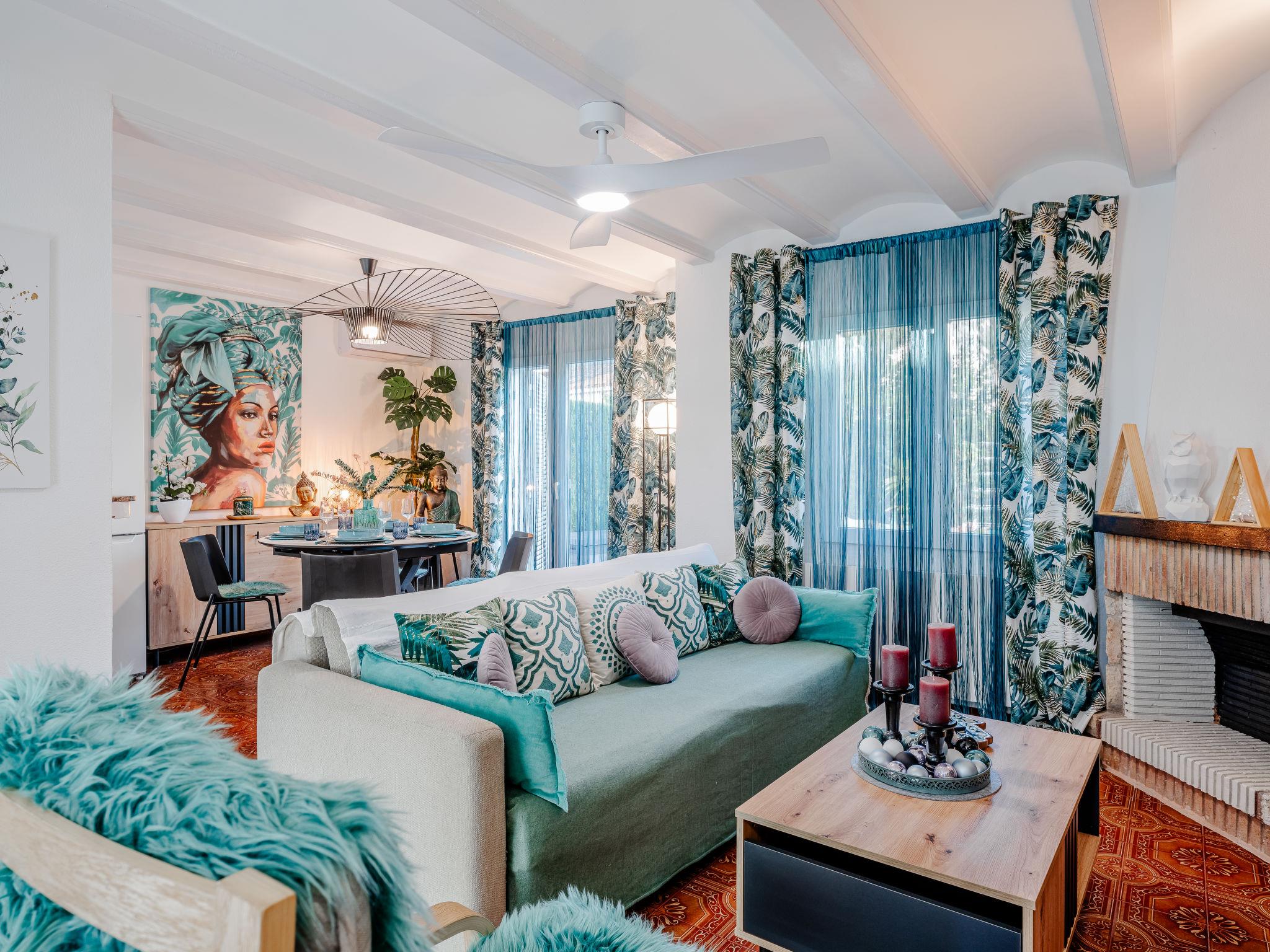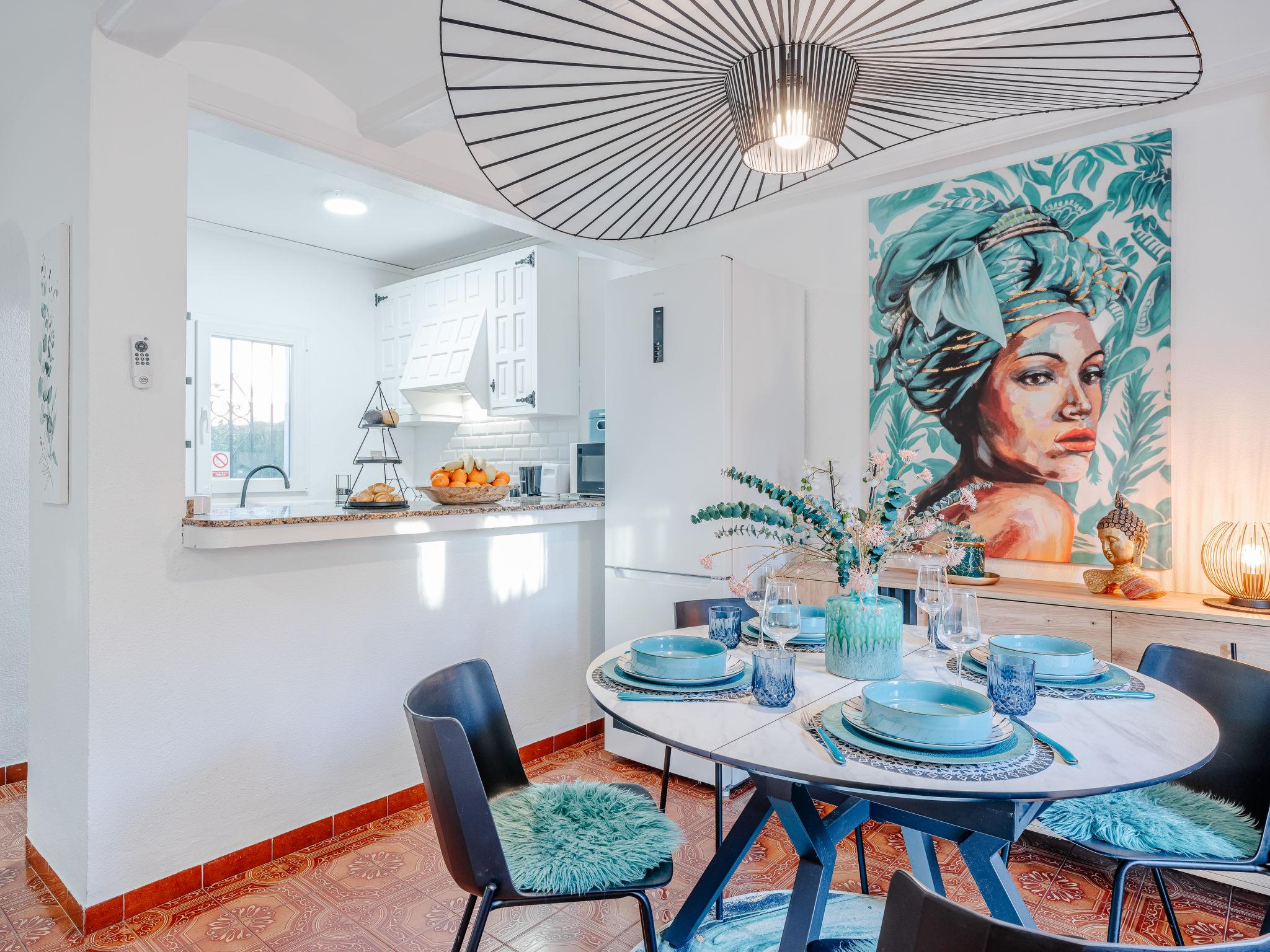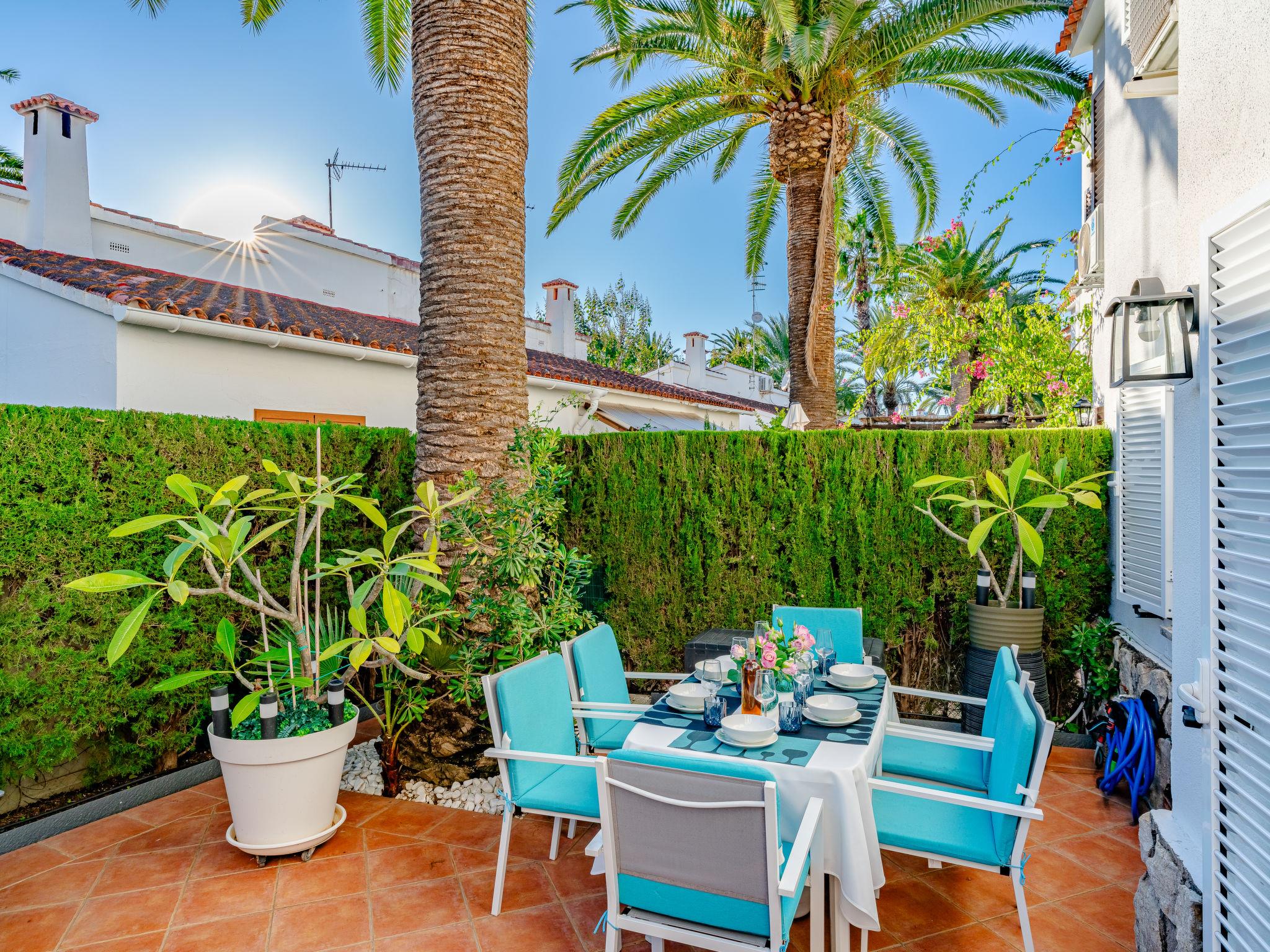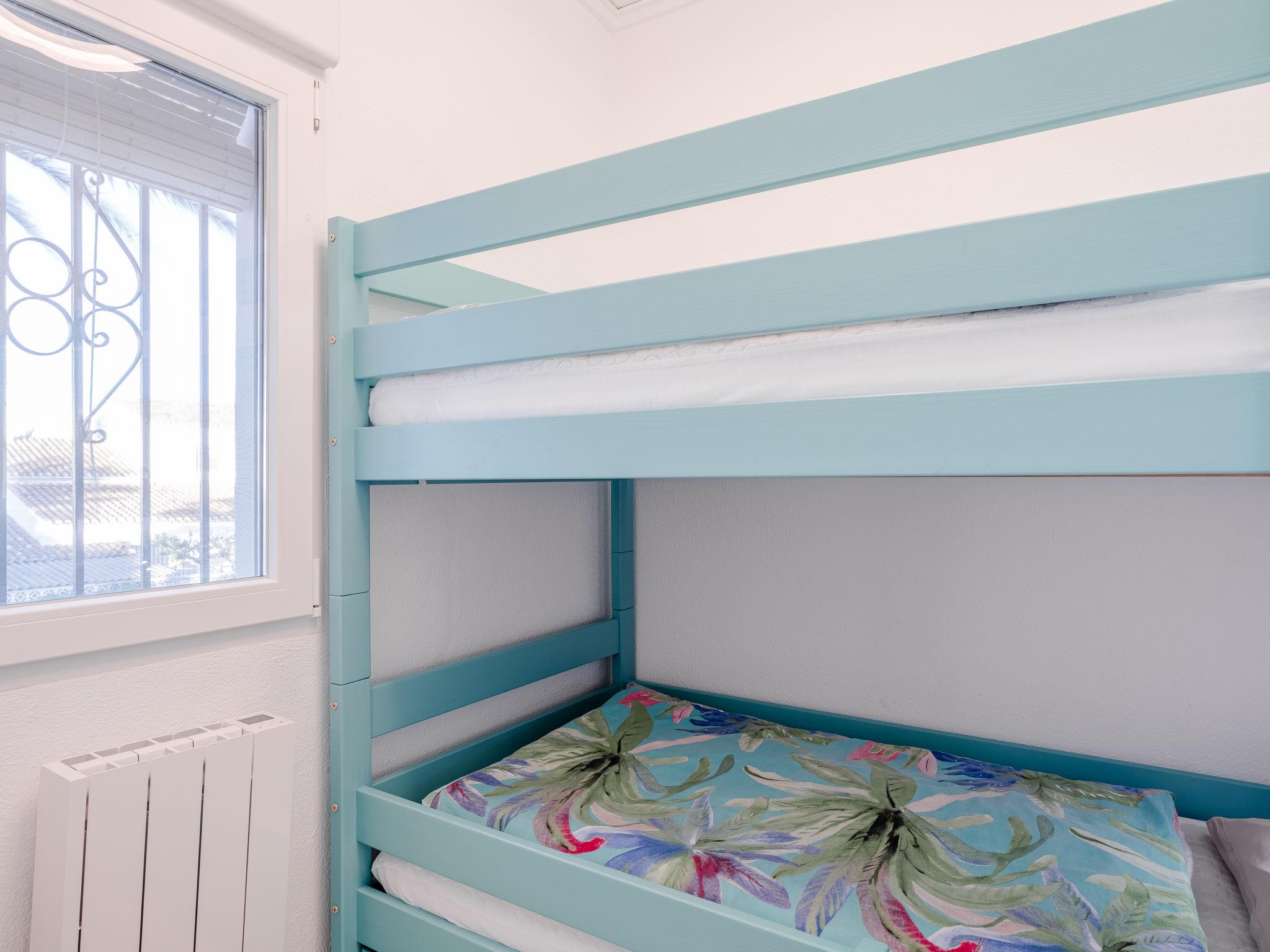 Very beautiful, cosy, very comfortable terraced house "Residencia La Perla". In the resort 4 km from the centre of Dénia, from the sea, 700 m from the beach. For shared use: 2 swimming pools (seasonal availability: 01.Jan. - 31.Dec.) with internal staircase. Unconventional pool shape. Children's pool, slide, outdoor shower, children's playground. Private: property with lawn, parking at the house. Shop 300 m, supermarket 900 m, restaurant 400 m, bar 450 m, bus stop 800 m, railway station 6 km, ferry 6 km, sandy beach "Playa de les Bovetes" 700 m. Sports harbour 4.5 km, marina 4.5 km, sailing school 700 m. The owner does not accept any youth groups.