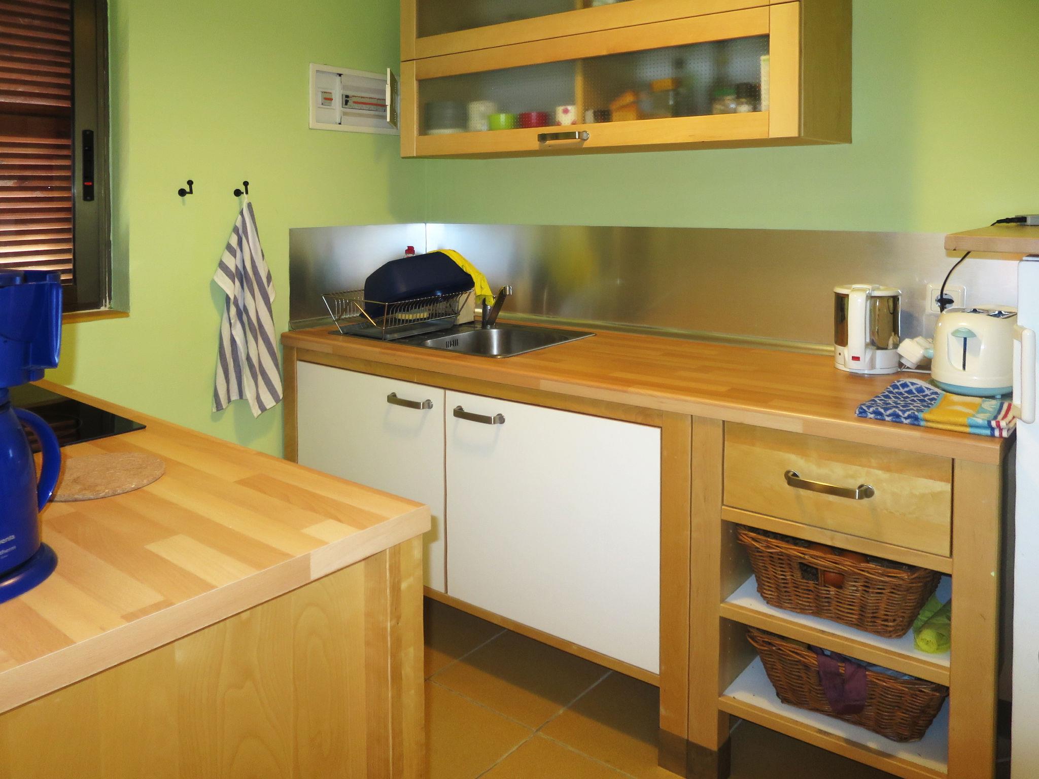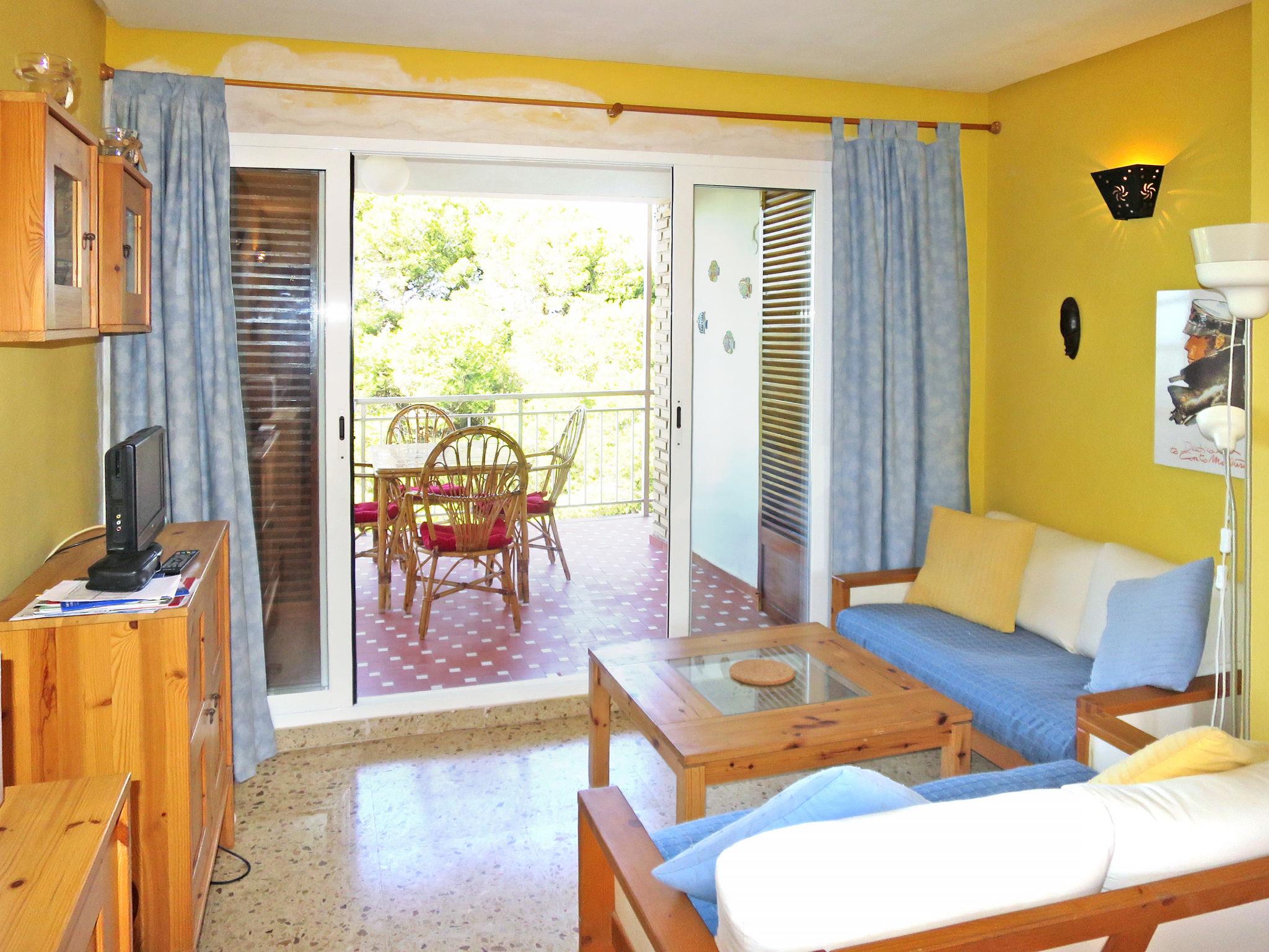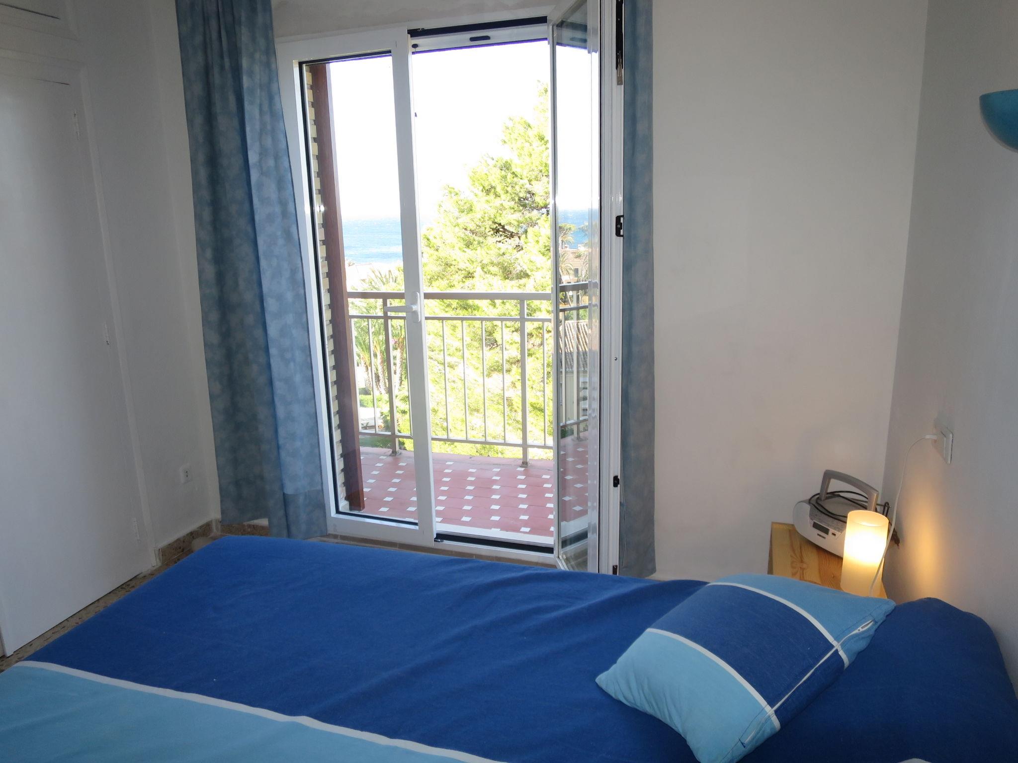 "Alhambra", 3-room apartment 45 m2 on 4th floor. Practical and cosy furnishings: living/dining room with dining table, satellite TV and hi-fi system. Exit to the balcony. 1 room with 1 french bed (140 cm). Exit to the balcony. 1 room with 2 beds. Kitchen (4 ceramic glass hob hotplates, toaster, kettle, microwave, electric coffee machine). Shower/WC. No heating option. Balcony. Balcony furniture. View of the sea. Facilities: washing machine, children's high chair, baby cot. Internet (WiFi). Please note: non-smokers only. R000000001