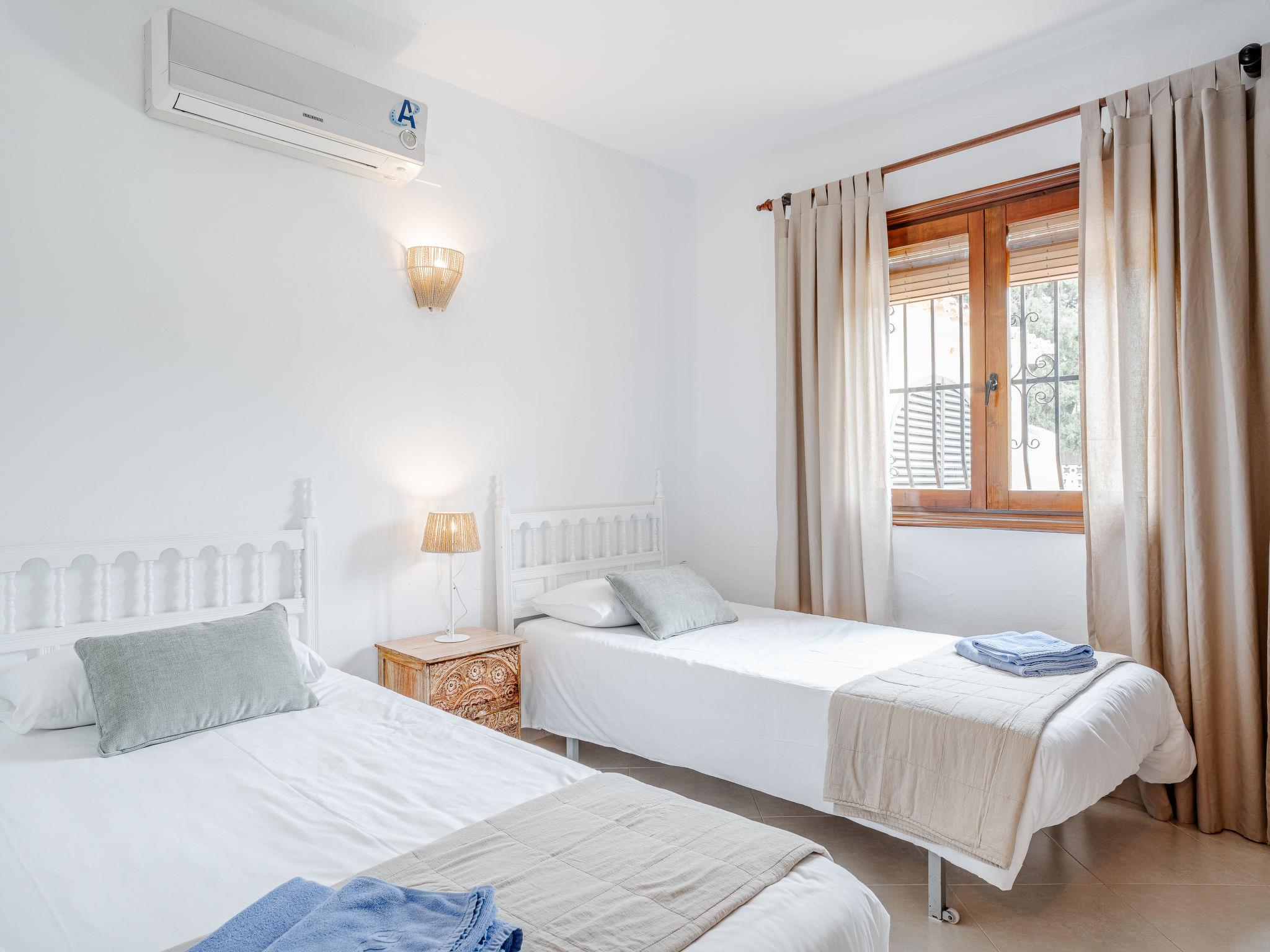 Cosy villa "Les Canyes". In the district of Playa Almadrava, 3 km from the centre of Els Poblets, 200 m from the sea. Private: property (fenced) with wildlife garden, swimming pool (4 x 8 m, depth 120 - 180 cm, seasonal availability: 01.Jan. - 31.Dec.) with internal staircase. Outdoor shower, terrace, barbecue. Supermarket 1 km, restaurant 500 m, bus stop 200 m, shingle beach 200 m. Sports harbour 10 km, golf course (18 hole) 9 km, riding stable 3 km. Groups of teenagers on request only.
