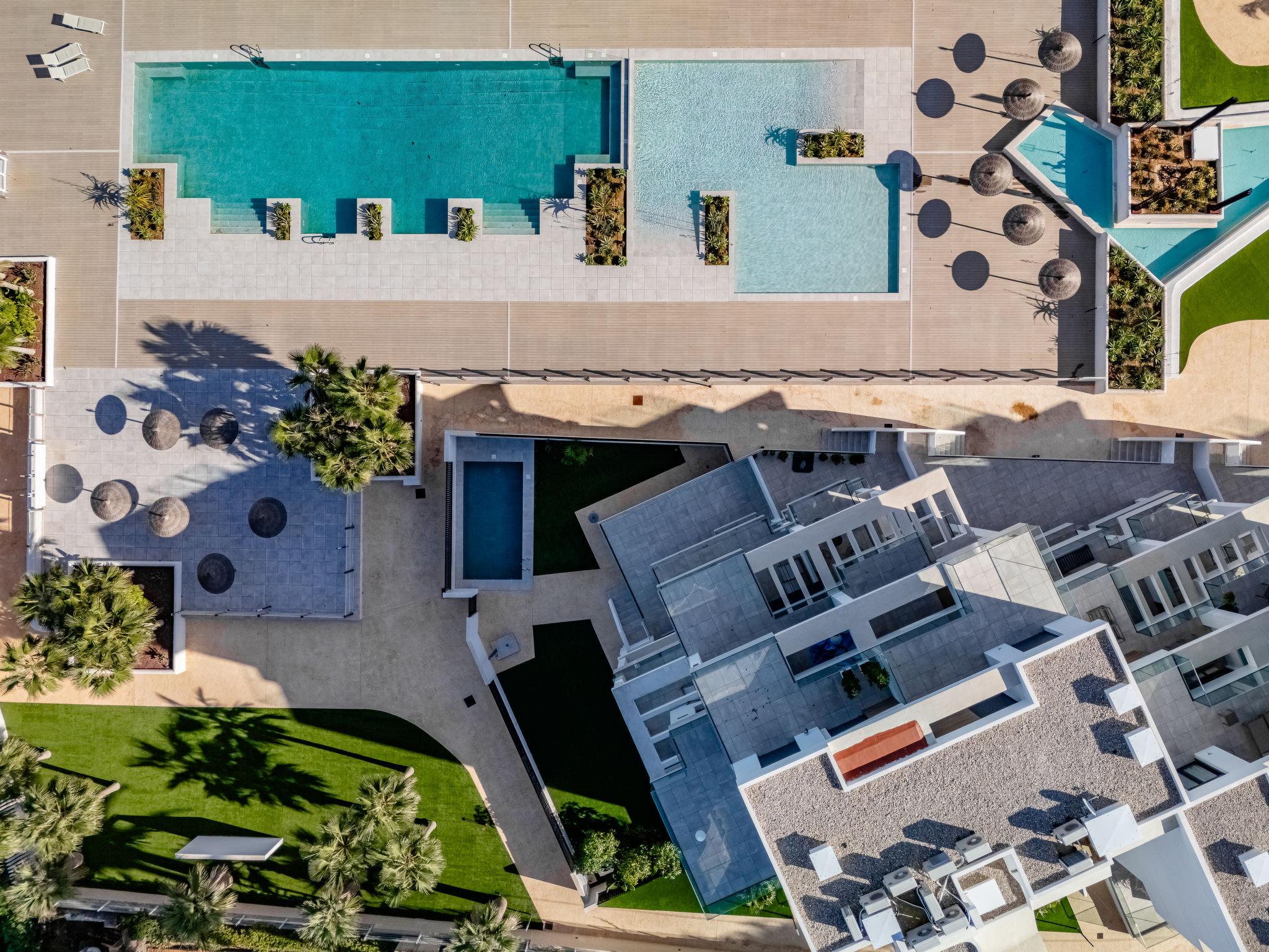 Large, modern, cosy apartment block "Villa Romana", built in 2024. In the resort 7 km from the centre of Denia, in a quiet, sunny position, 10 m from the sea, 10 m from the beach, direct access to the beach. For shared use: large, beautiful, well-kept garden, swimming pool angular (25 x 10 m, depth 40 - 180 cm, seasonal availability: 01.Jan. - 31.Dec.) with internal staircase. Children's pool, outdoor shower, children's playground, communal covered parking. Supermarket 1.8 km, restaurant 100 m, café 1 km, bus stop 140 m, sandy beach "Playa Els Molins" 10 m. Sports harbour 7 km, surf school 1.5 km, sailing school 7 km, tennis 6 km. The owner does not accept any youth groups.