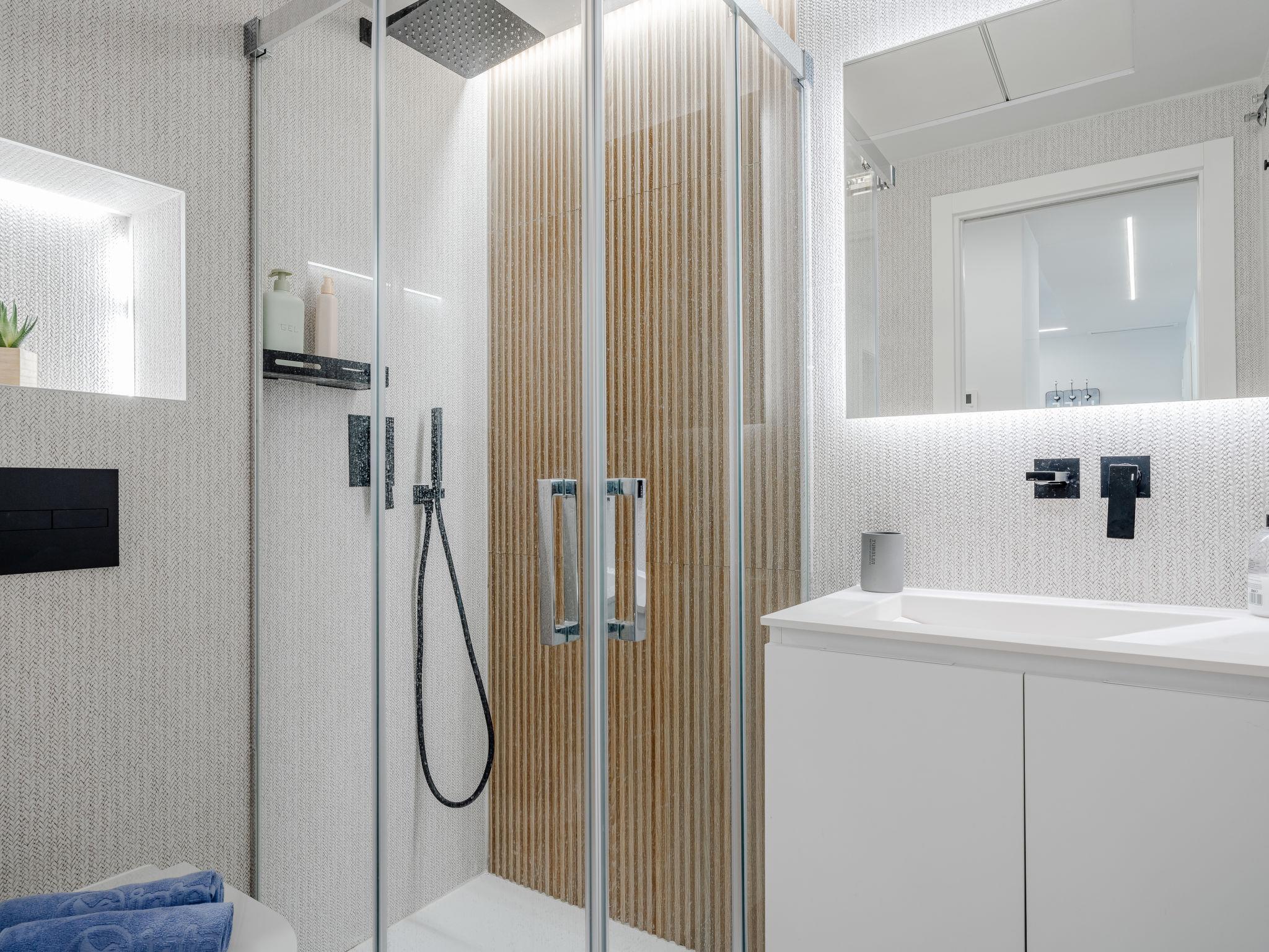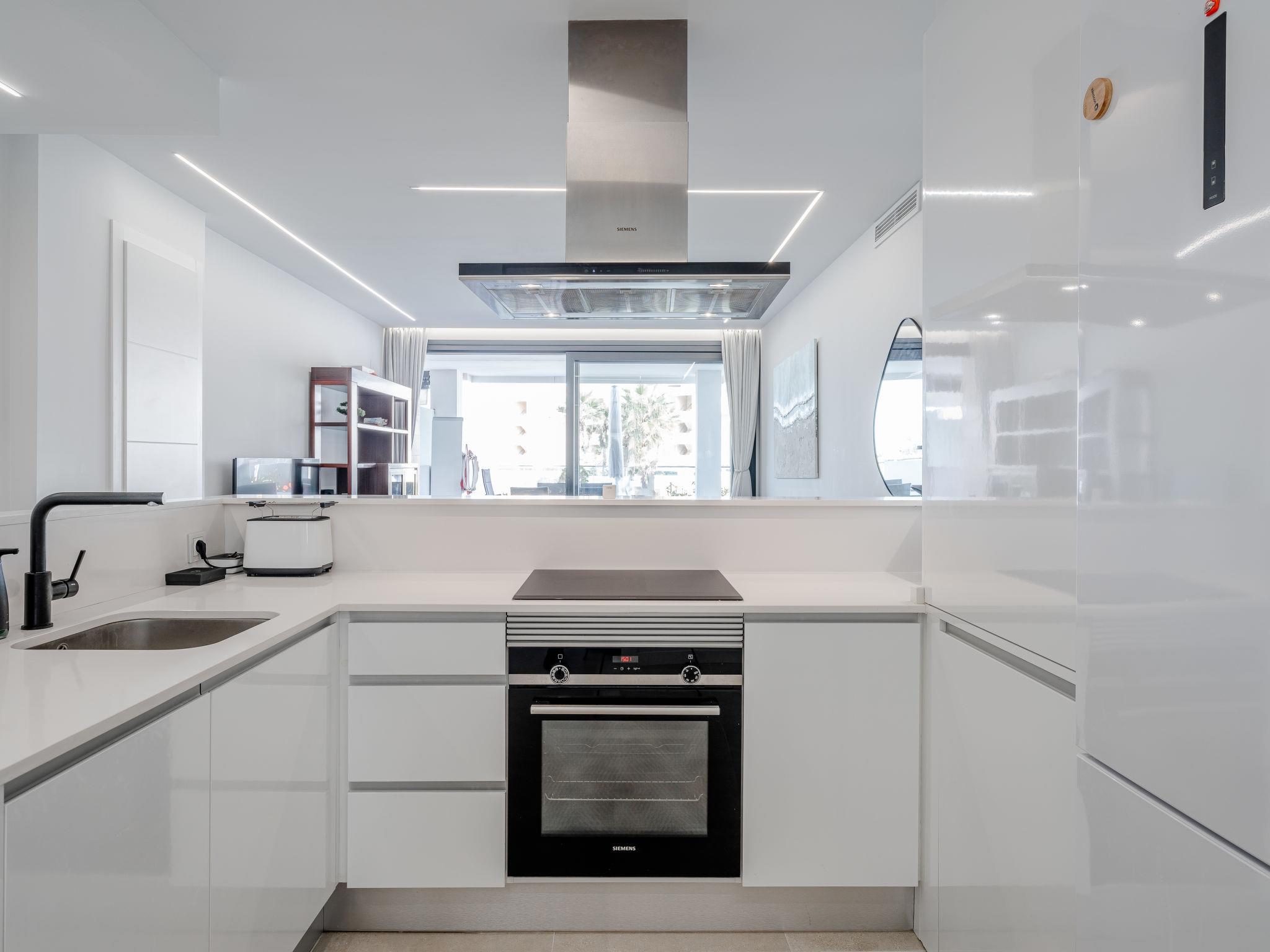 "Villa Romana Beach", 4-room apartment 75 m2. Spacious and bright, very beautiful and stylish furnishings: living/dining room with digital TV, air conditioning and forced-air heating. Exit to the terrace, to the swimming pool. 1 room with 1 french bed (150 cm, length 190 cm), shower/WC, air conditioning and forced-air heating. Exit to the terrace. 1 room with 2 beds (90 cm, length 190 cm), air conditioning and forced-air heating. 1 room with 1 x 2 bunk beds (90 cm, length 190 cm), air conditioning and forced-air heating. Open kitchen (oven, dishwasher, 3 induction hot plates, toaster, kettle, microwave, freezer, electric coffee machine). Shower/WC. Large terrace 33 m2. Terrace furniture. Very beautiful view of the sea, the swimming pool and the garden. Facilities: washing machine, iron, hair dryer. Parking space n 17. R00000001 // Reg. Nr.: ESFCNT00000304500109710600000000000000000000000000005