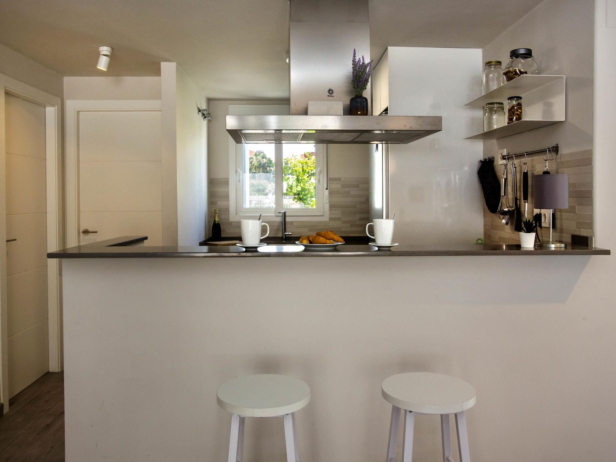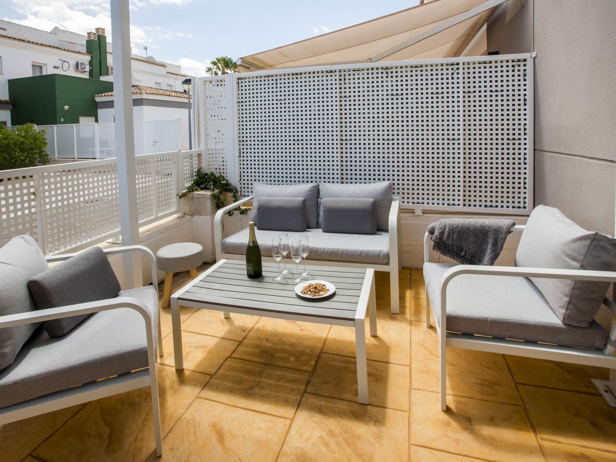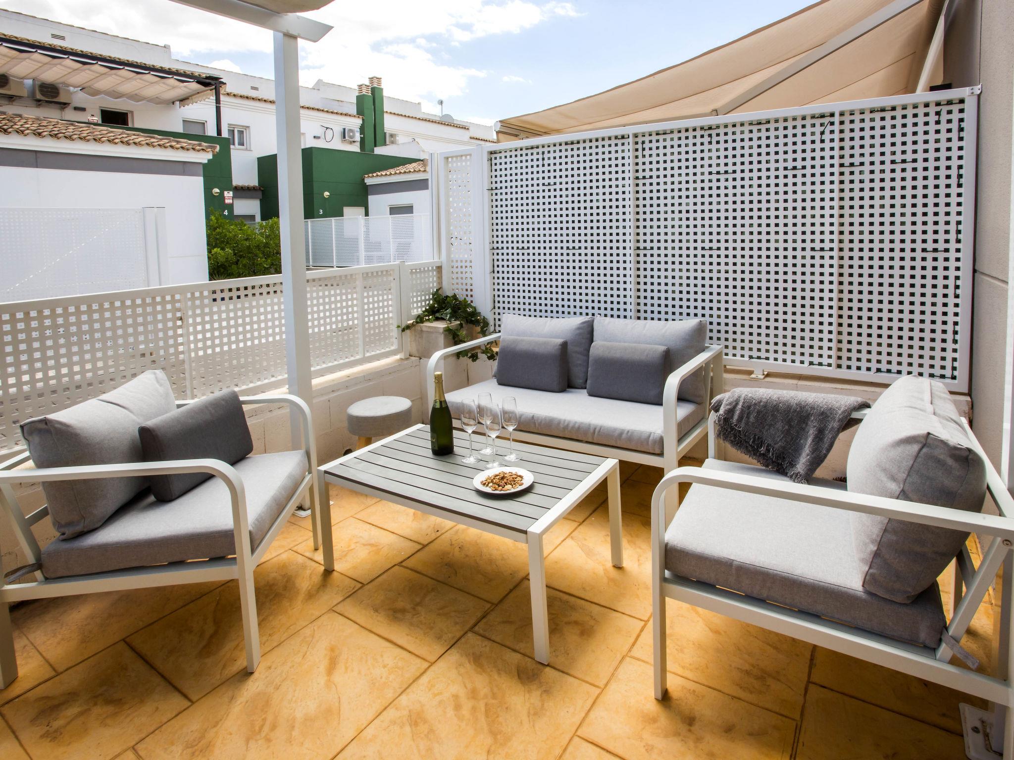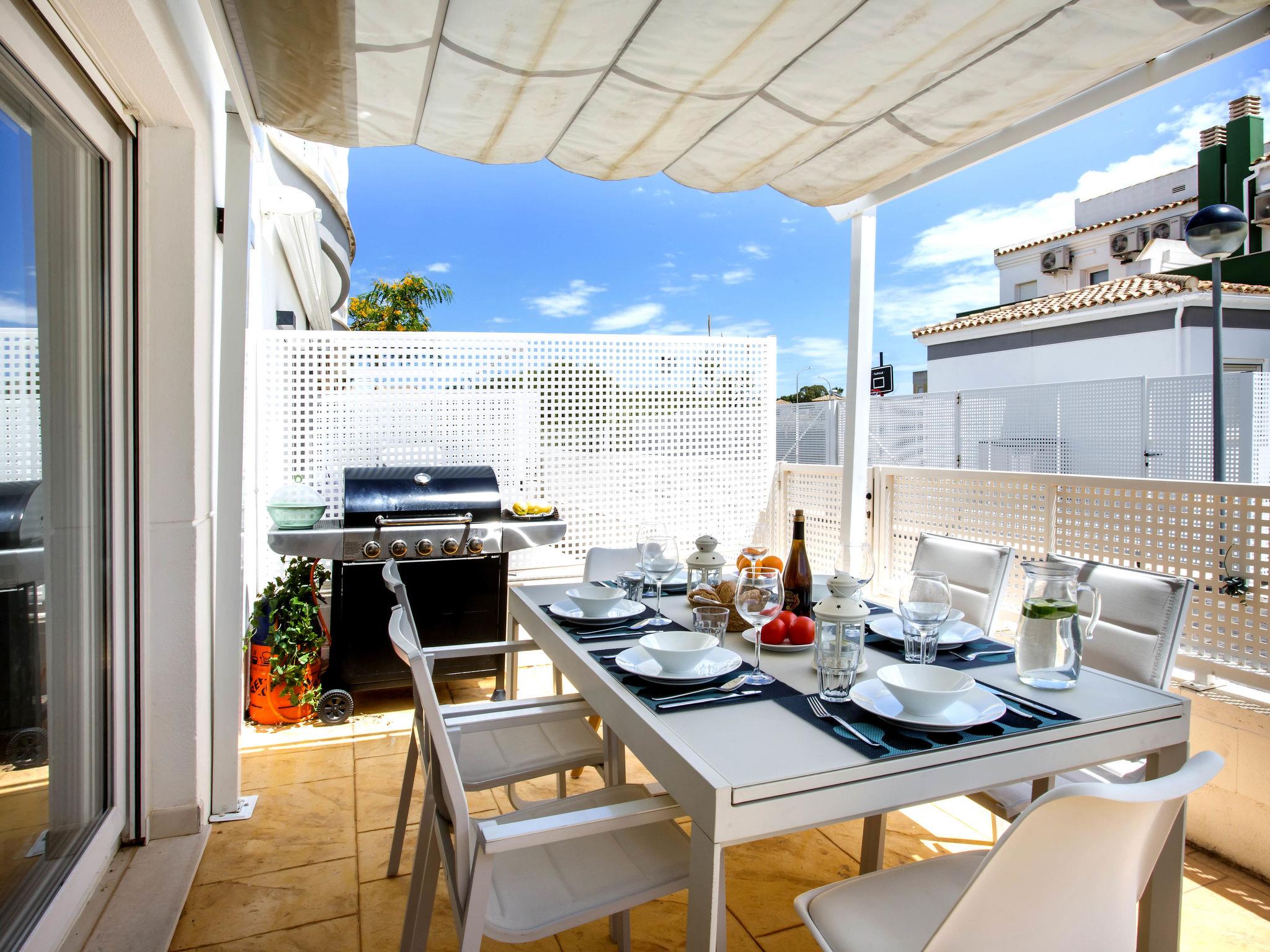Large, modern, beautiful terraced house "Limon", 2 storeys. In the resort El Vergel, from the sea, 600 m from the beach. For shared use: swimming pool (13 x 7 m, depth 110 - 210 cm, seasonal availability: 01.Jan. - 31.Dec.) with internal staircase. Outdoor shower, terrace. Private: terrace, garden furniture, parking on the premises. Supermarket 650 m, restaurant, bar 350 m, bus stop 1.2 km, railway station 1.6 km, ferry 1.3 km, sandy beach "Les Deveses" 650 m. The owner does not accept any youth groups.