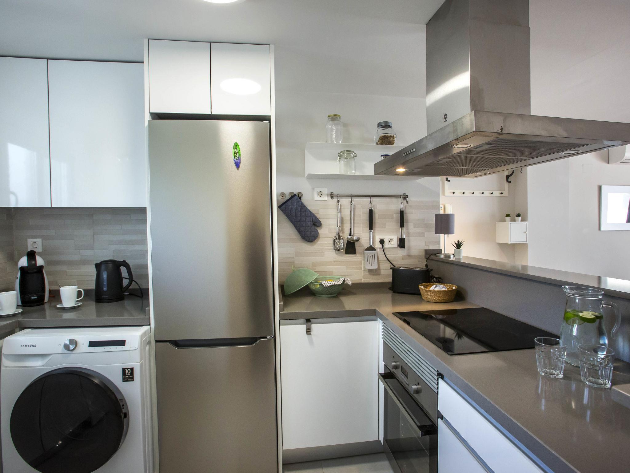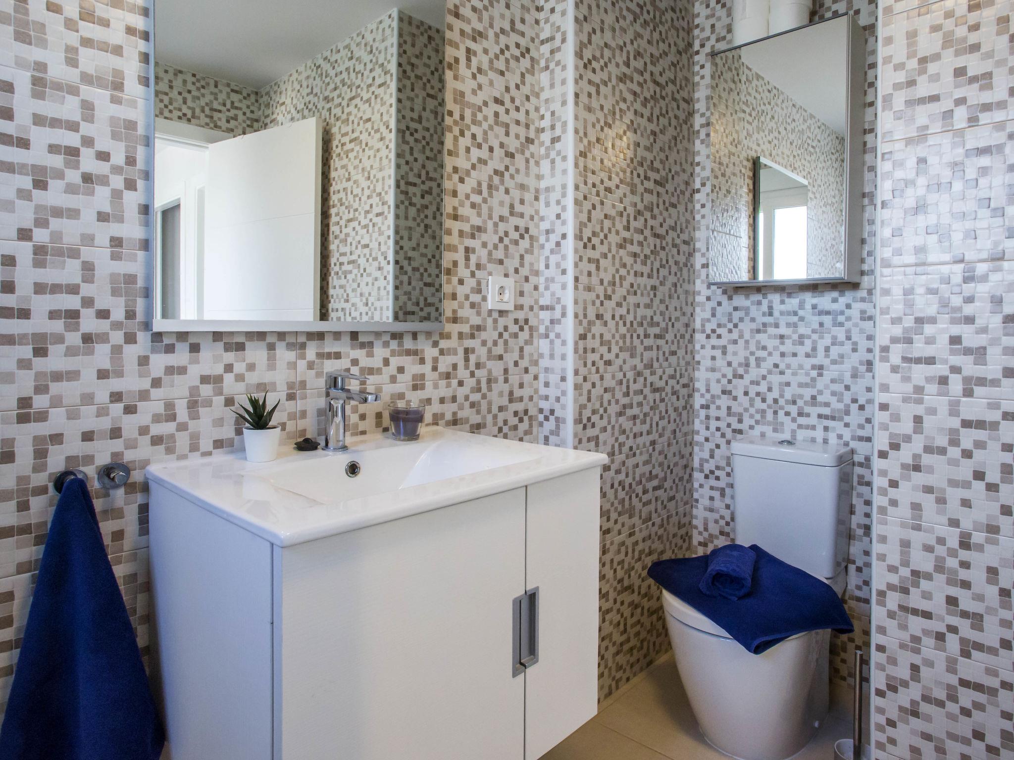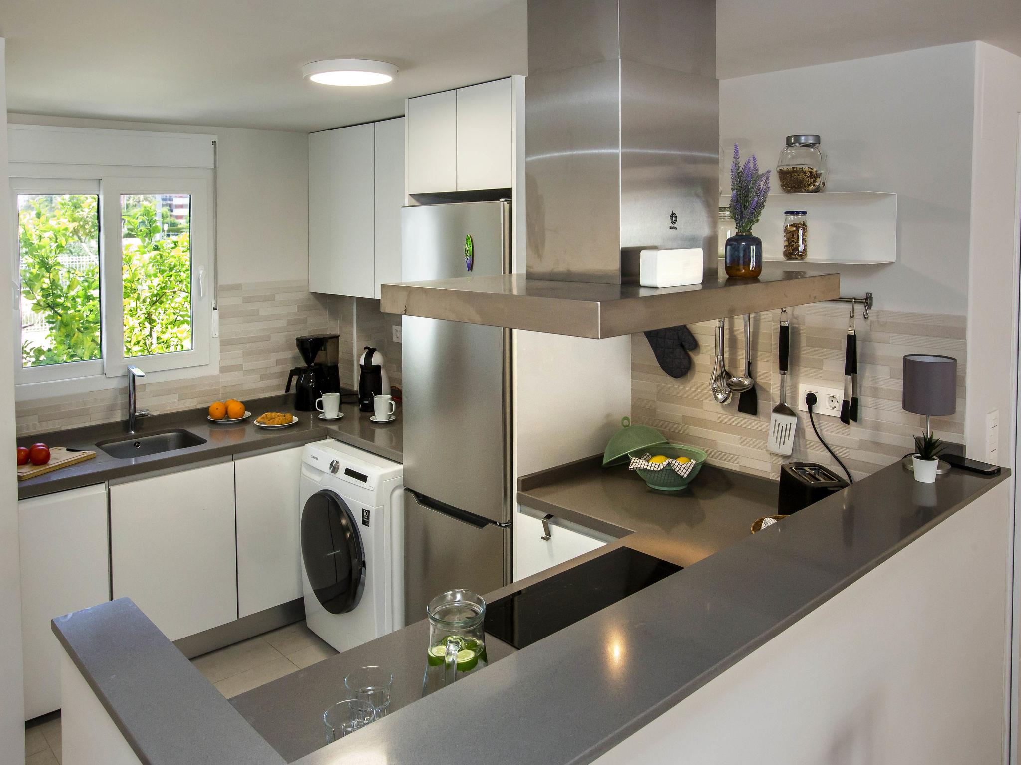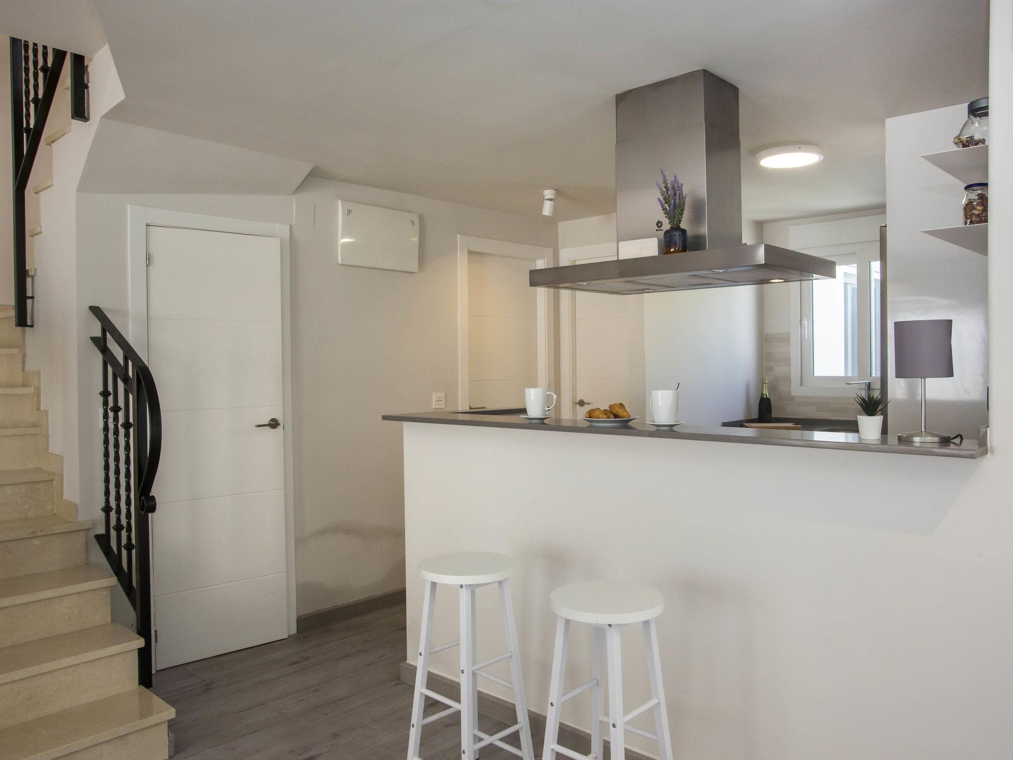 "Casa Limon", 4-room terraced house 90 m2 on 2 levels. Spacious and bright, very beautiful and stylish furnishings: living/dining room with digital TV, air conditioning and forced-air heating. Exit to the terrace. 1 room with 1 french bed (160 cm, length 200 cm), fan. Open kitchen (oven, dishwasher, 3 induction hot plates, toaster, kettle, microwave, freezer, electric coffee machine, Capsules for coffee machine (Dolce Gusto) extra). Shower/WC. Upper floor: 1 room with 1 french bed (180 cm, length 200 cm), air conditioning and forced-air heating. Exit to the balcony. 1 room with 2 beds (90 cm, length 200 cm), air conditioning and forced-air heating. Exit to the balcony. Shower/WC. Large terrace 12 m2, south facing position, large terrace 15 m2, north facing position. Terrace furniture, barbecue, covered balcony, sitting area. Facilities: washing machine, dryer, iron, hair dryer. Internet (WiFi, free). Parking (2 cars). To consider: There are 2 bicycles available. CV-VUT0485943A // Reg. Nr.: ESFCTU00000304500082954800000000000000CV-VUT0485943A3