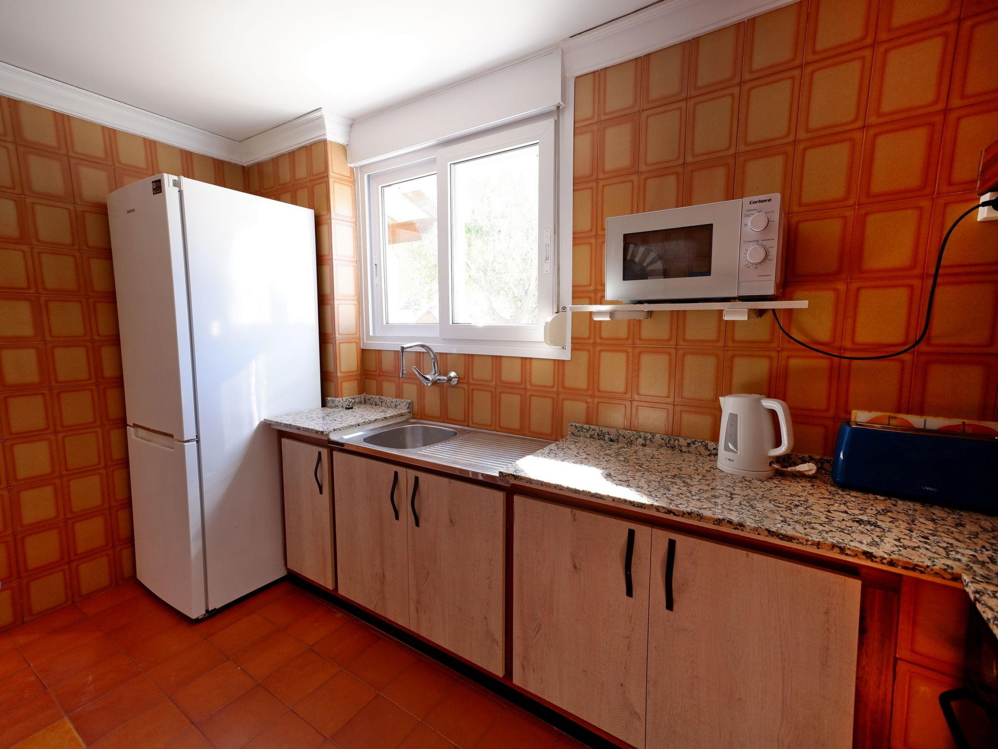 "Casita Mar", 5-room terraced house 160 m2 on 2 levels. Simple furnishings: living/dining room with satellite TV, digital TV and electric heater. Exit to the terrace, pergola. 1 room with 1 french bed (150 cm, length 190 cm), fan. Kitchen (oven, 4 ceramic glass hob hotplates, toaster, kettle, microwave, freezer, electric coffee machine). Shower/WC. Electric heating. Upper floor: 1 room with 1 french bed (135 cm, length 190 cm), electric heater and fan. Exit to the terrace. 1 room with 2 beds (90 cm, length 190 cm), electric heater and fan. Exit to the terrace. 1 room with 1 french bed (150 cm, length 190 cm), electric heater and fan. Bath/bidet/WC. Patio. Terrace furniture. Marvellous view of the sea. Facilities: washing machine, iron, children's high chair, baby cot, hair dryer. Internet (WiFi, free). Parking (3 cars). Maximum 1 pet/ dog allowed. Direct access to the beach through the dunes (protected natural area - see pictures). VT-452960-A // Reg. Nr.: ESFCTU00000304500025865200000000000000000VT-452960-A9
