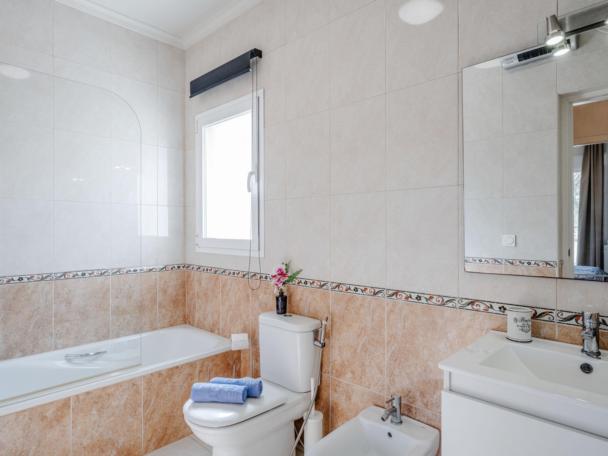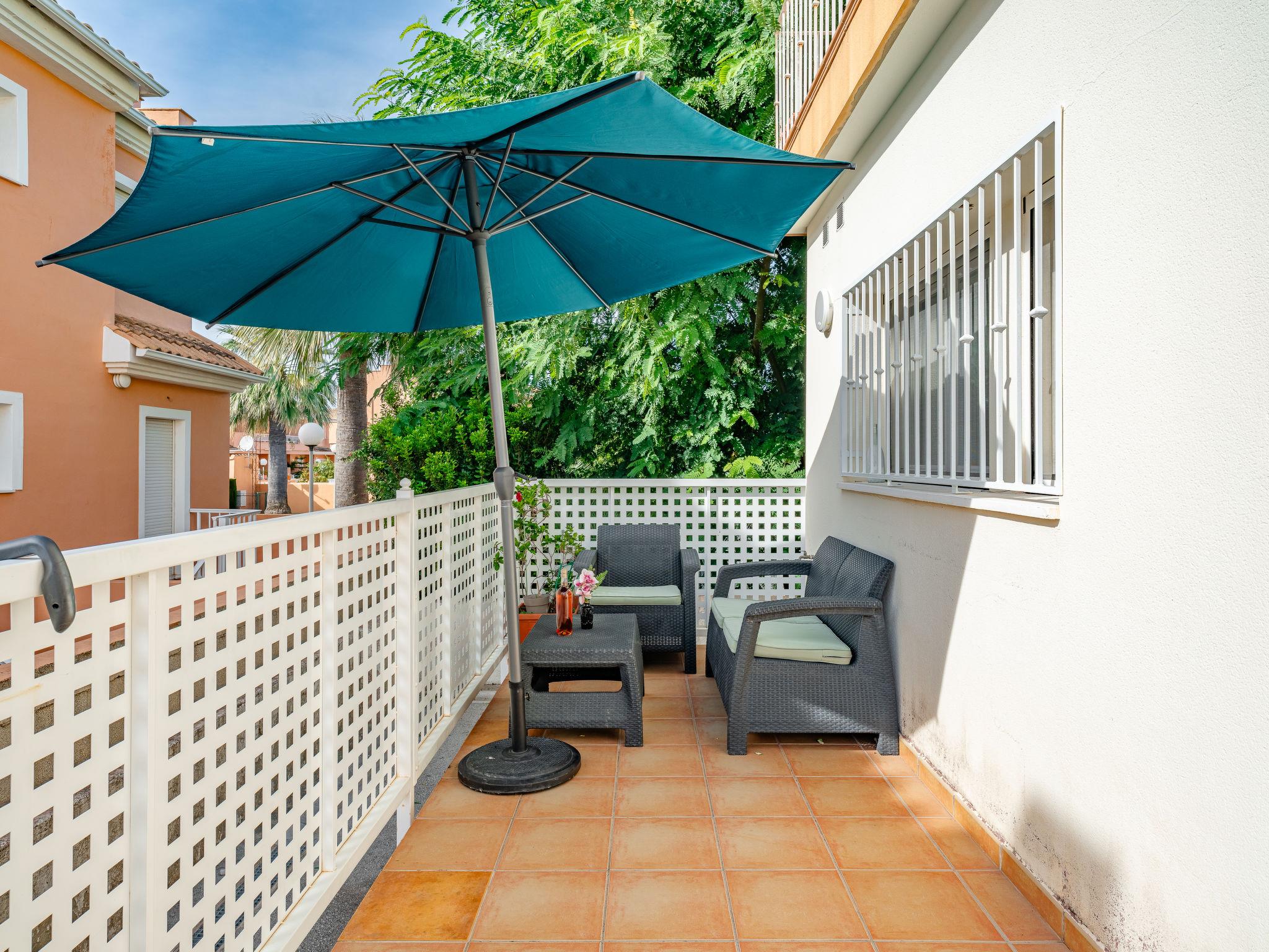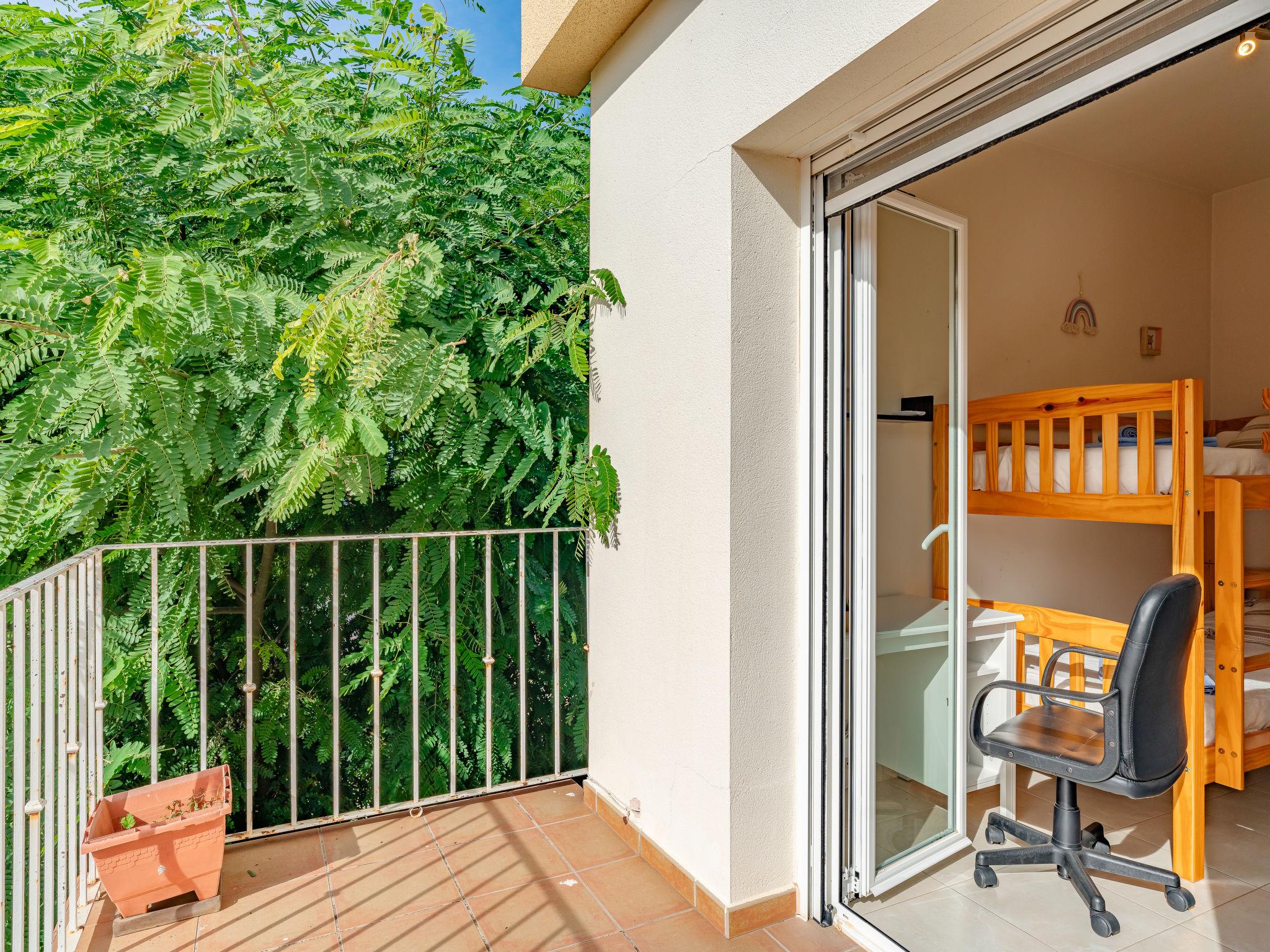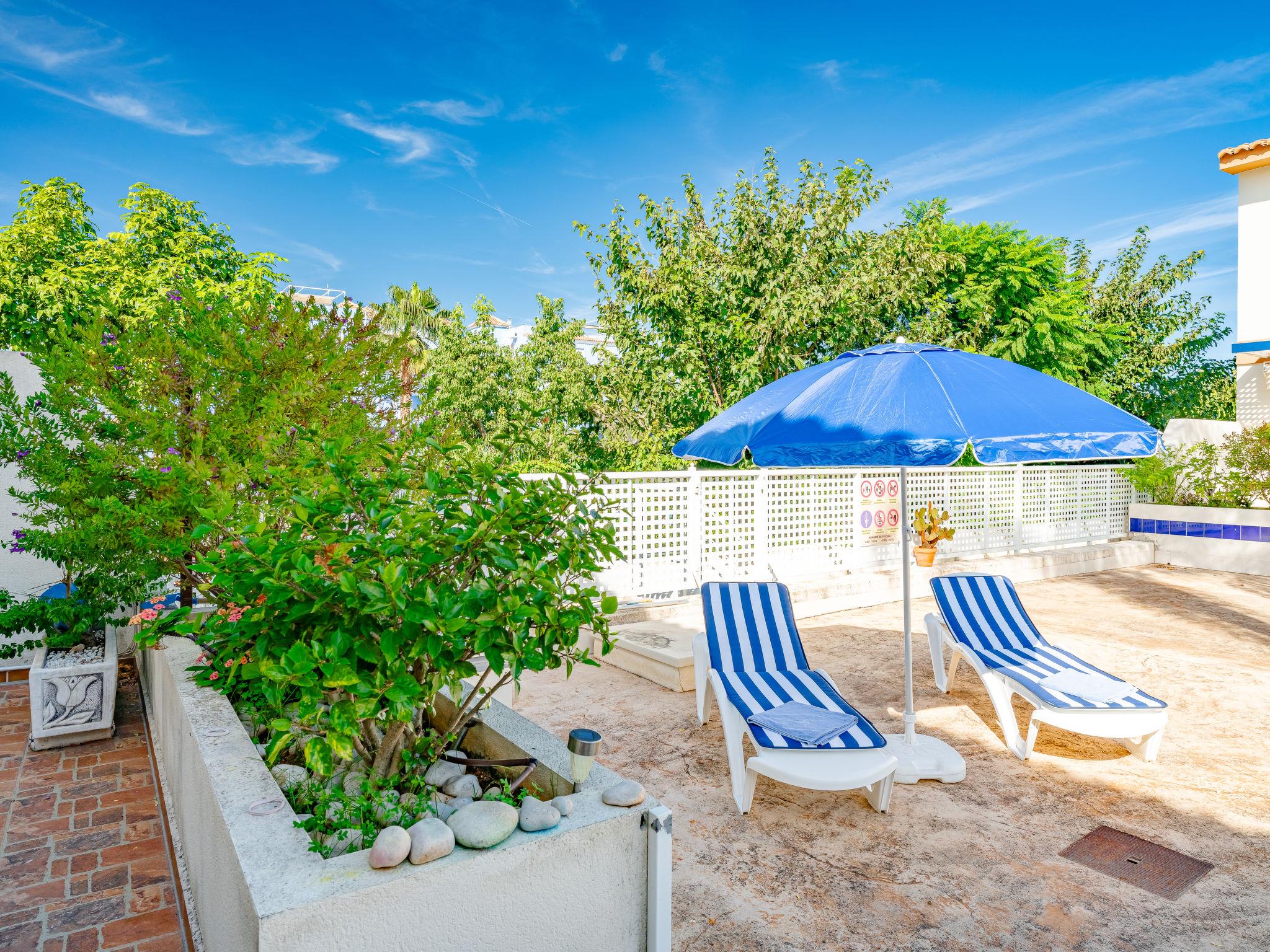 "El Vergel Chil", 4-room maisonette 90 m2 on 2 levels. Spacious, simple and comfortable furnishings: living/dining room with digital TV, air conditioning and forced-air heating. Exit to the terrace, to the swimming pool. Kitchen (oven, dishwasher, 4 ceramic glass hob hotplates, toaster, kettle, microwave, freezer, electric coffee machine, Capsules for coffee machine (Nespresso) extra). Shower/WC. Upper floor: 1 room with 1 french bed (150 cm, length 190 cm), air conditioning and forced-air heating. 1 room, without wardrobe with 1 french bed (135 cm, length 190 cm), air conditioning and forced-air heating. 1 room with 1 x 2 bunk beds (90 cm, length 200 cm), air conditioning and forced-air heating. Exit to the terrace. Bath/bidet/WC. 2 large terraces. Terrace furniture, sitting area. Facilities: washing machine, iron, hair dryer. Internet (WiFi, free). Parking. CV-VUT0517559-A // Reg. Nr.: ESFCTU0000030450008977760000000000000000VUT0517559-A9