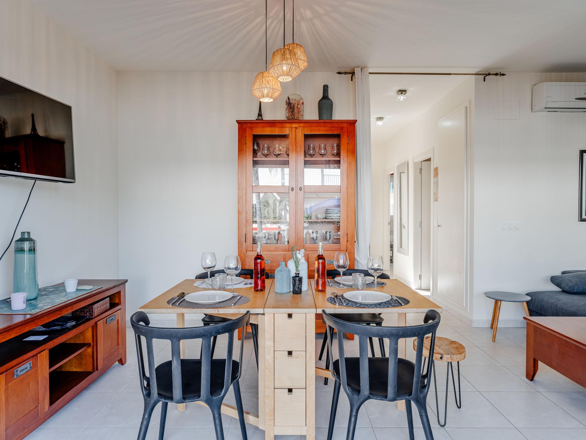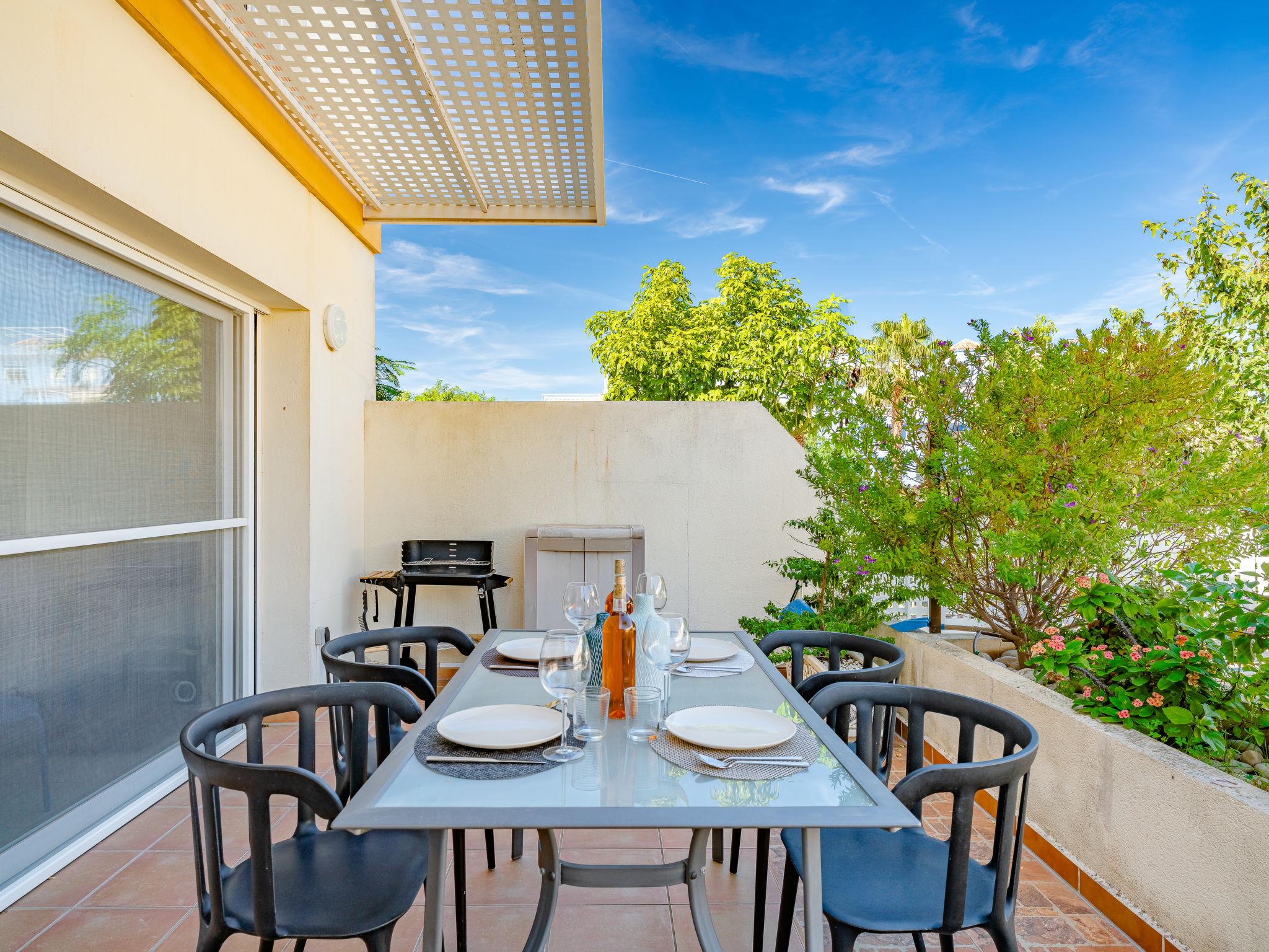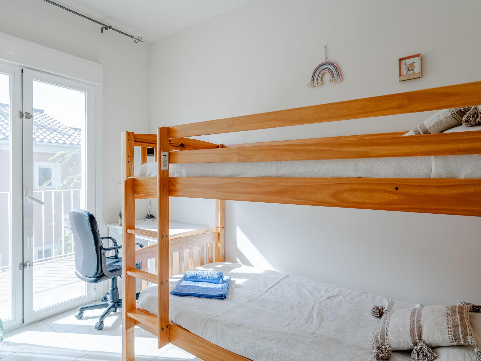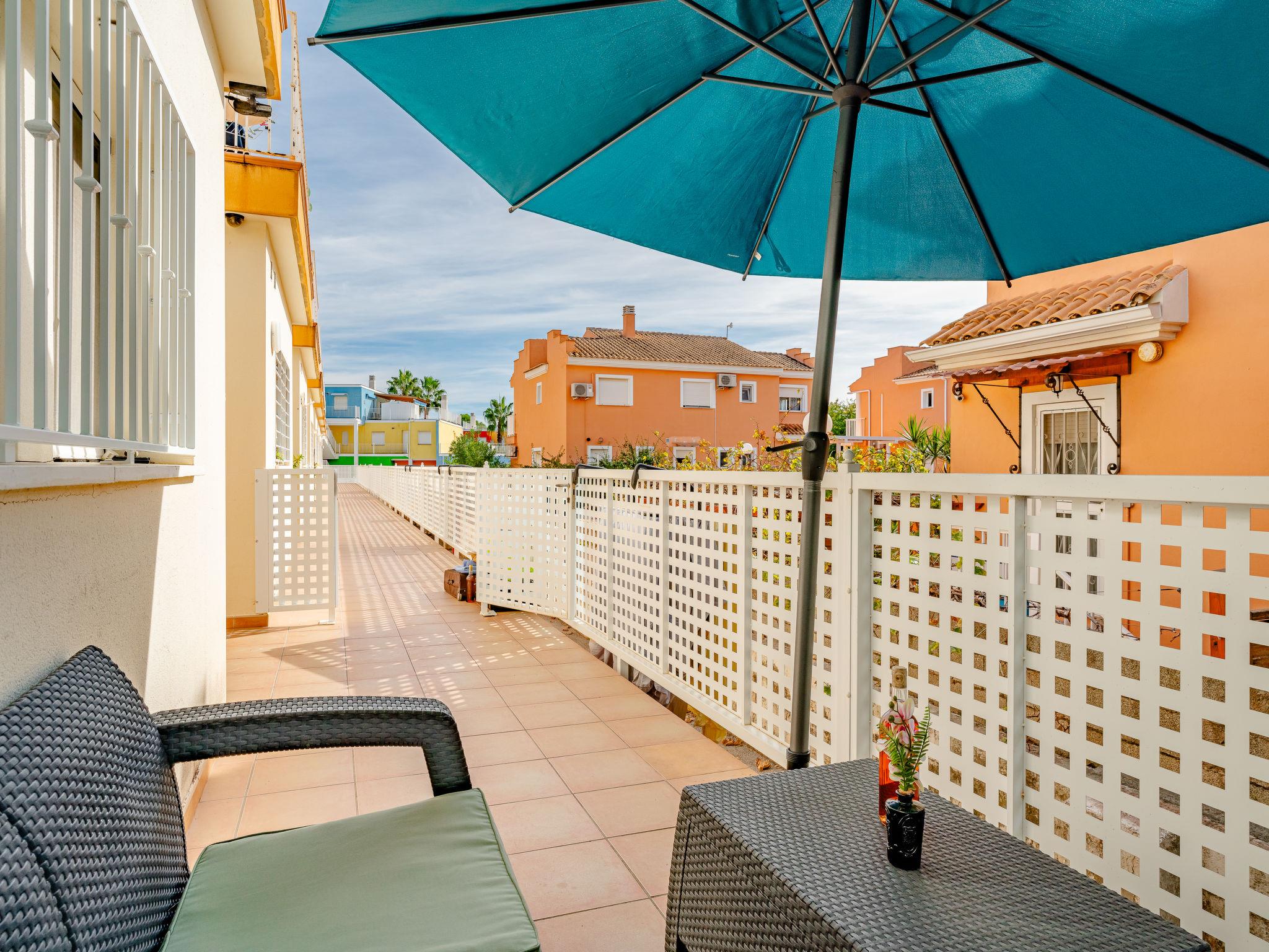 "El Vergel Chil", 4-room maisonette 90 m2 on 2 levels. Spacious, simple and comfortable furnishings: living/dining room with digital TV, air conditioning and forced-air heating. Exit to the terrace, to the swimming pool. Kitchen (oven, dishwasher, 4 ceramic glass hob hotplates, toaster, kettle, microwave, freezer, electric coffee machine, Capsules for coffee machine (Nespresso) extra). Shower/WC. Upper floor: 1 room with 1 french bed (150 cm, length 190 cm), air conditioning and forced-air heating. 1 room, without wardrobe with 1 french bed (135 cm, length 190 cm), air conditioning and forced-air heating. 1 room with 1 x 2 bunk beds (90 cm, length 200 cm), air conditioning and forced-air heating. Exit to the terrace. Bath/bidet/WC. 2 large terraces. Terrace furniture, sitting area. Facilities: washing machine, iron, hair dryer. Internet (WiFi, free). Parking. CV-VUT0517559-A // Reg. Nr.: ESFCTU0000030450008977760000000000000000VUT0517559-A9