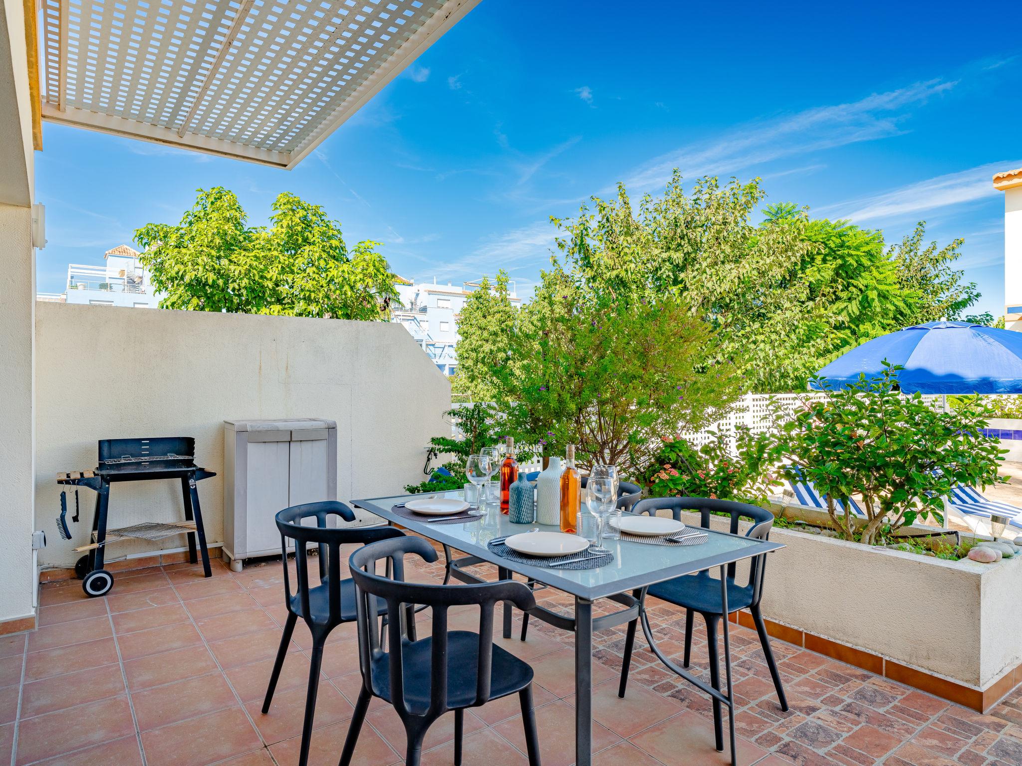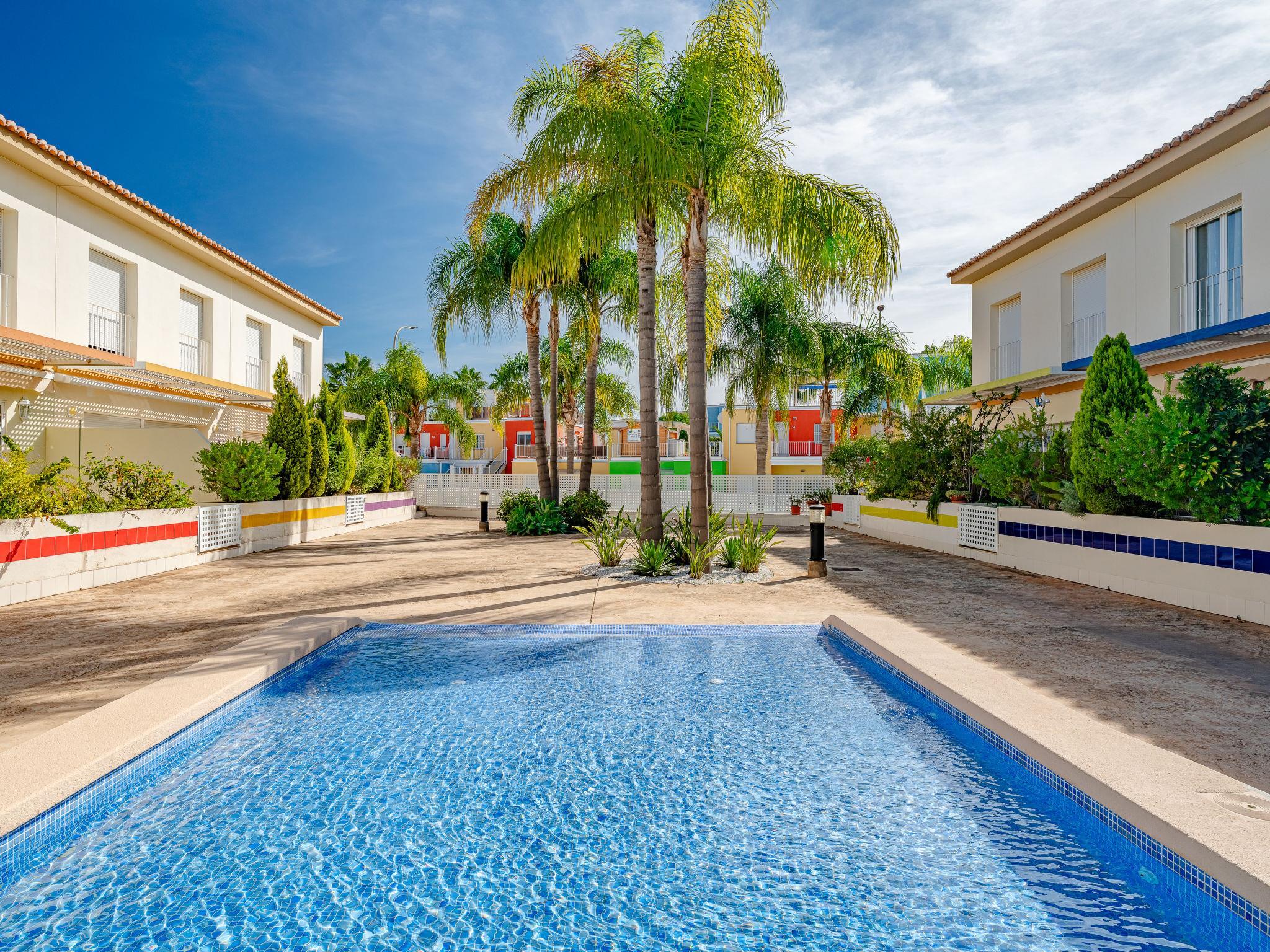 Large, beautiful apartment block, 2 storeys. In the district of El Vergel, in a quiet, sunny position, 1 km from the sea, 1 km from the beach. For shared use: swimming pool angular (13 x 7 m, depth 40 - 210 cm, seasonal availability: 01.Jan. - 31.Dec.). Children's pool, outdoor shower, parking on the premises. Supermarket 300 m, restaurant 110 m, café 400 m, bus stop 1.2 km, sandy beach 1 km. The owner does not accept any youth groups.